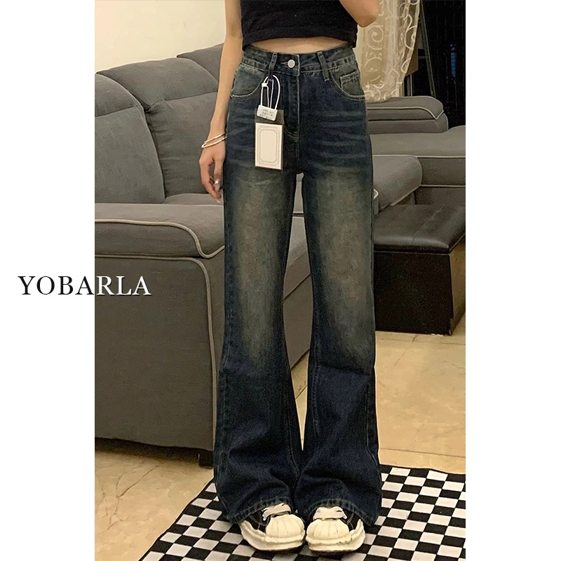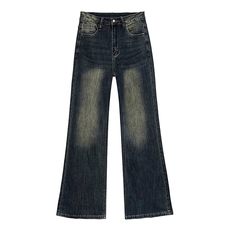 复古蓝微喇牛仔裤女秋季新款大码胖mm高腰宽松显瘦梨型身材长裤子