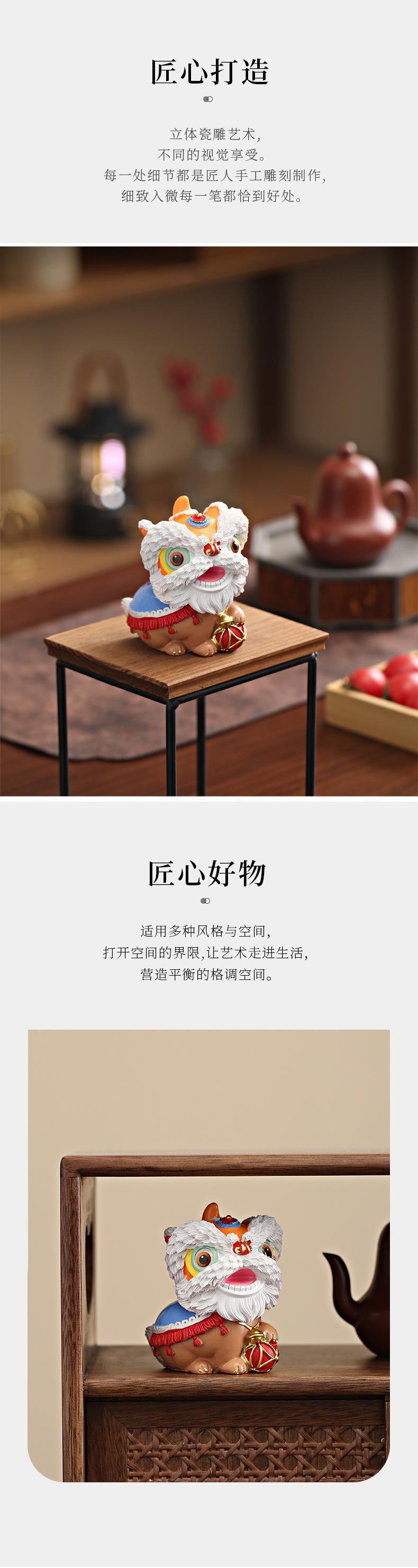国潮佛山舞狮醒狮创意文创摆件高级感桌面茶桌装饰工艺品生日礼物