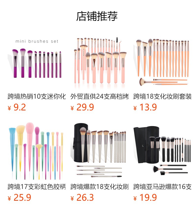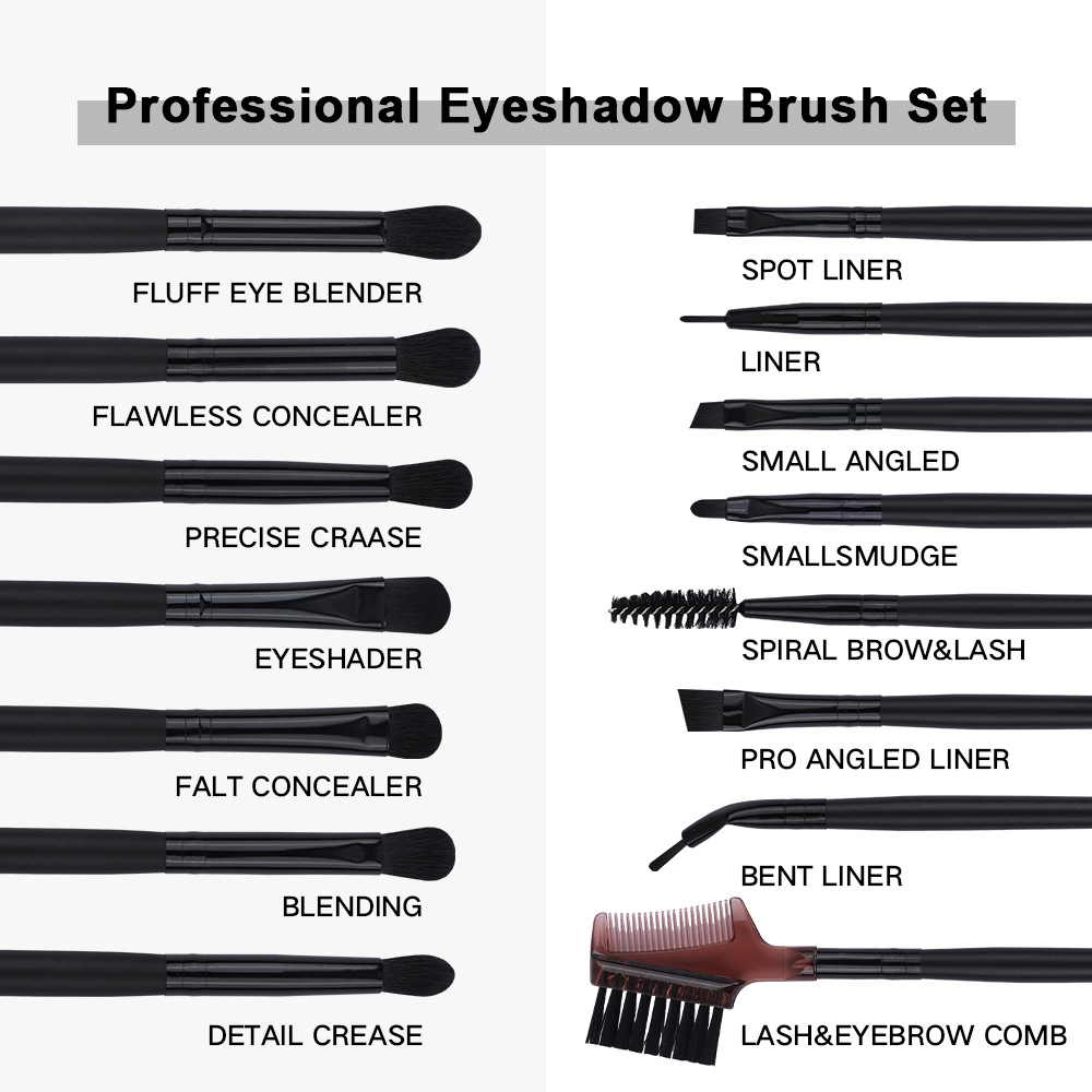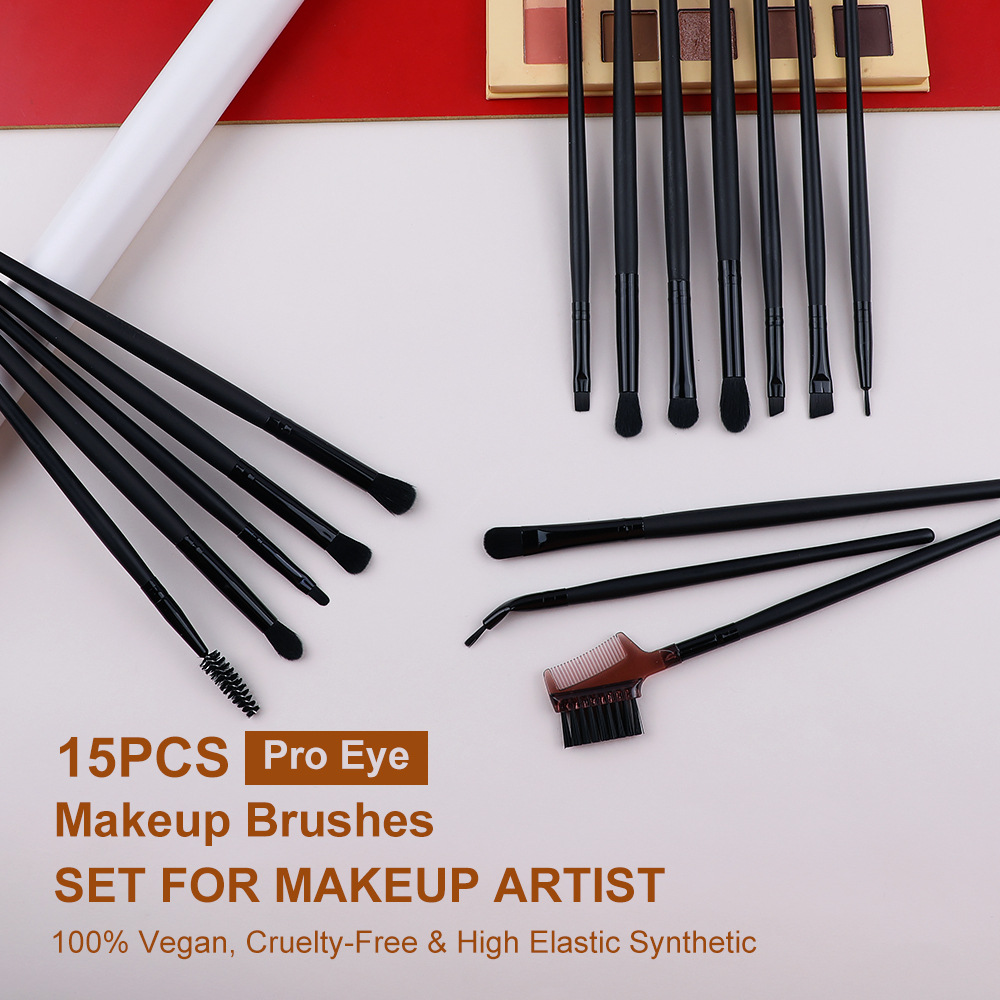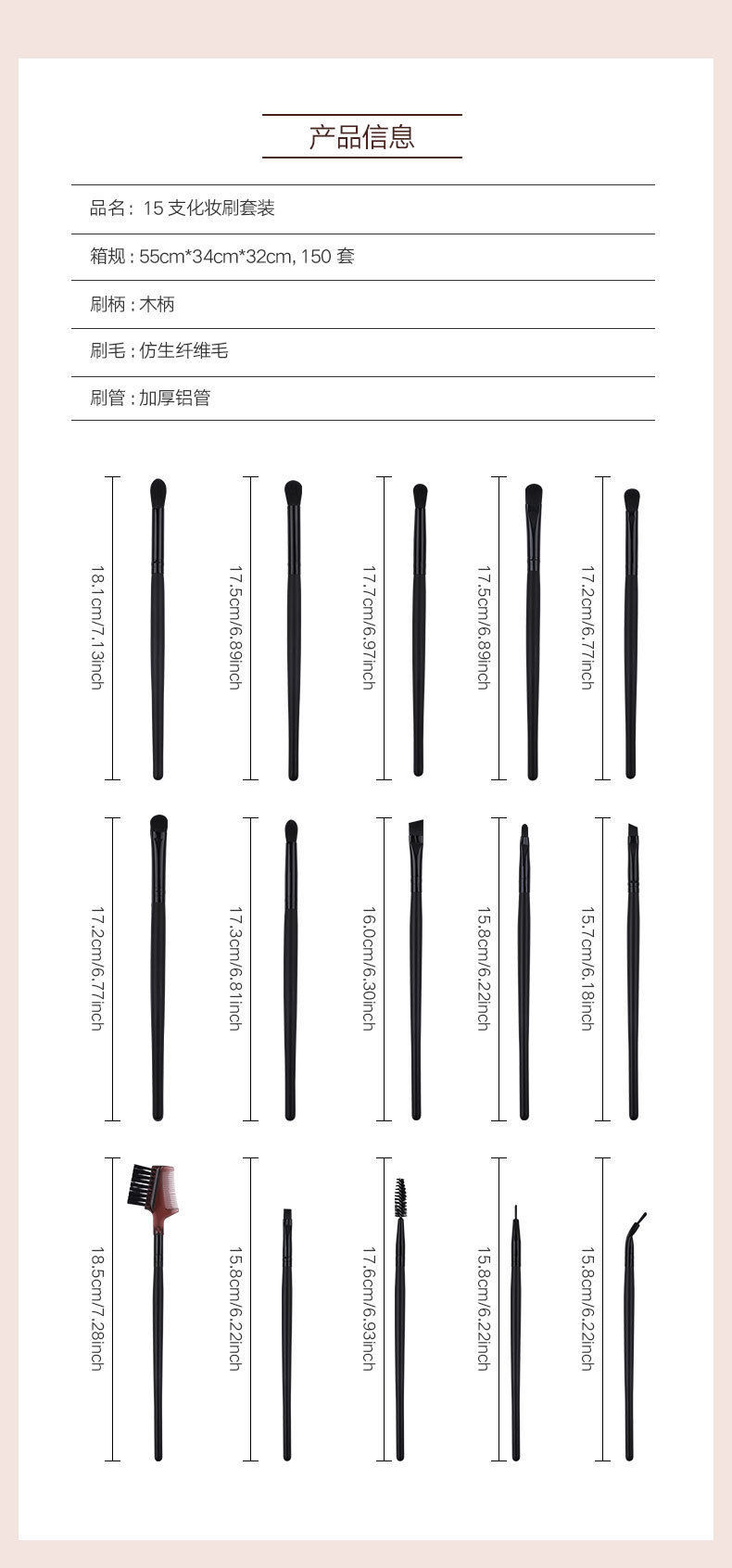 跨境亚马逊15支黑色木柄眼影鼻影眼线晕染刷全套初学者眼部彩妆刷