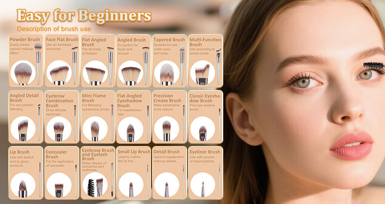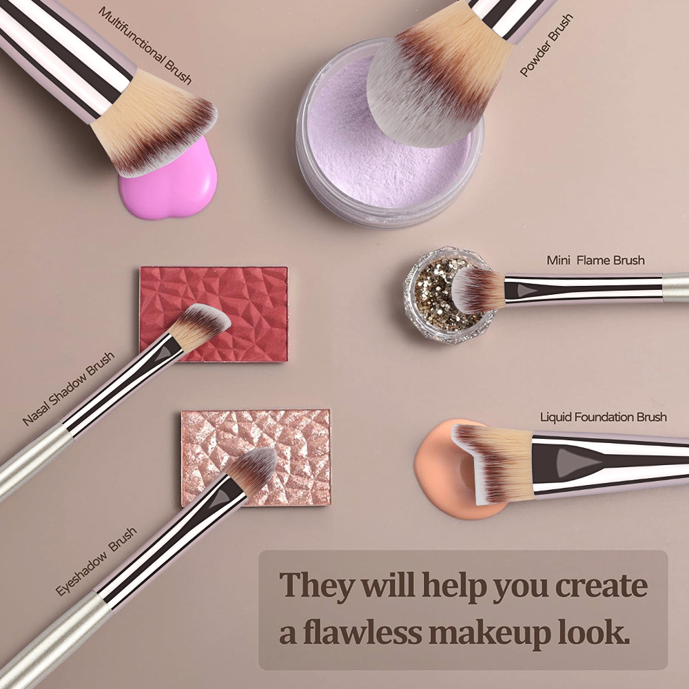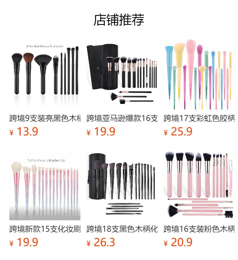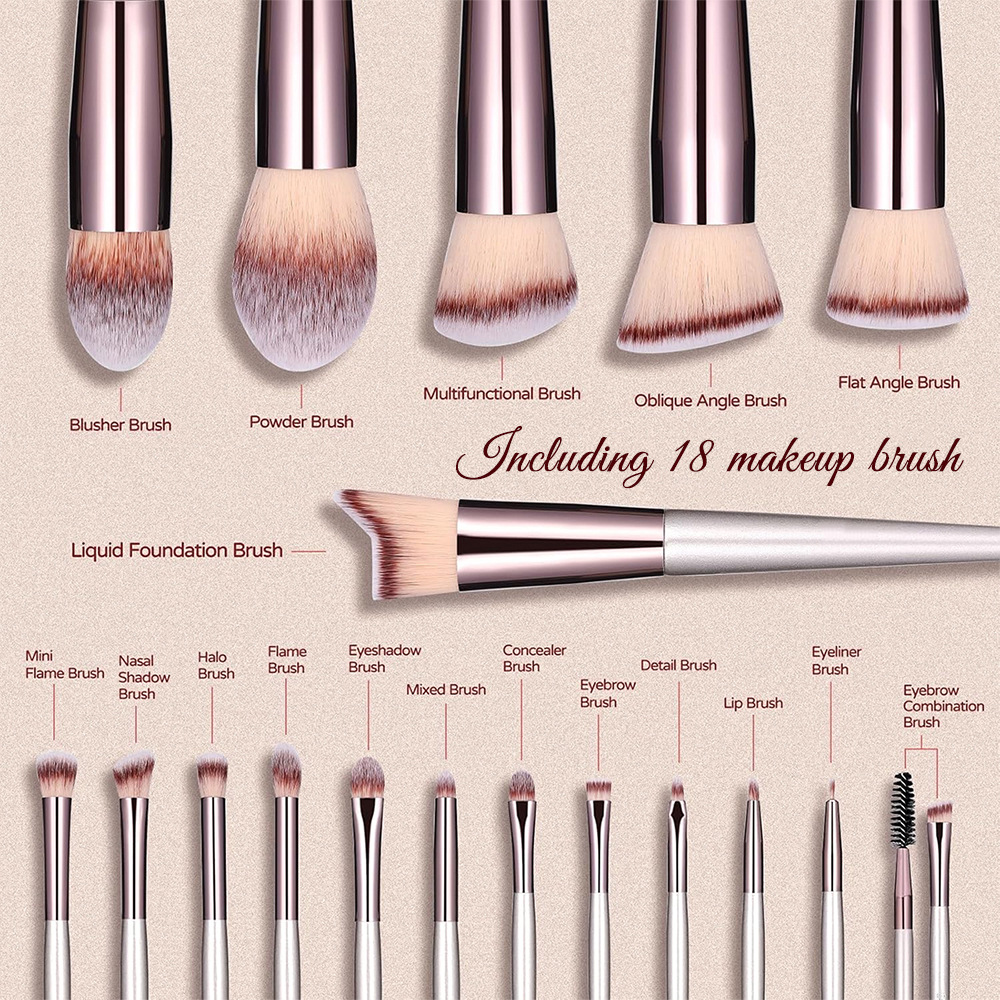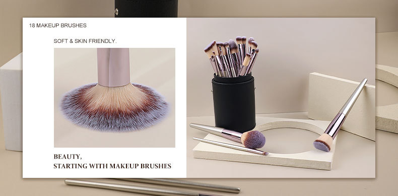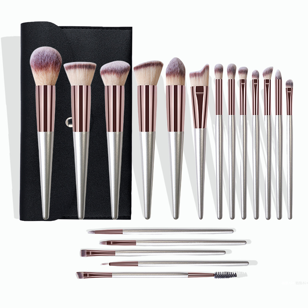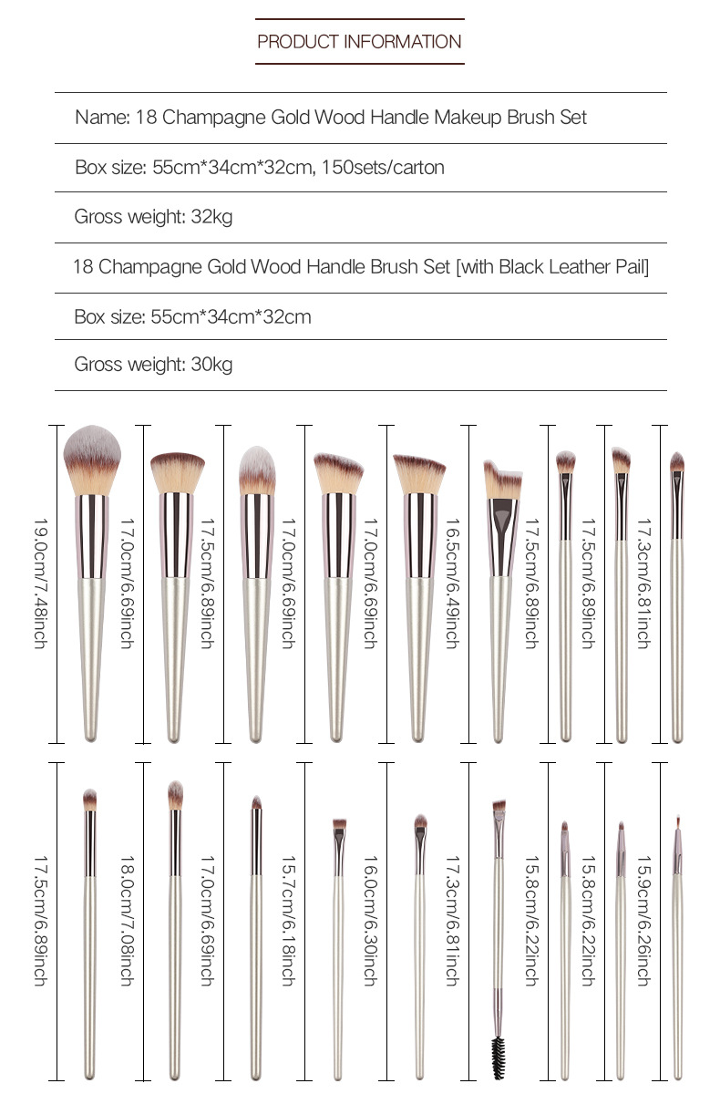跨境爆款18支化妆刷厂家直销亚马逊同款无logo香槟金色木柄彩妆刷
