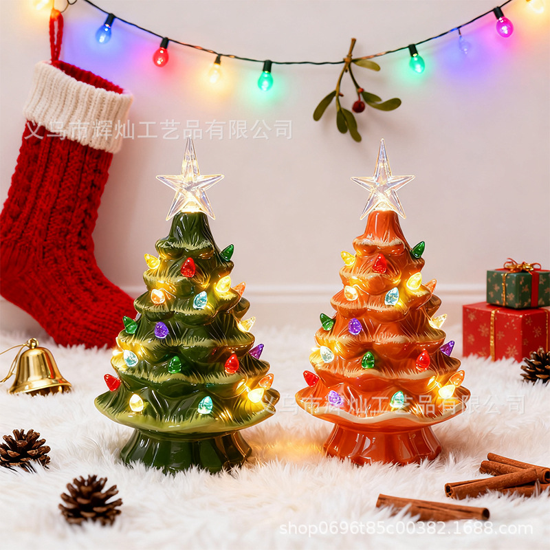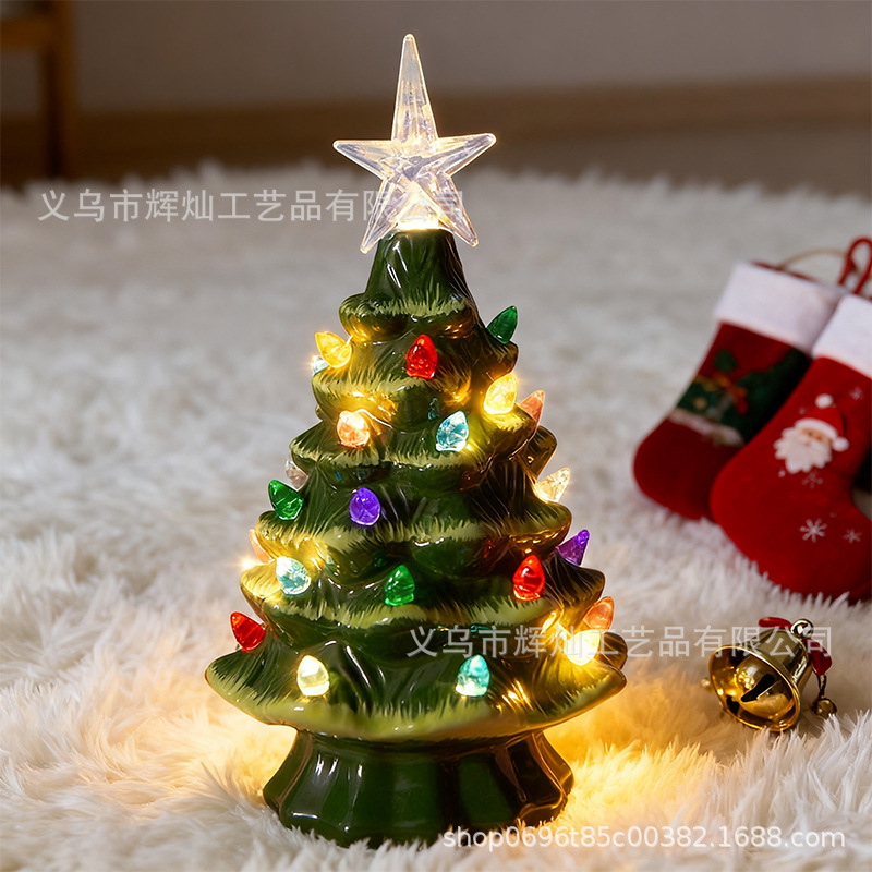 跨境新品彩灯圣诞树桌面客厅摆件高级感小众工艺品圣诞节装饰品