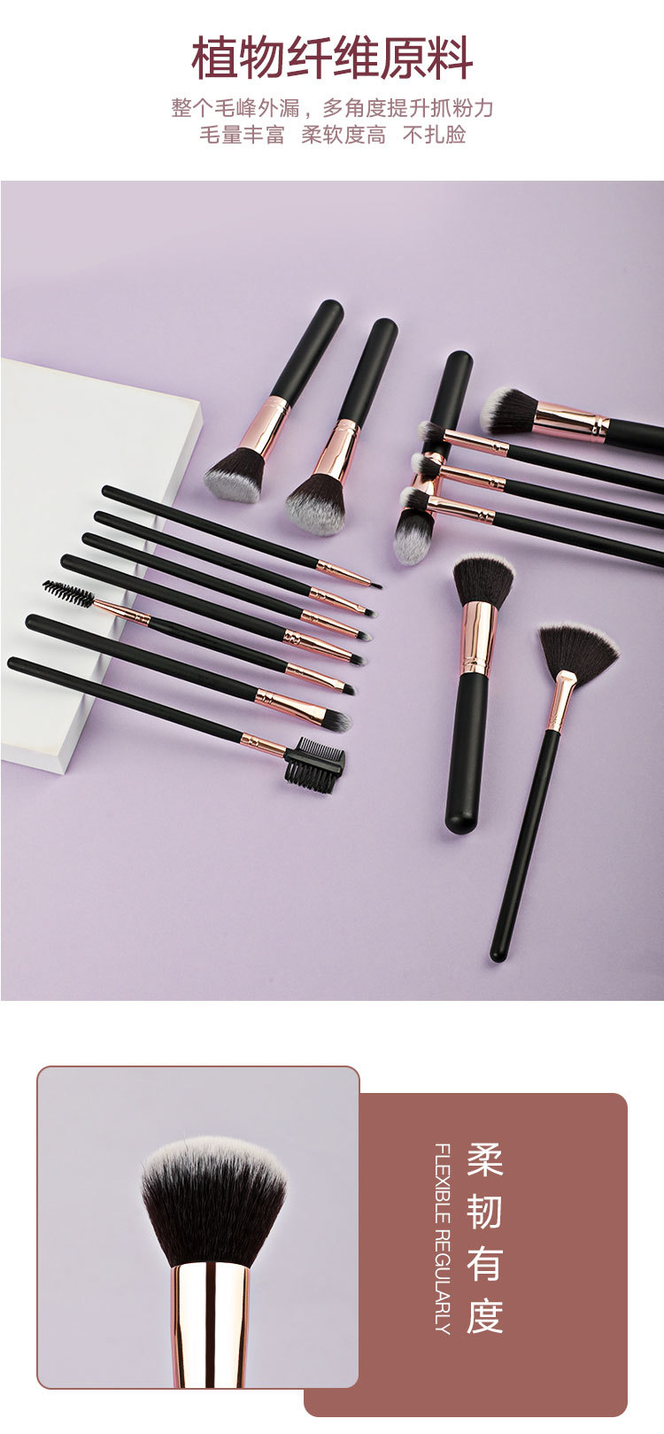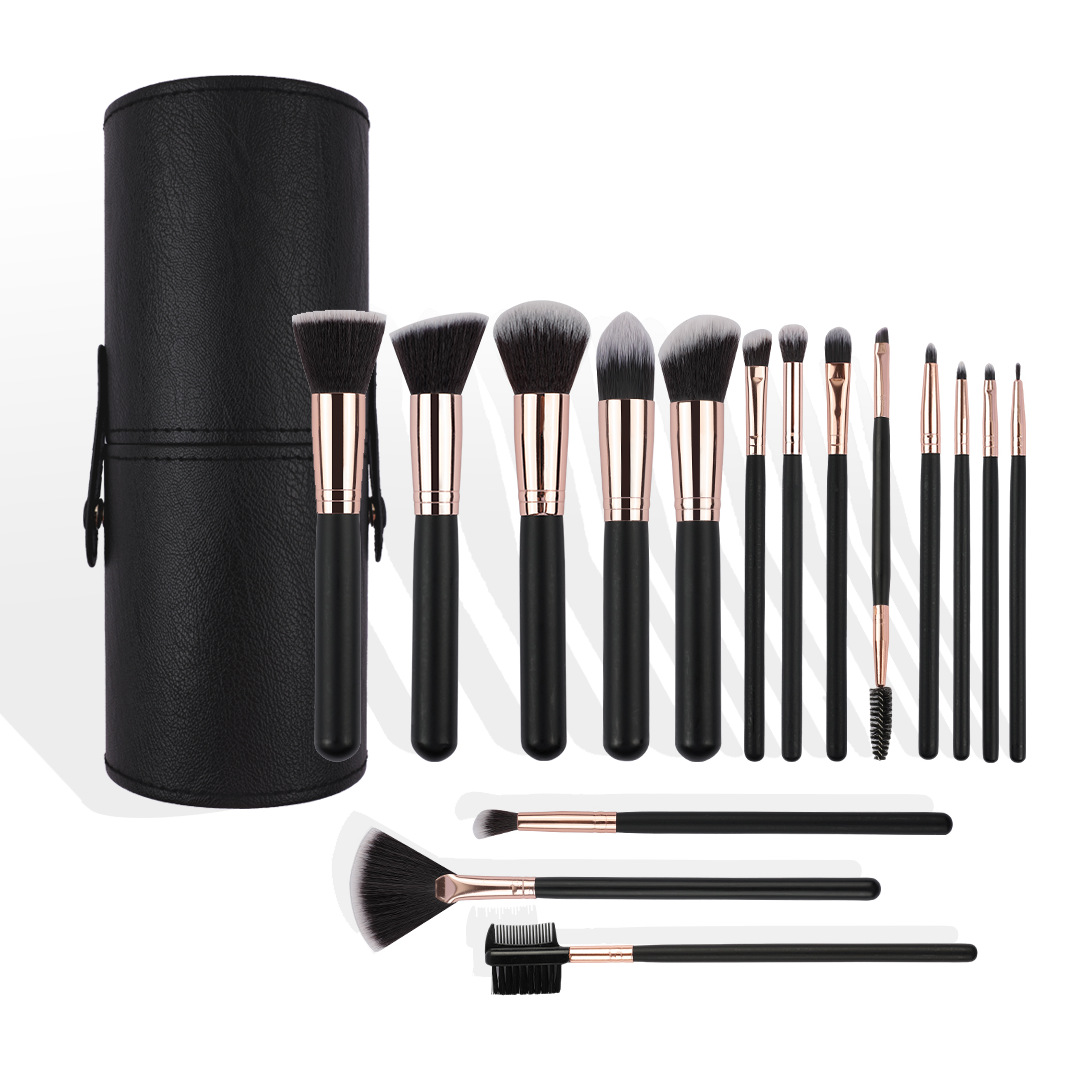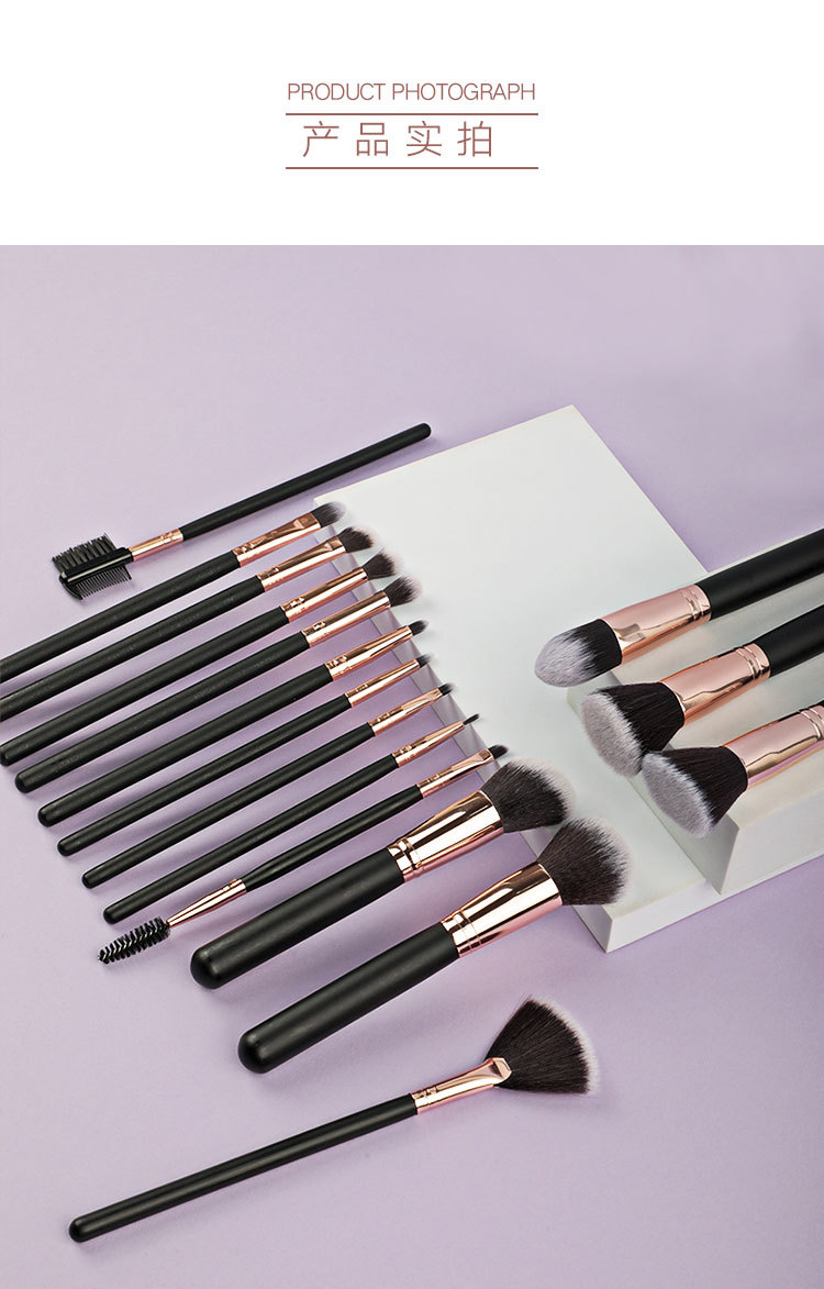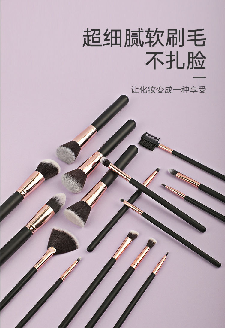 跨境亚马逊爆款16支化妆套刷全套黑色木柄柔软纤维毛专业彩妆刷子