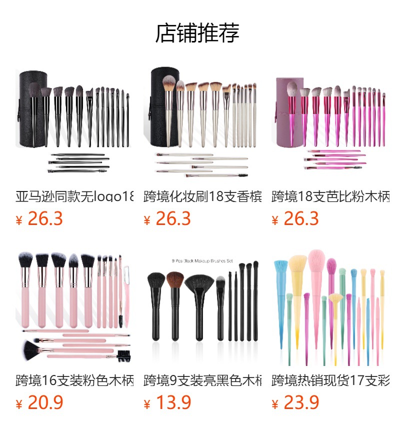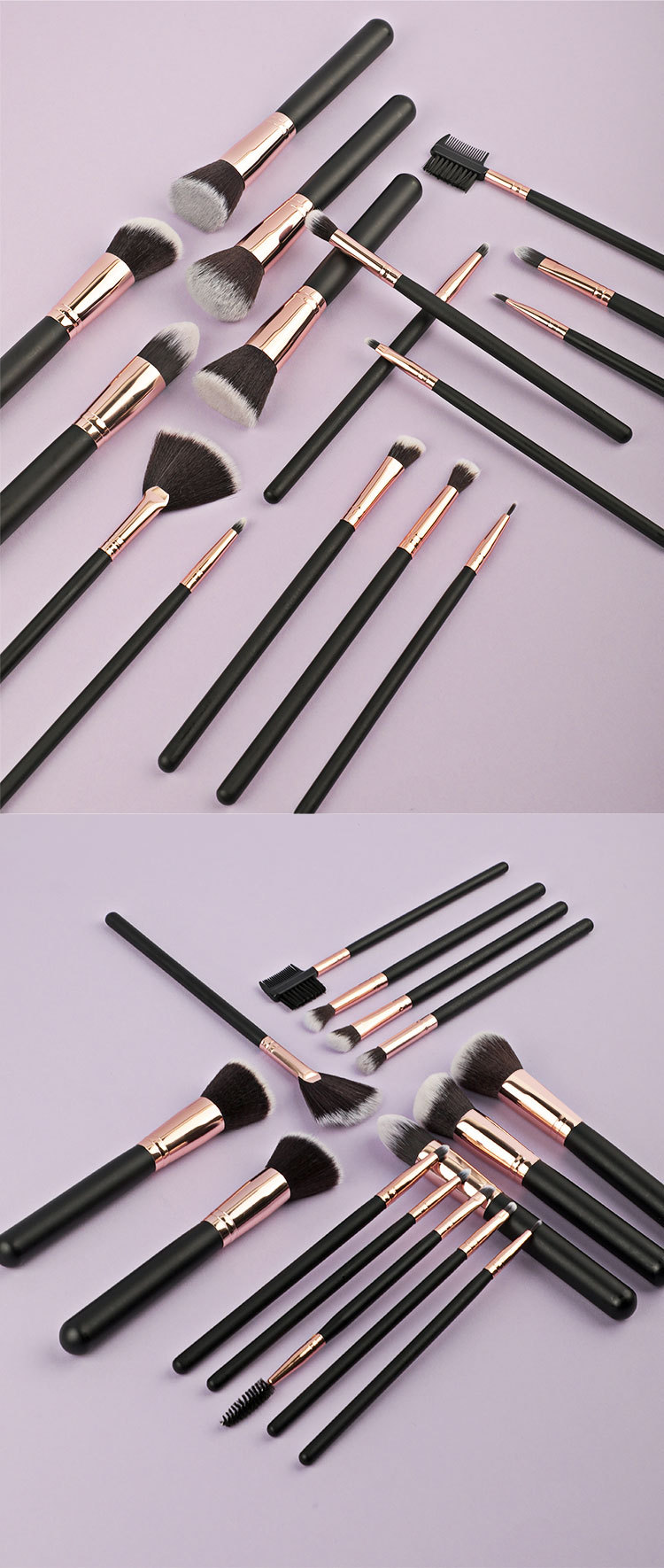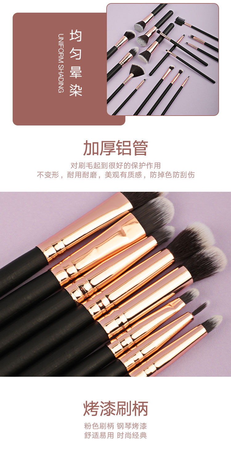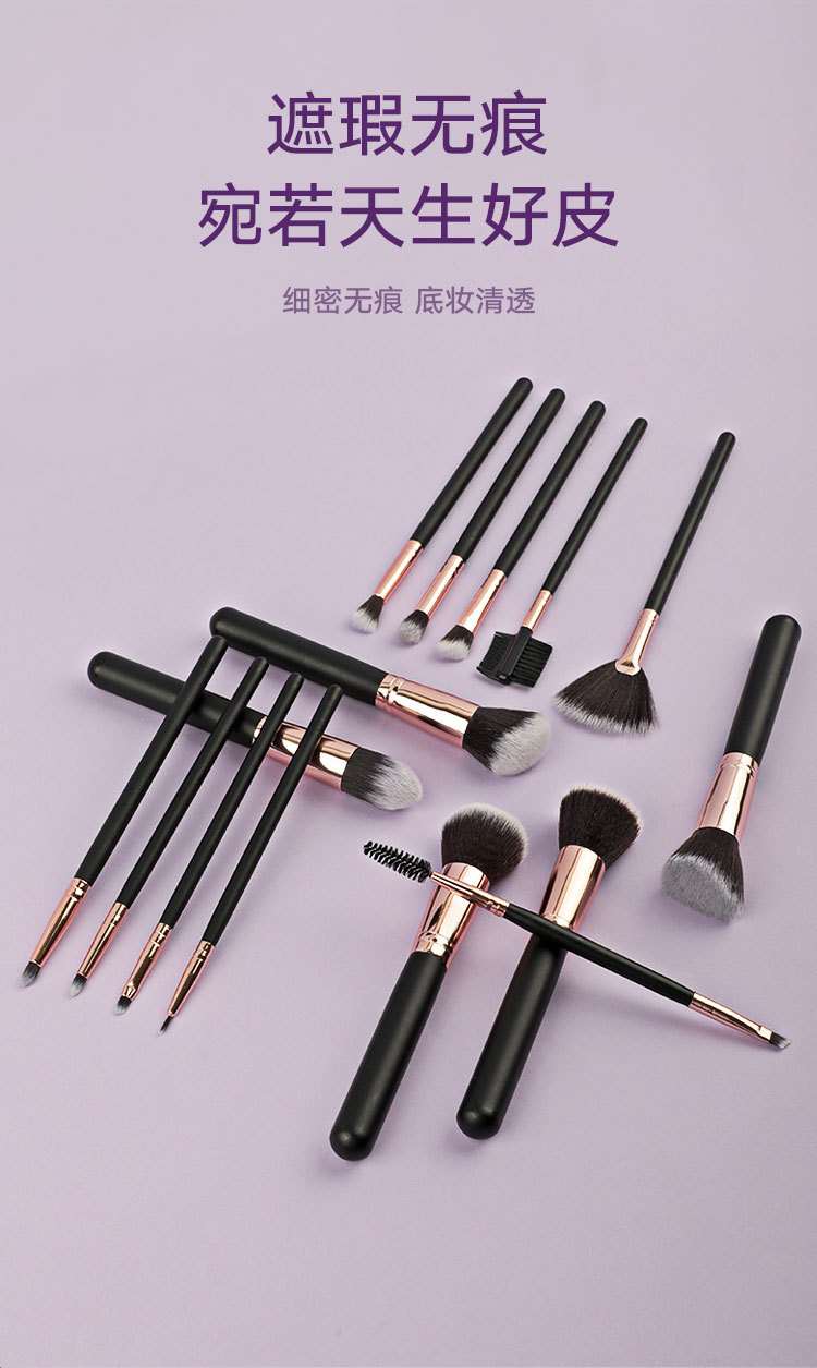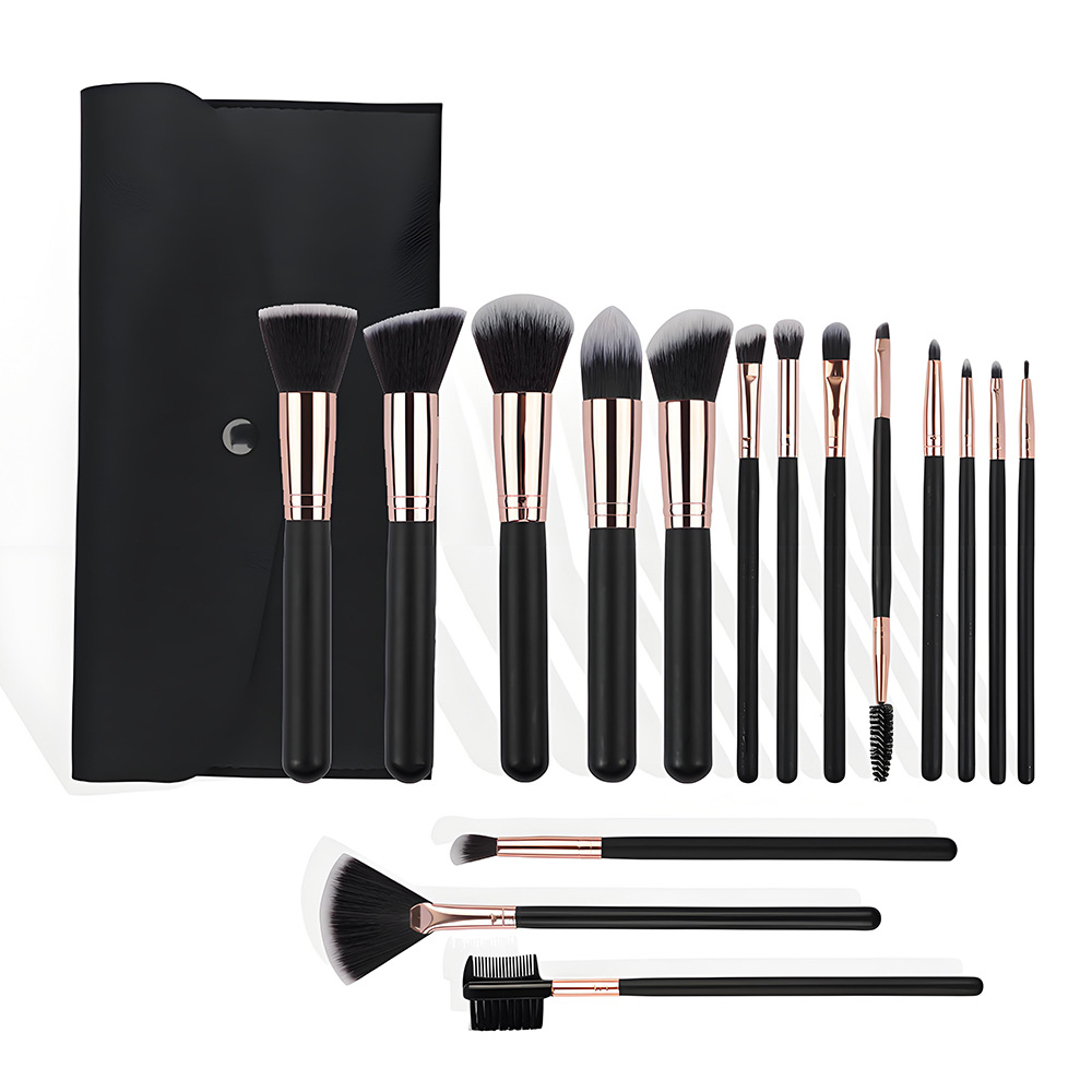 跨境亚马逊爆款16支化妆套刷全套黑色木柄柔软纤维毛专业彩妆刷子