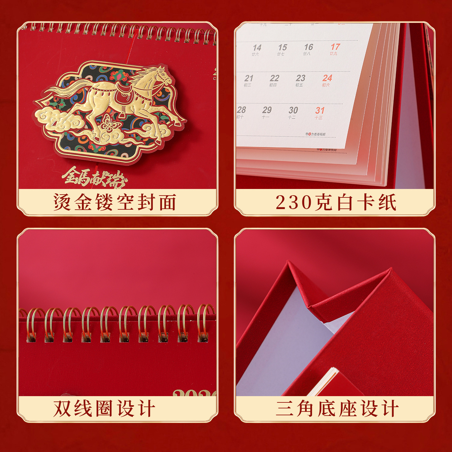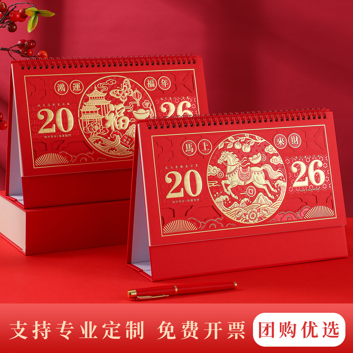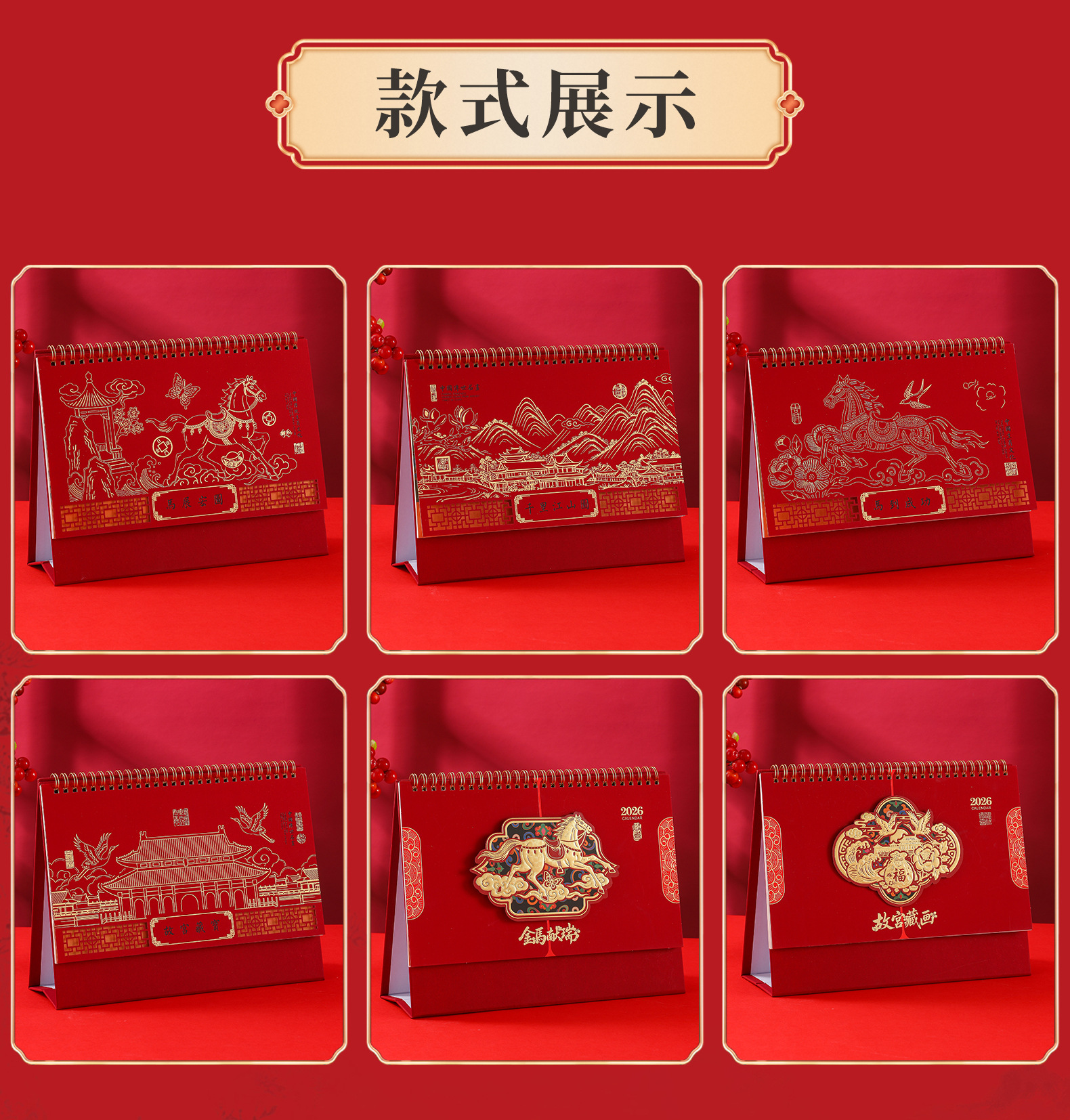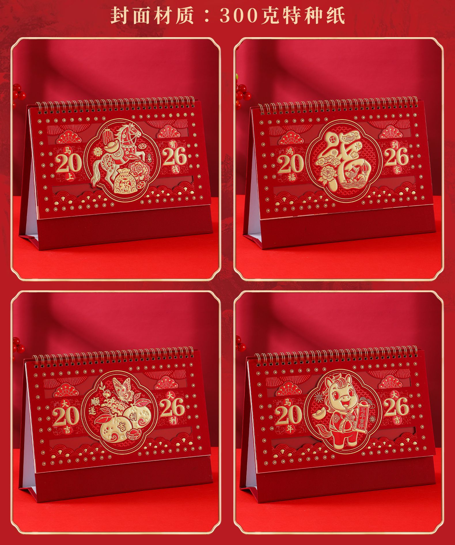 2026年新款红色喜庆台历办公桌面镂空日历摆件商务礼品台历定制