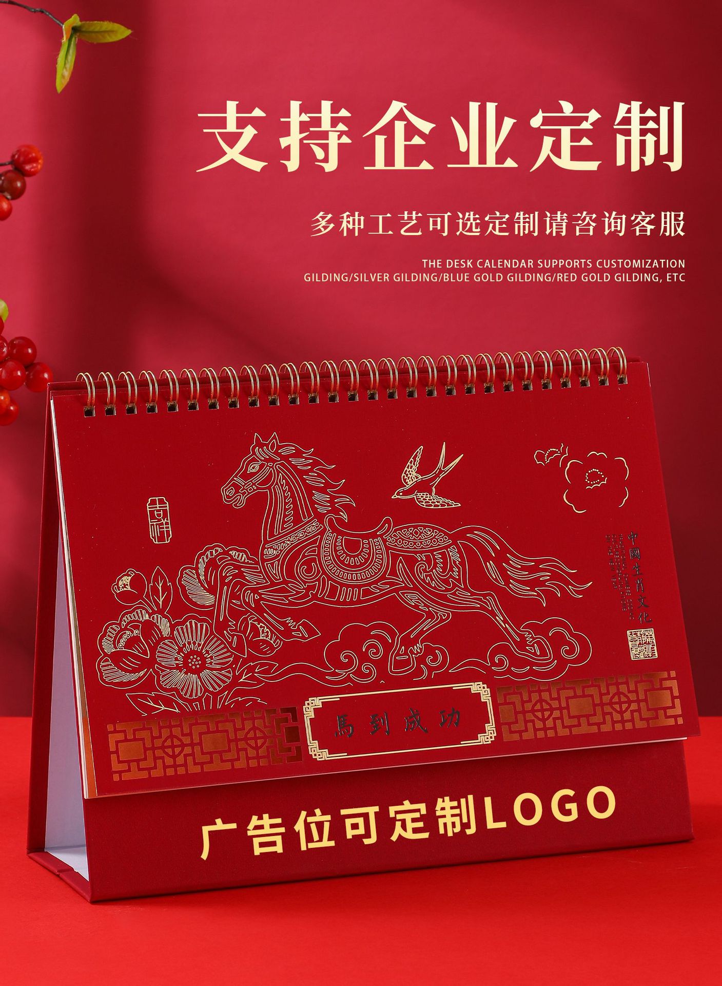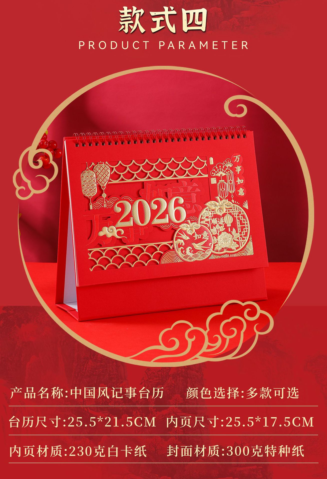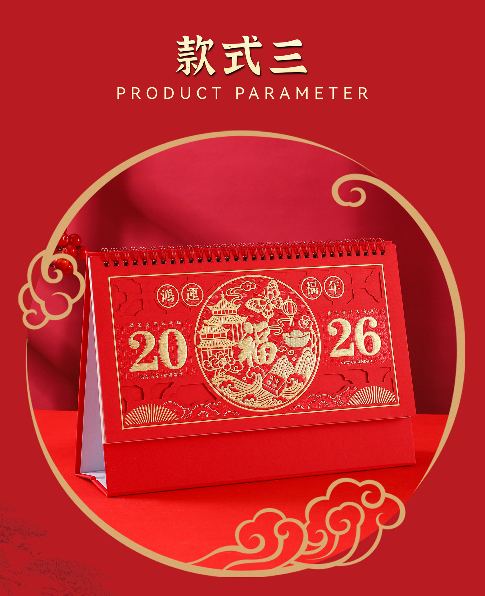 2026年新款红色喜庆台历办公桌面镂空日历摆件商务礼品台历定制