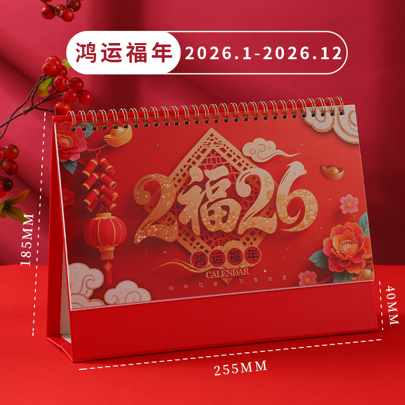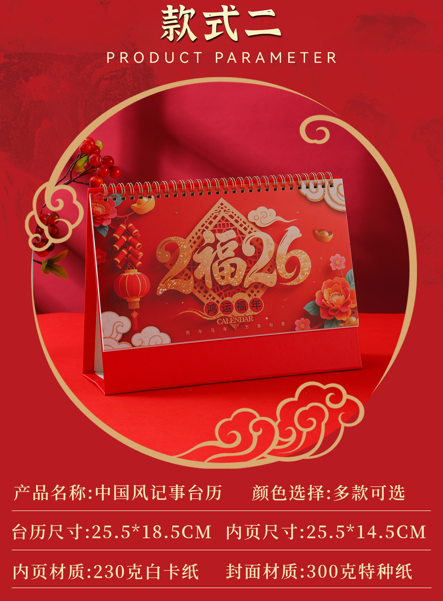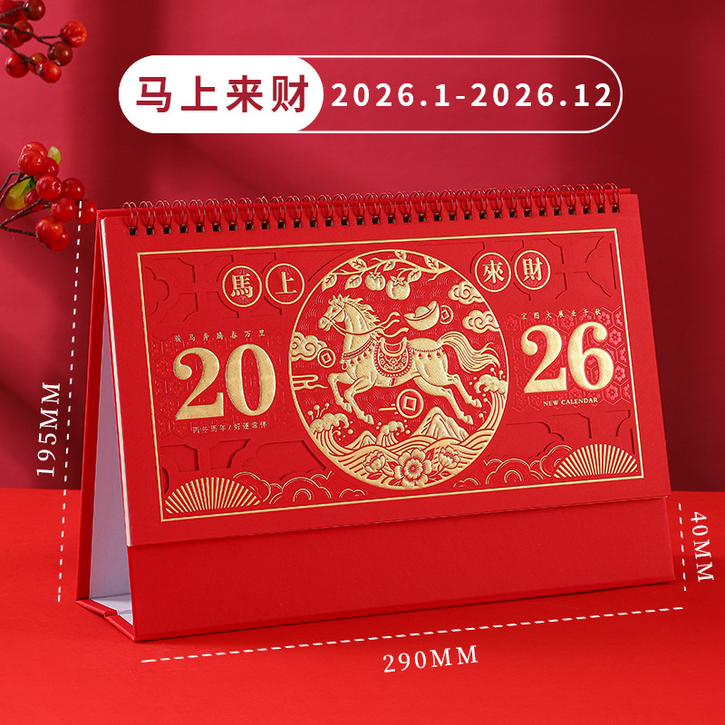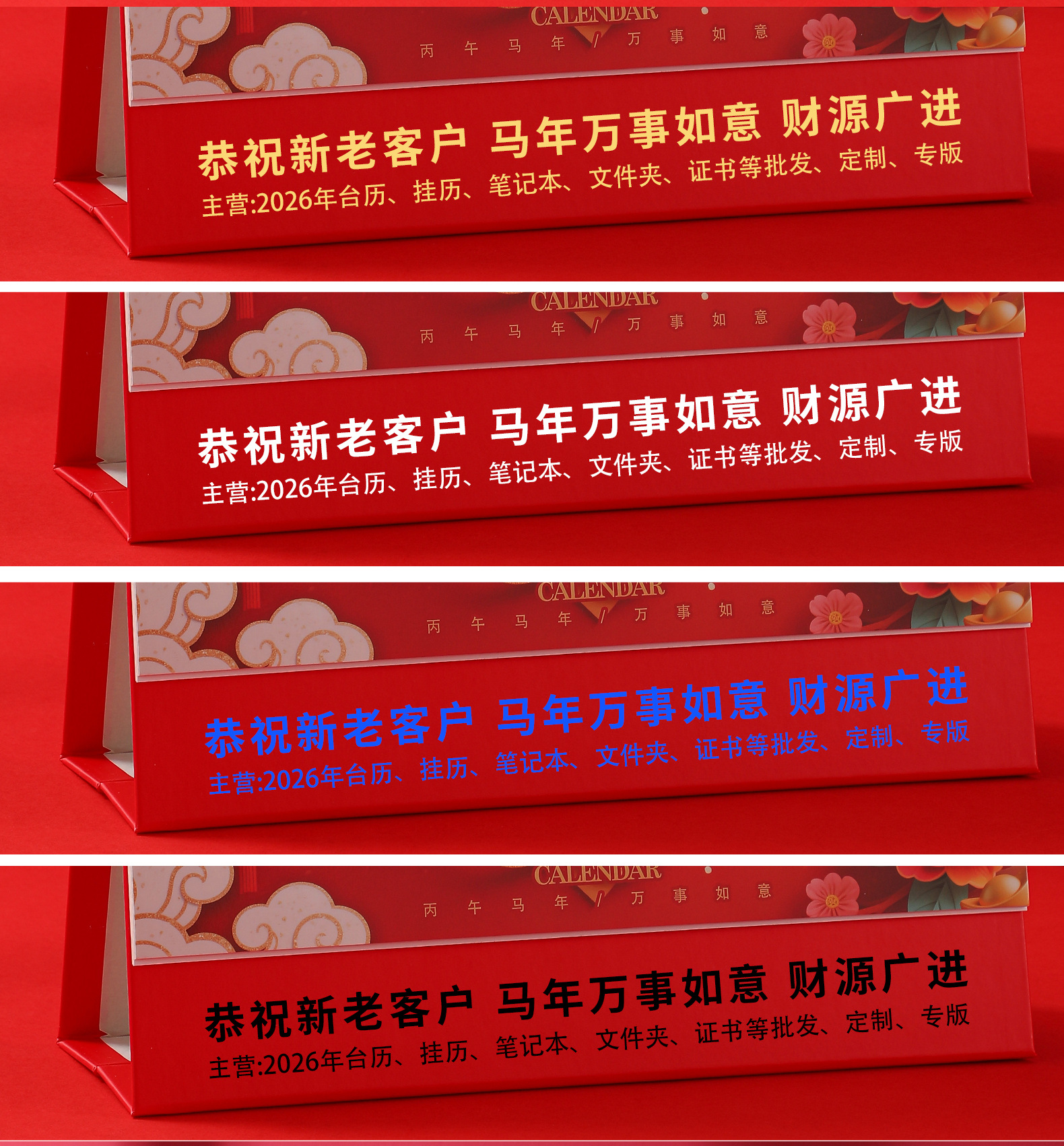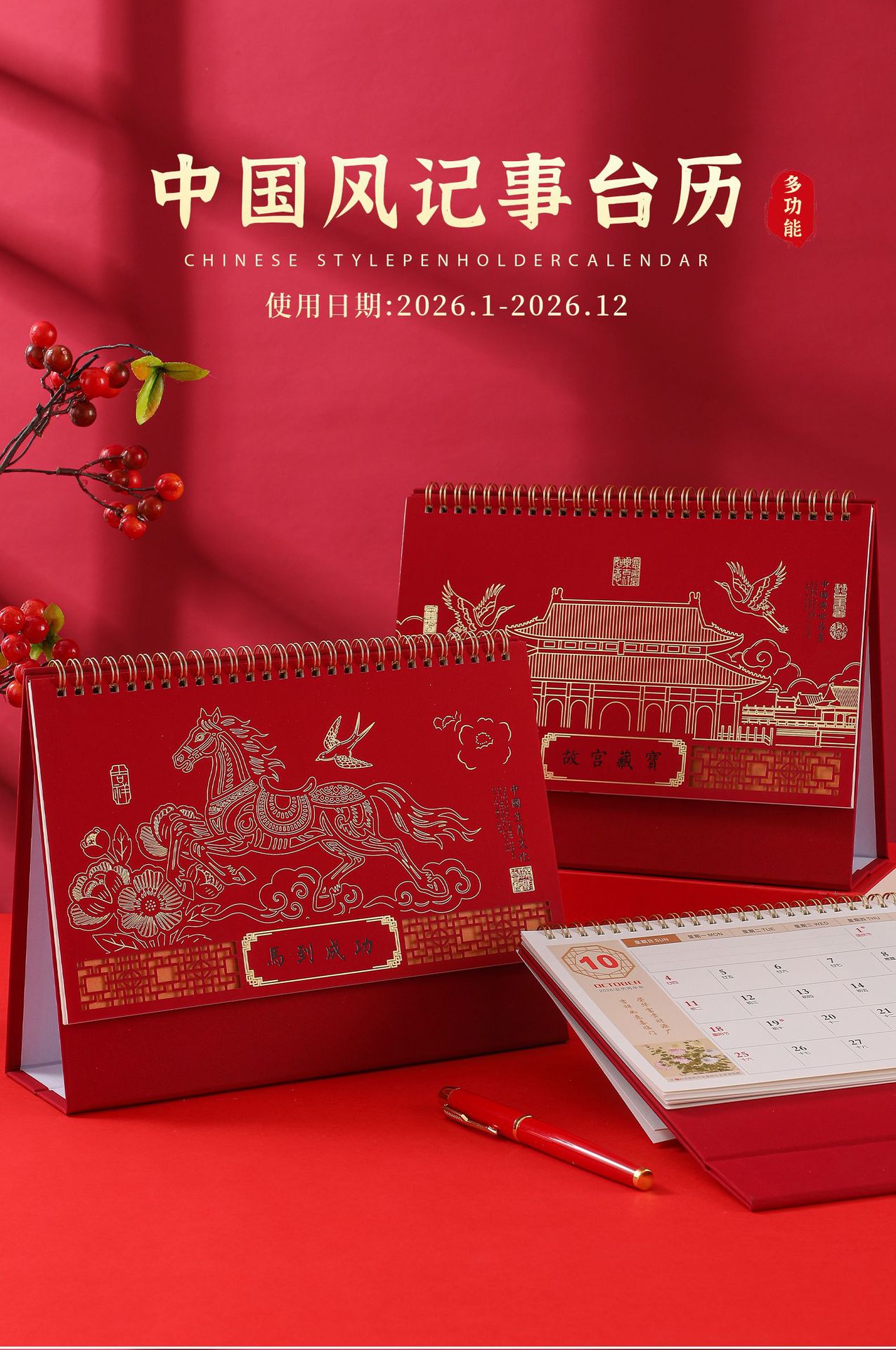 2026年新款红色喜庆台历办公桌面镂空日历摆件商务礼品台历定制