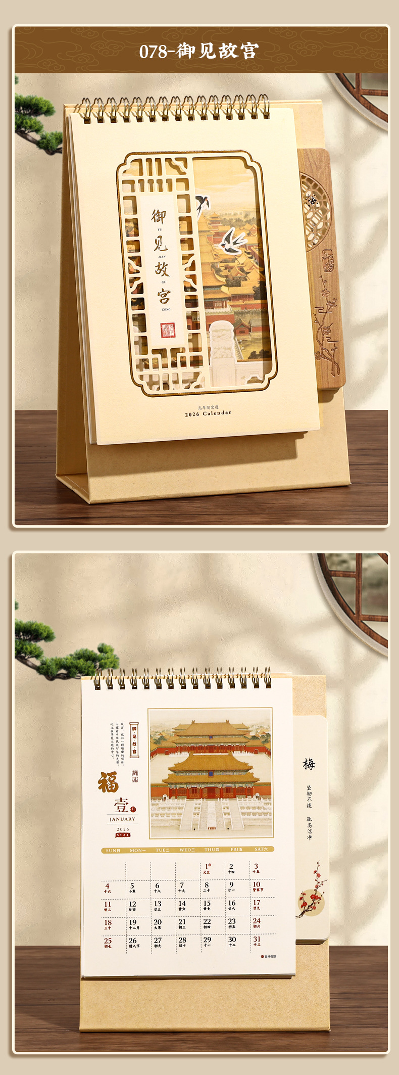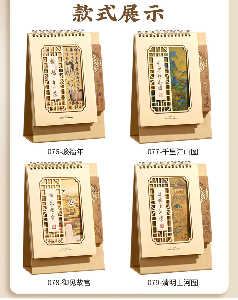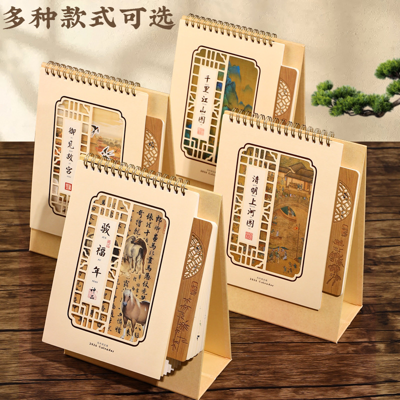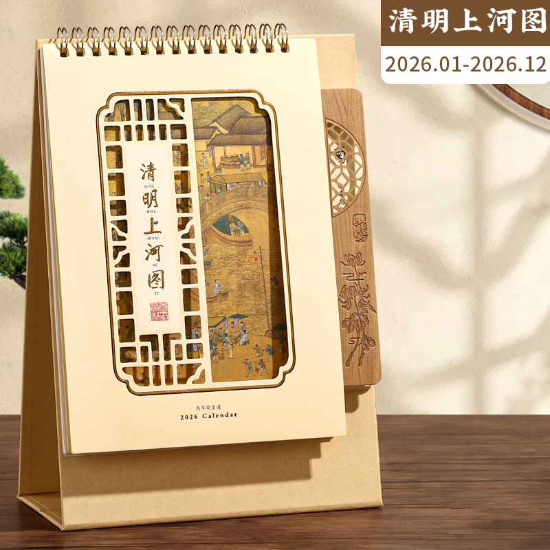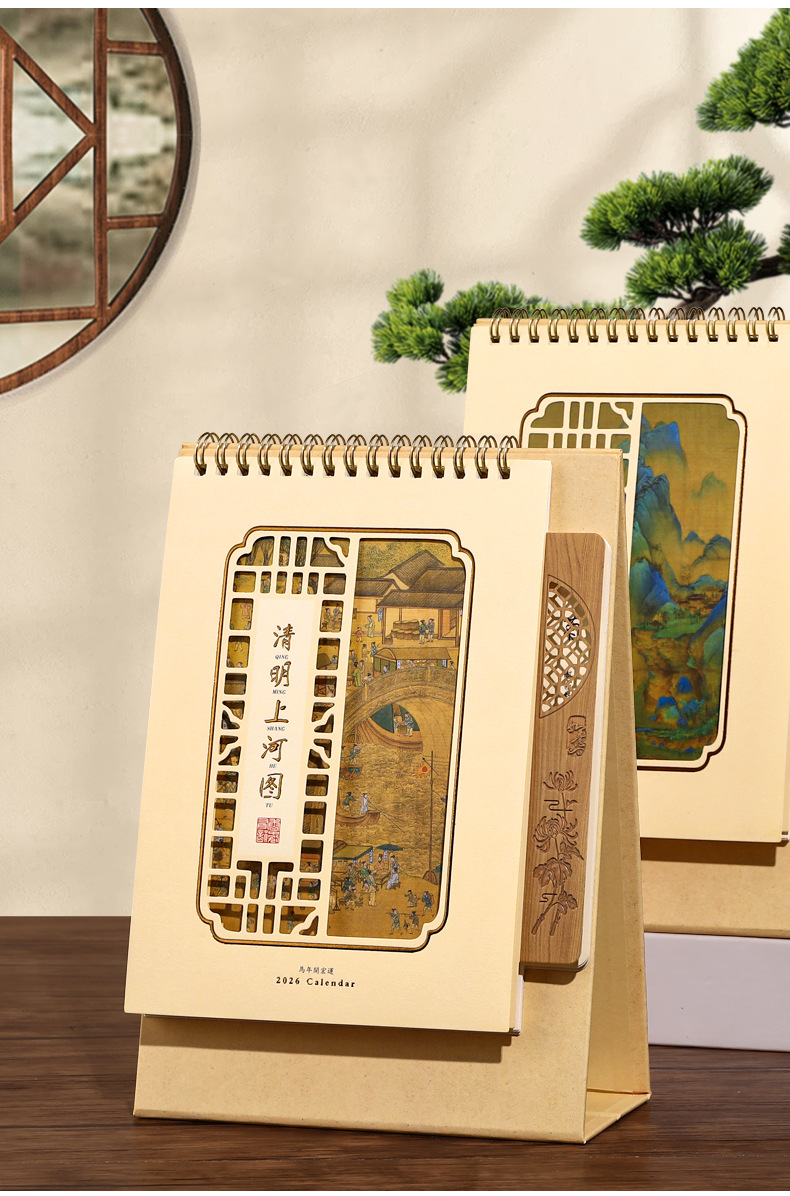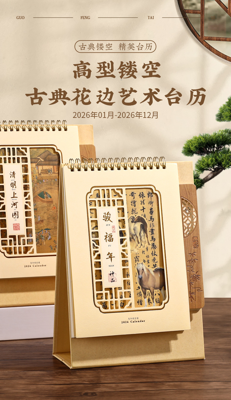 古风台历2026日历桌面摆件新款立体精雕花边创意企业定制广告log