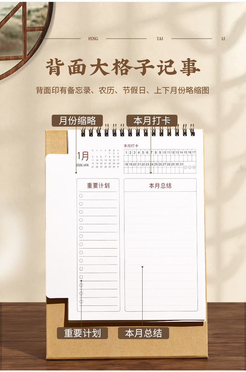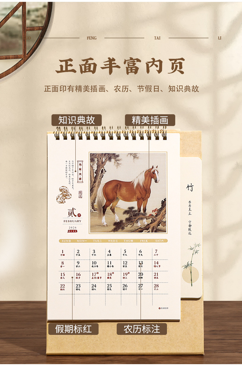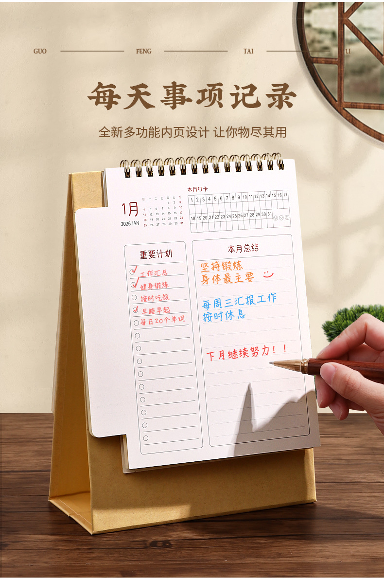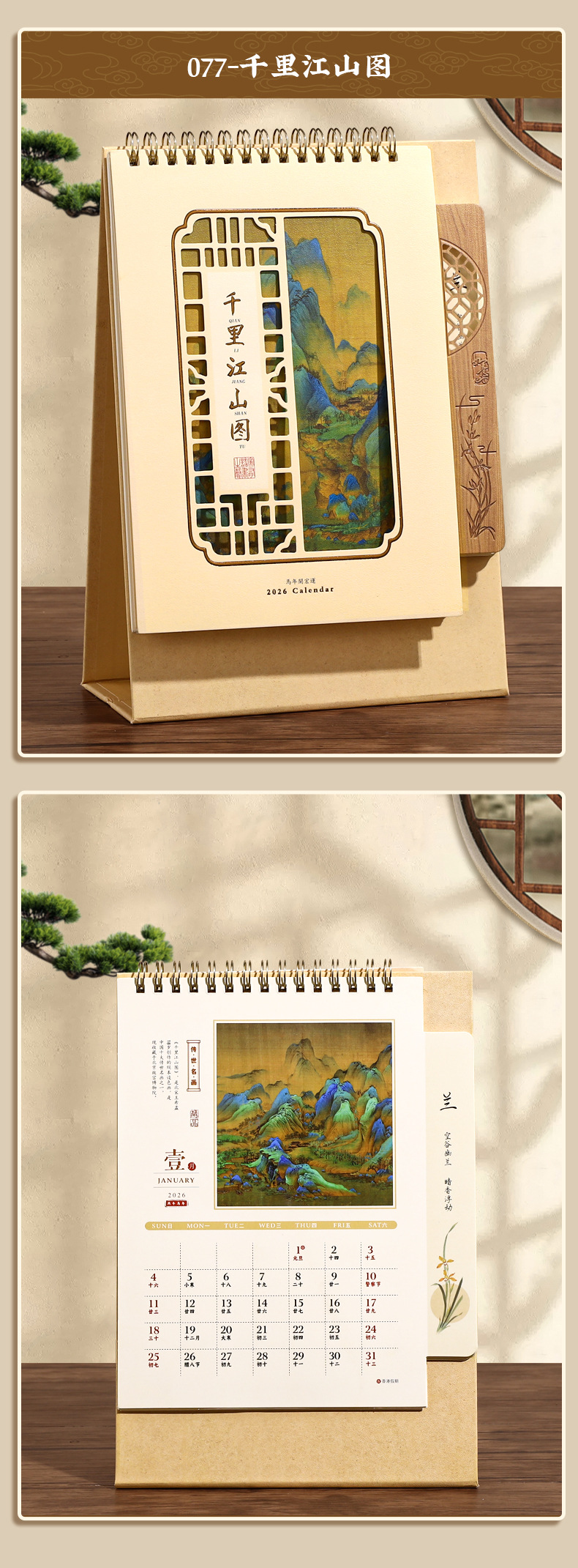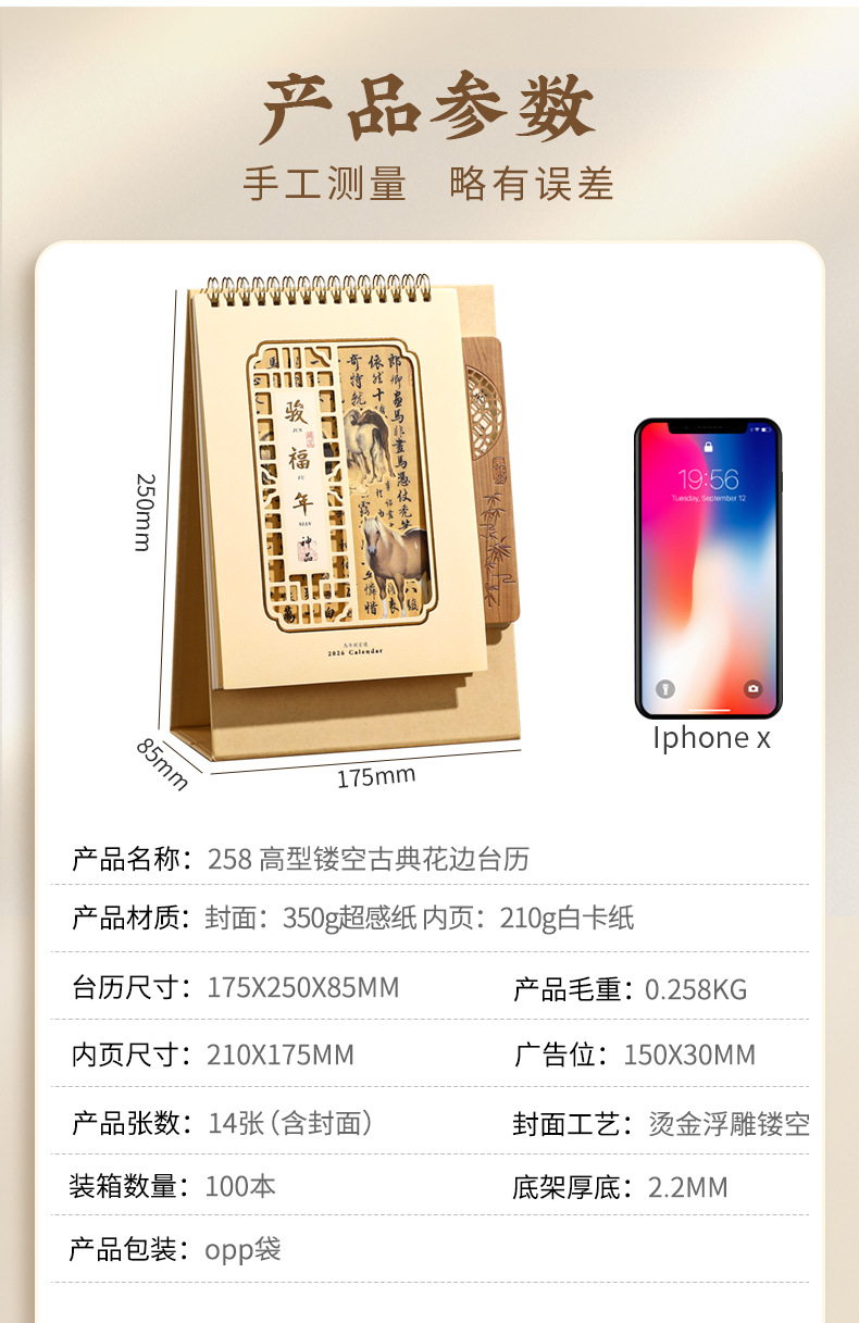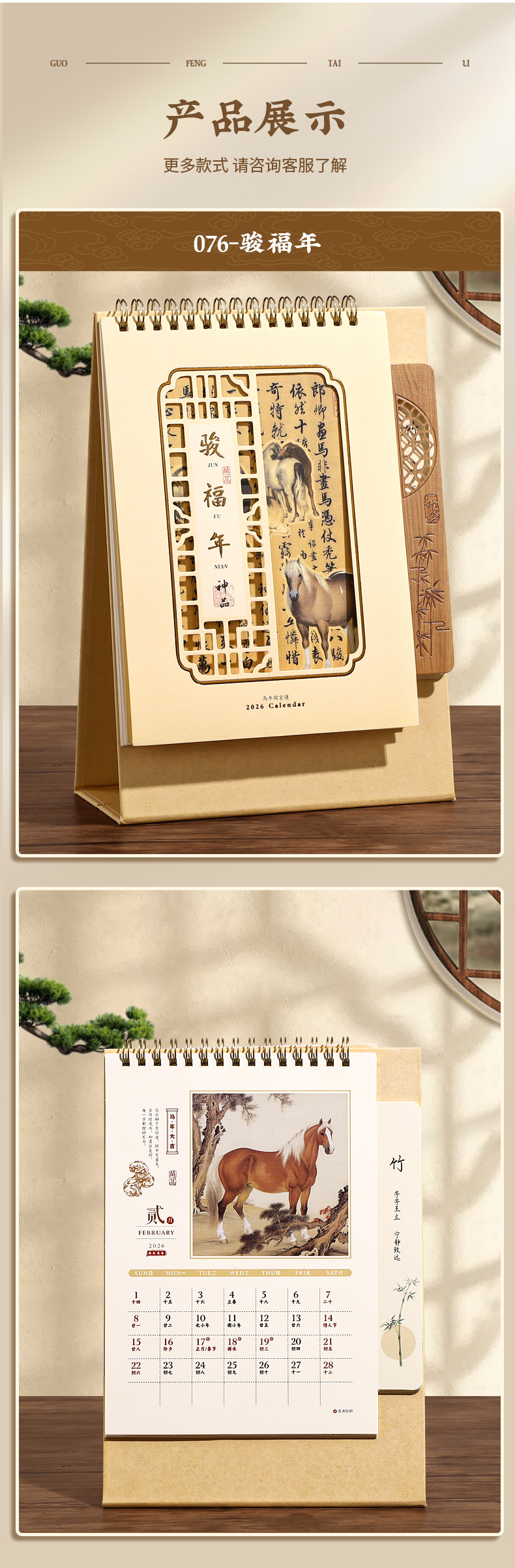 古风台历2026日历桌面摆件新款立体精雕花边创意企业定制广告log