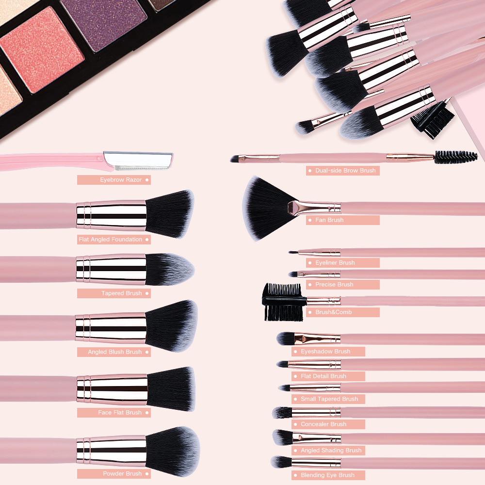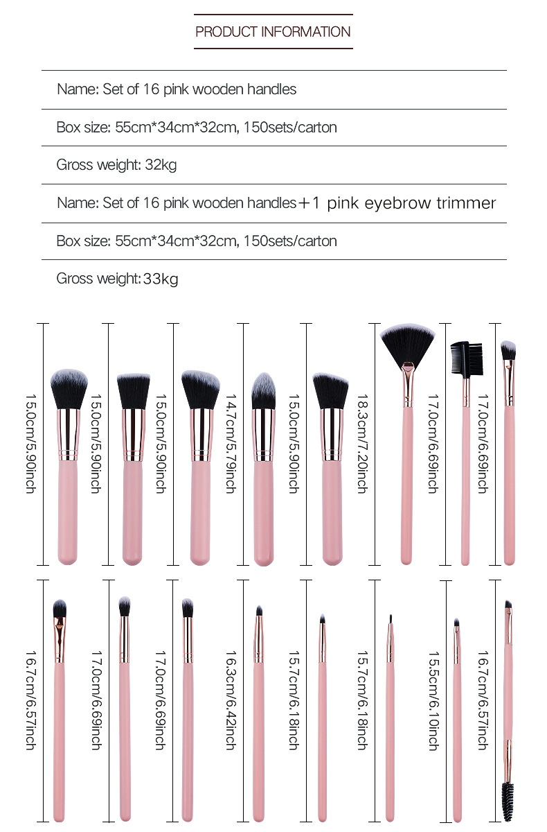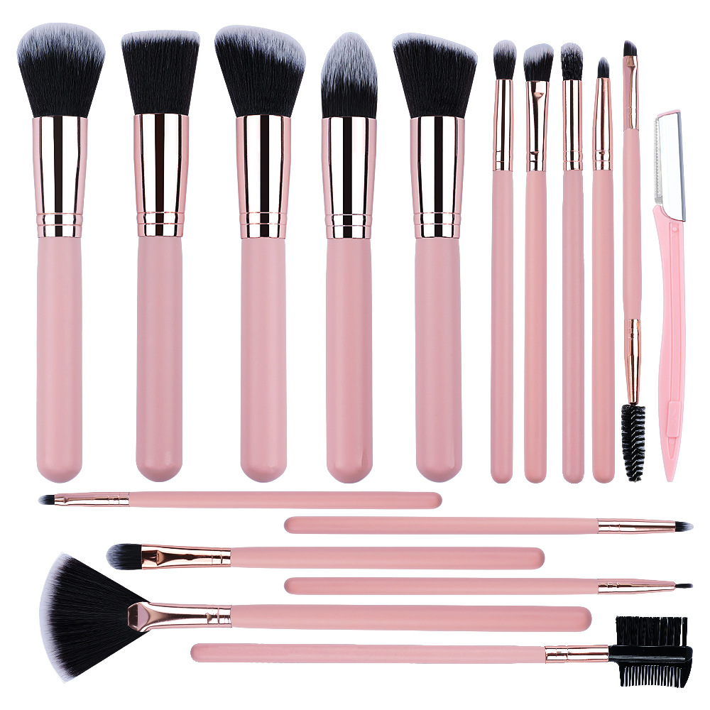 跨境16支化妆刷套装工厂直销亚马逊同款粉色木柄高级感专业彩妆刷