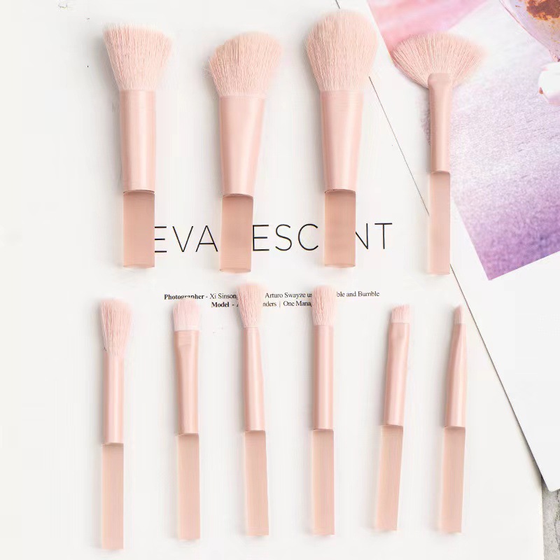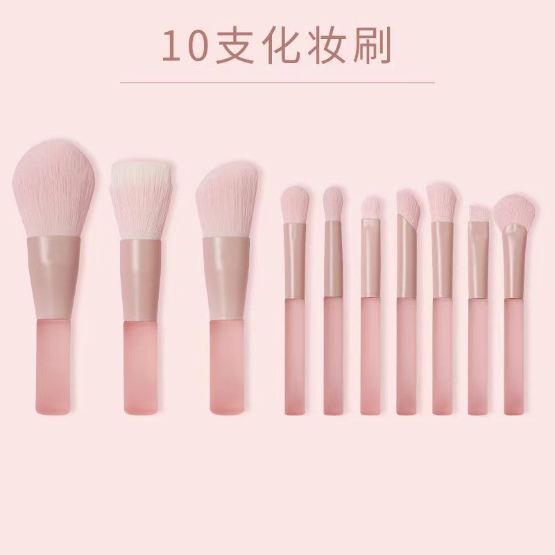 跨境蜜桃粉10支初学者化妆刷套装眼部粉刷腮红刷迷你便携美妆工具