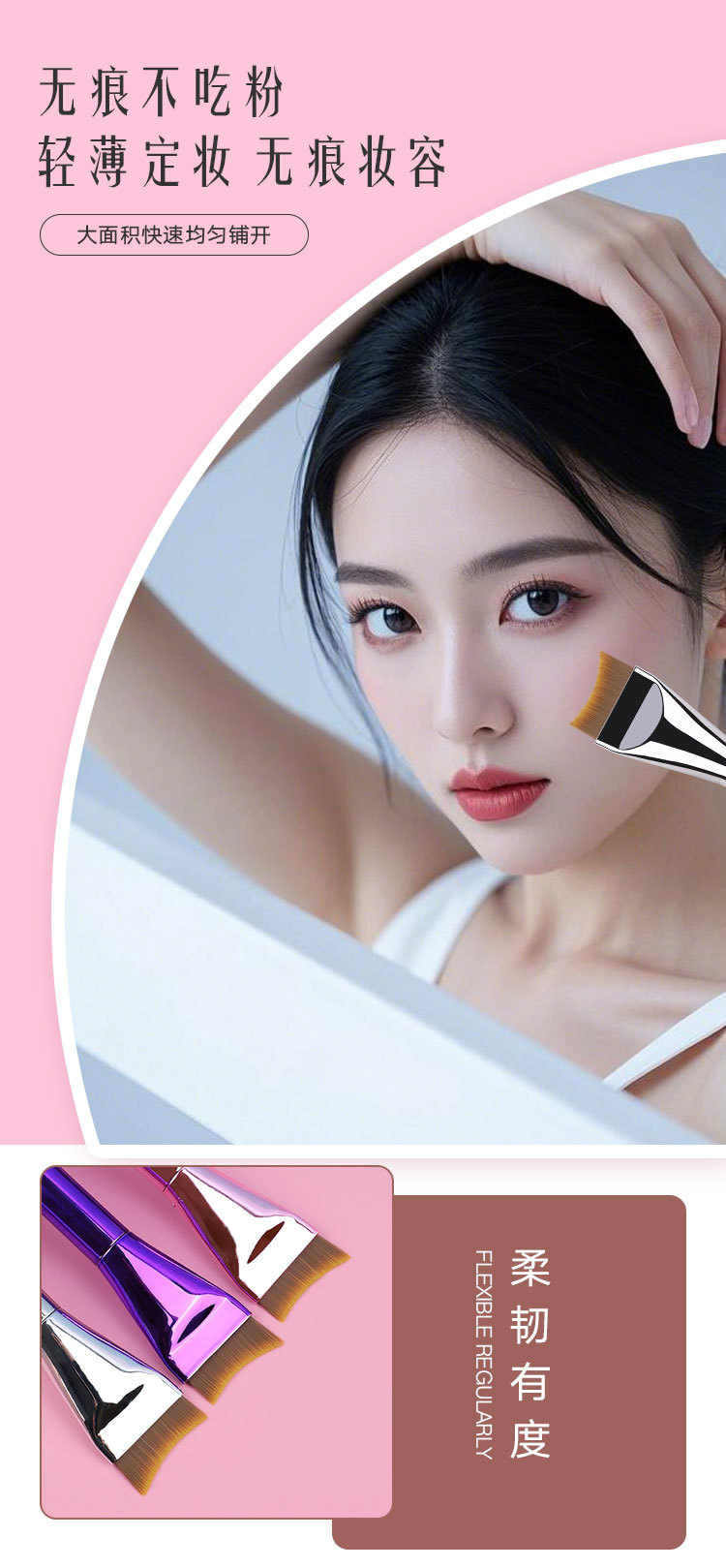 月牙粉底刷扁头弧形不吃粉面膜刷一字型服帖无刷痕沧州化妆刷