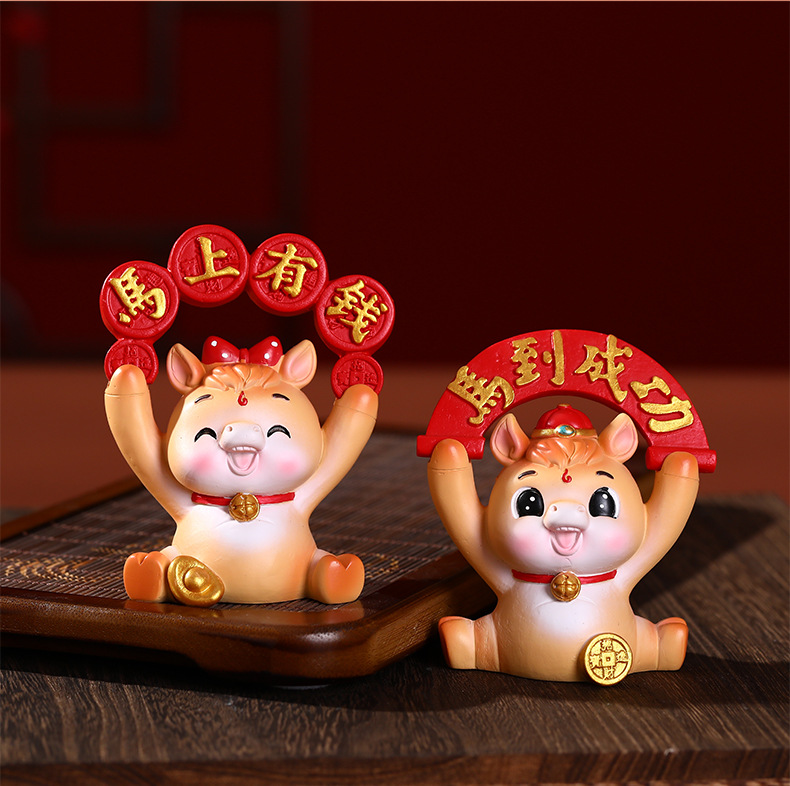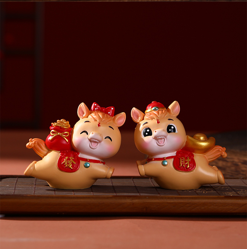 新年国潮马摆件创意生肖吉祥马树脂工艺家居客厅玄关礼品桌面办公