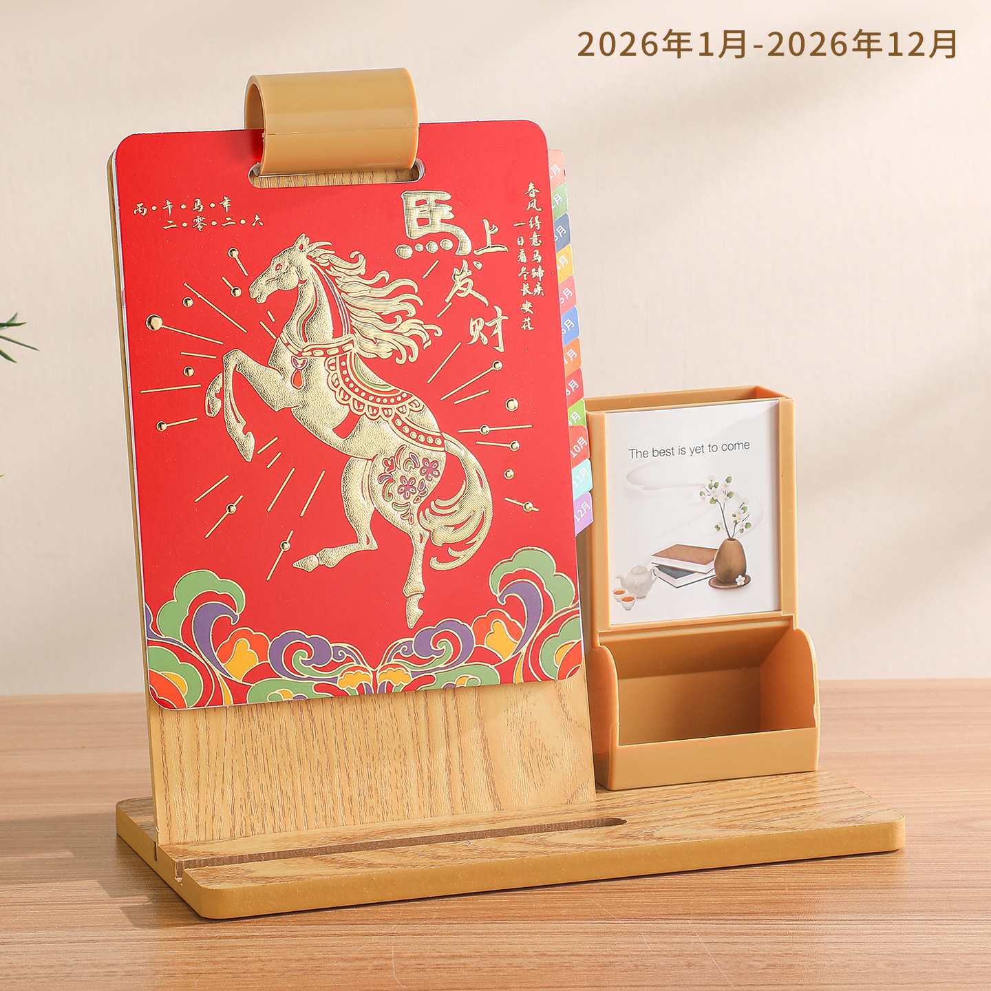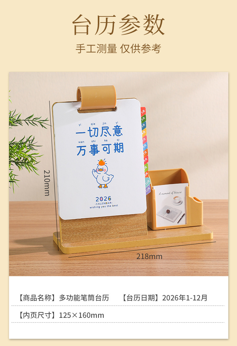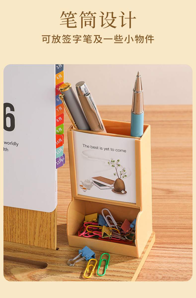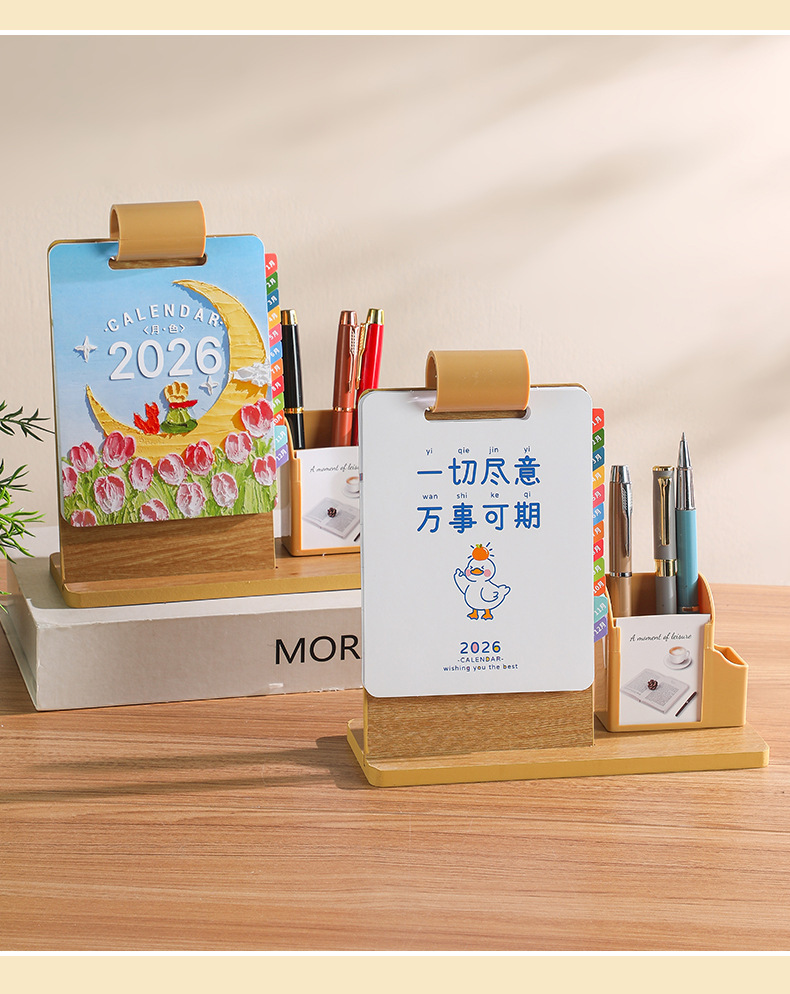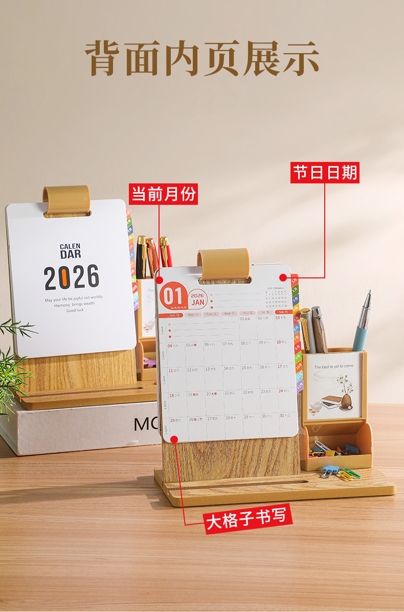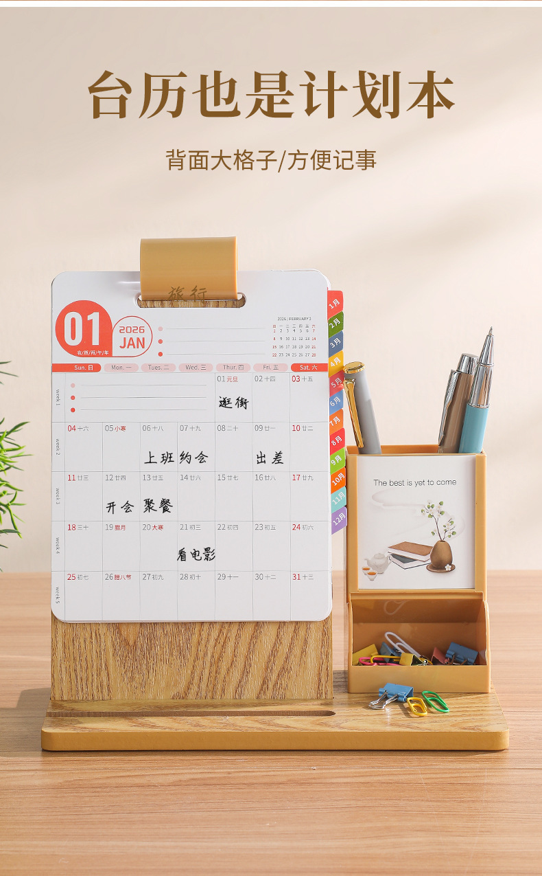 2026年新款台历定制创意桌面摆件蛇年企业logo木质笔筒办公日月历
