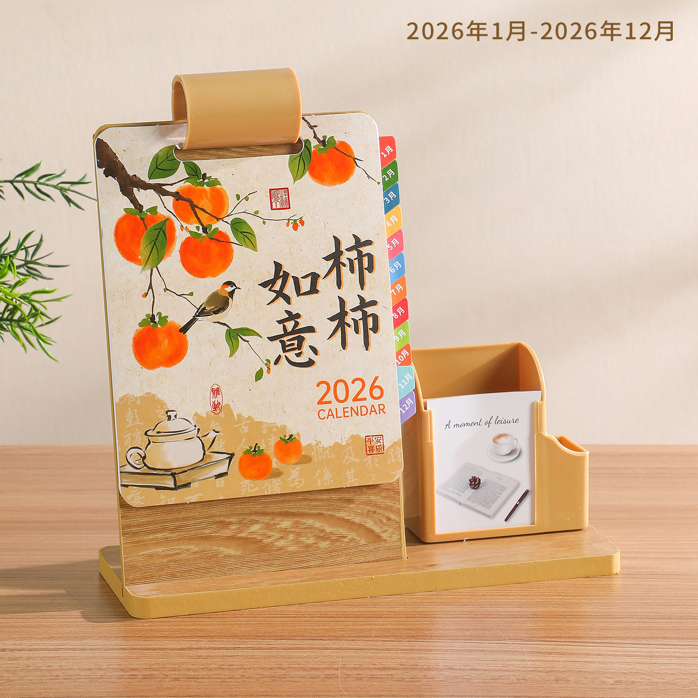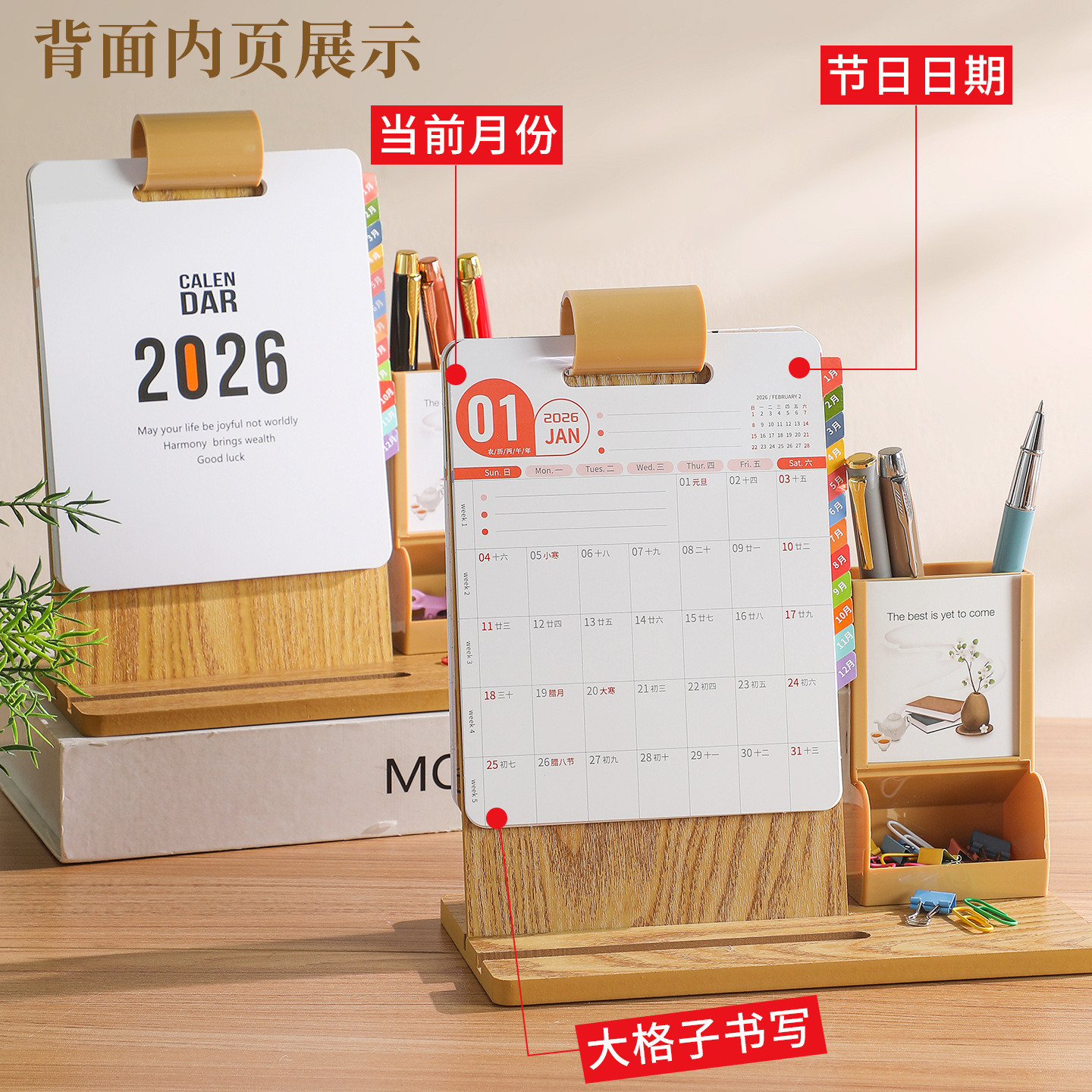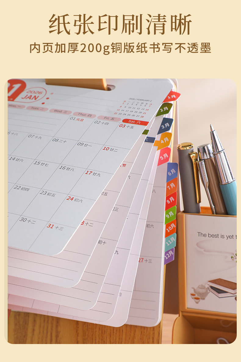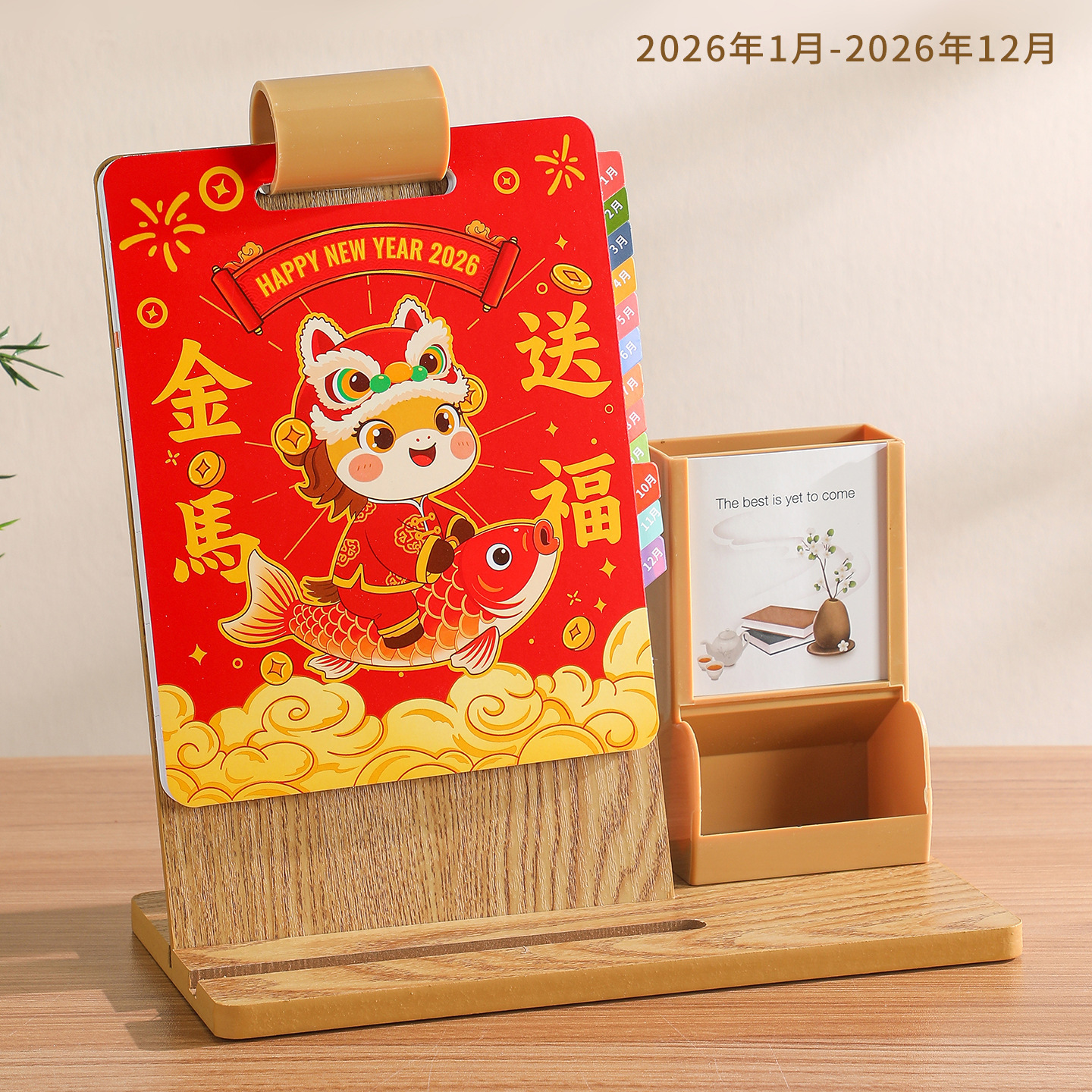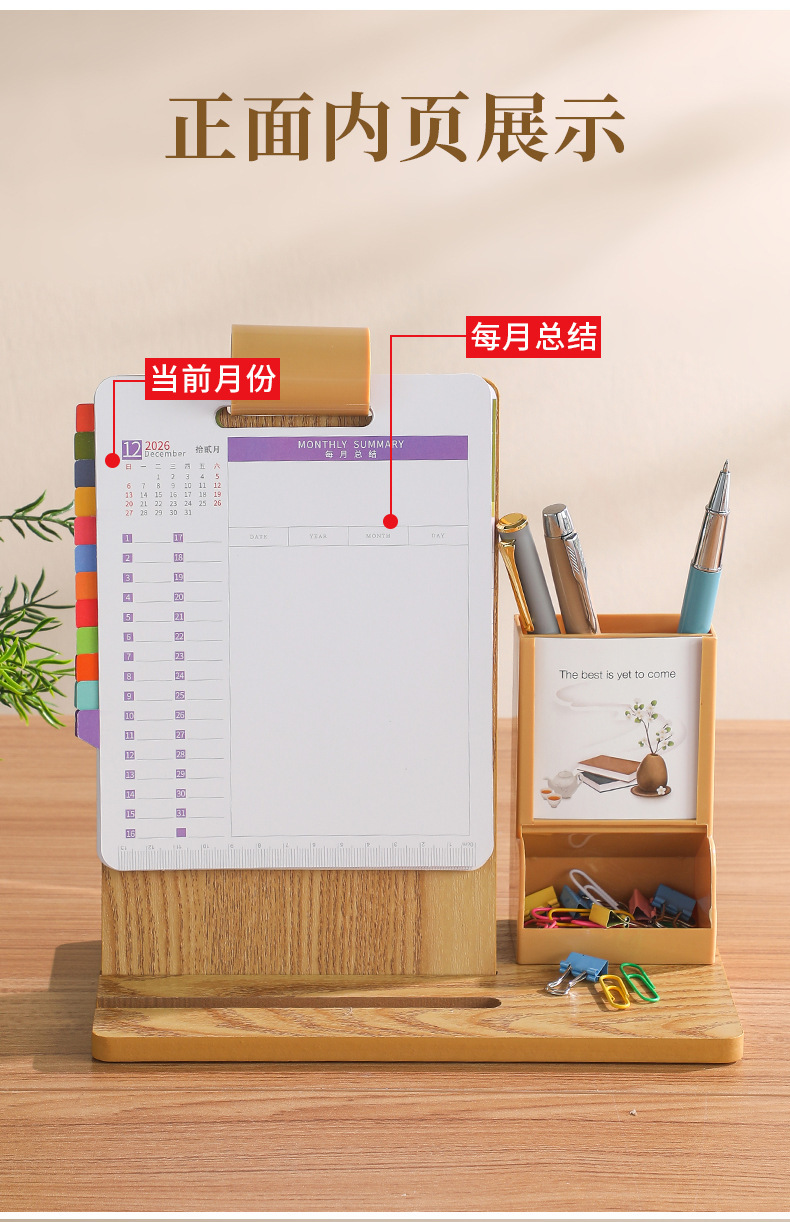 2026年新款台历定制创意桌面摆件蛇年企业logo木质笔筒办公日月历