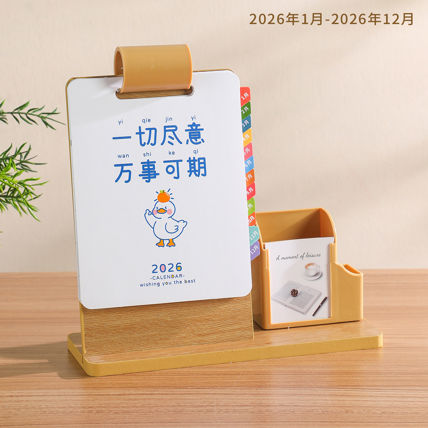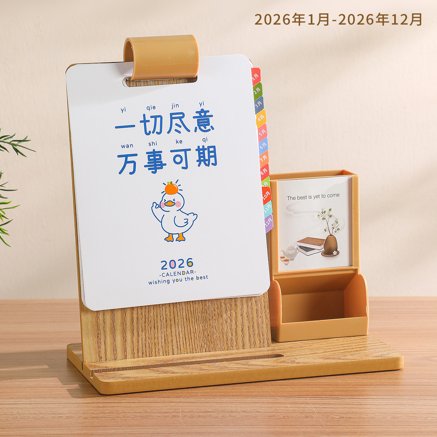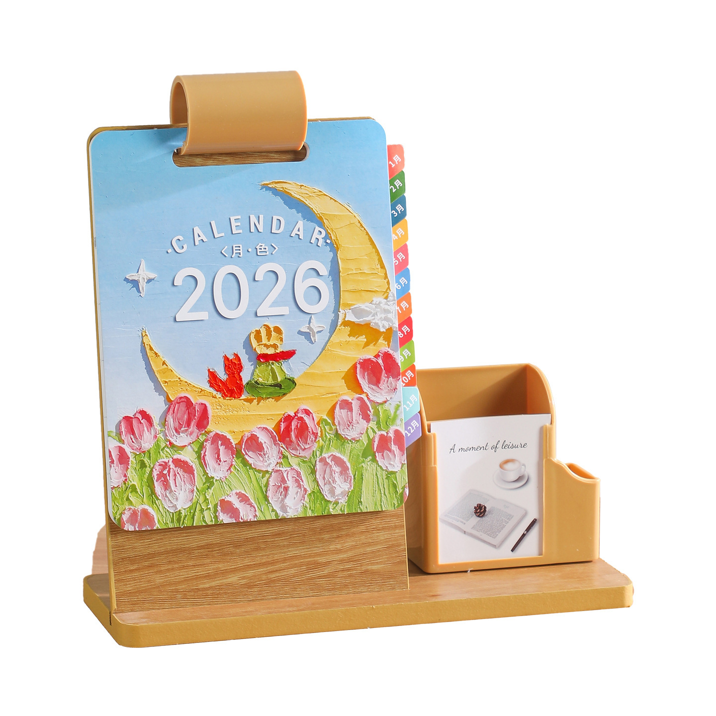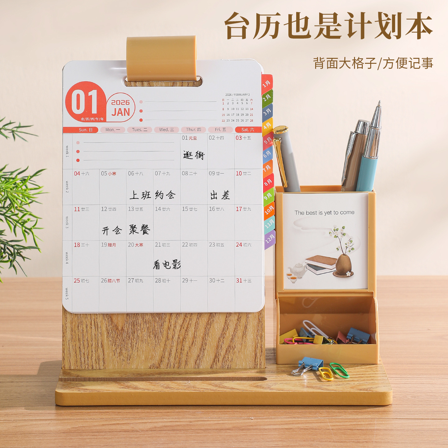 2026年新款台历定制创意桌面摆件蛇年企业logo木质笔筒办公日月历