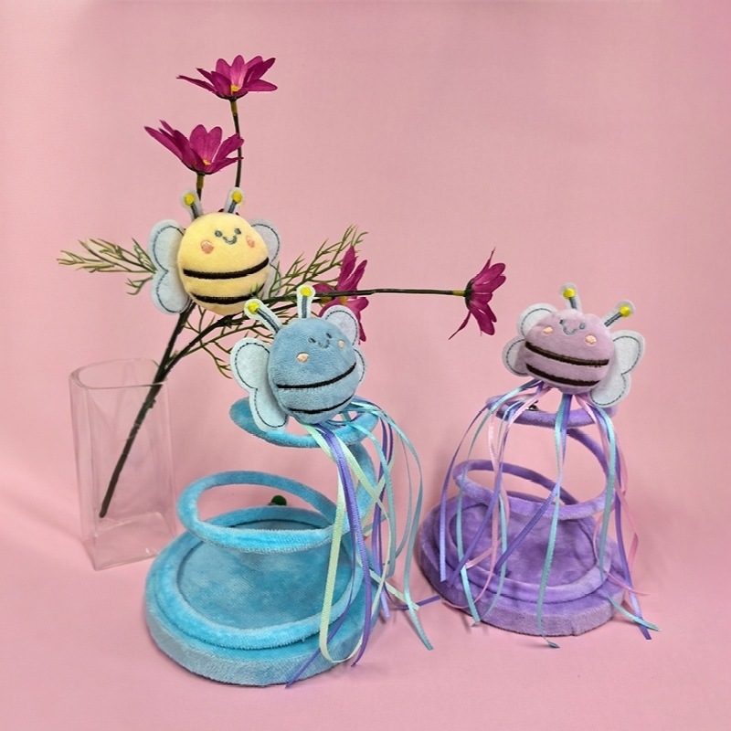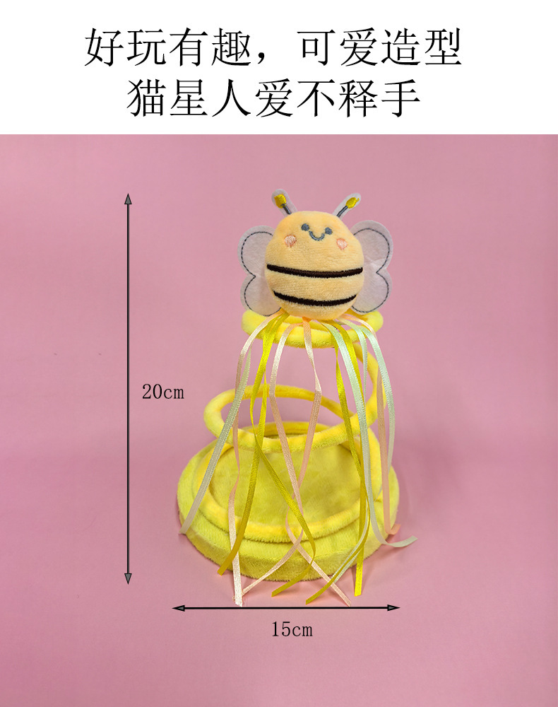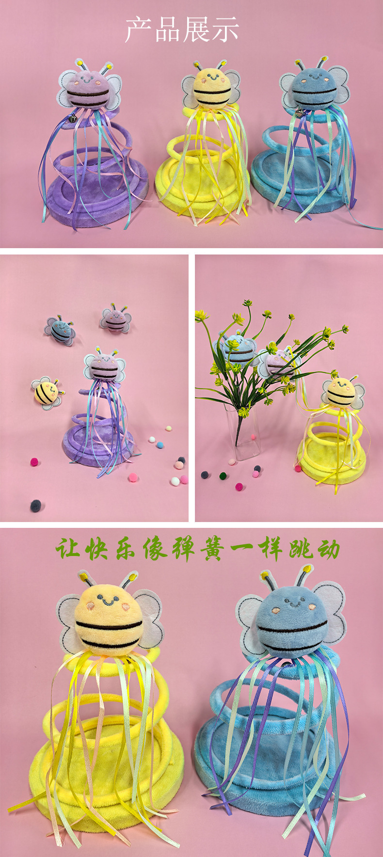 跨境弹簧猫玩具马卡龙色蜜蜂逗猫棒可爱卡通造型宠物玩具工厂批发