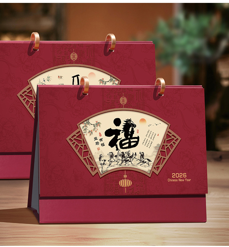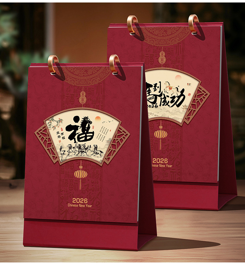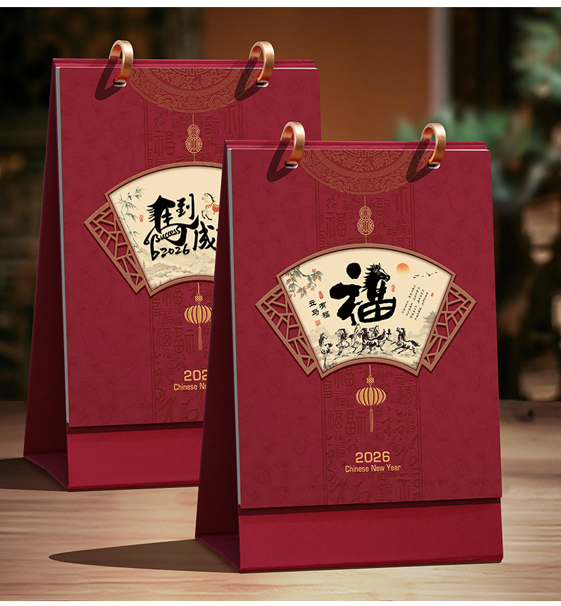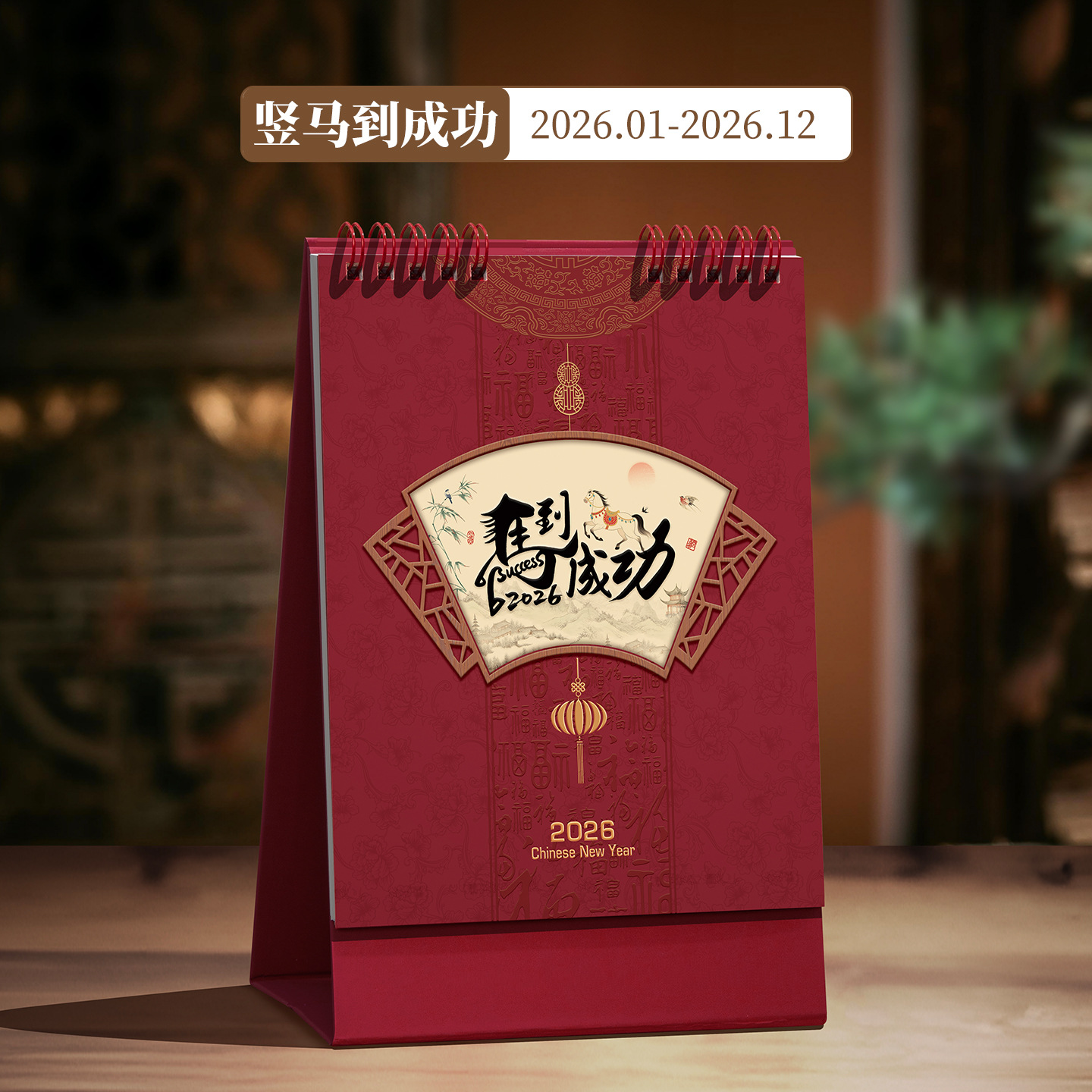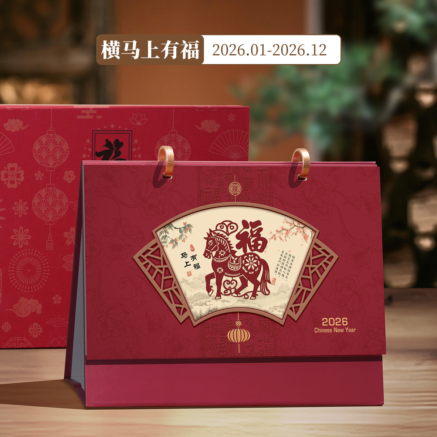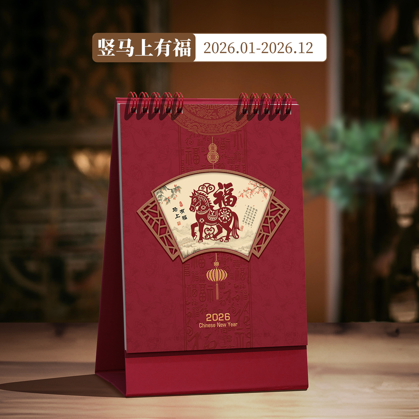 台历2026年新款中国风桌面摆件马年日历礼盒企业广告红色月历定制