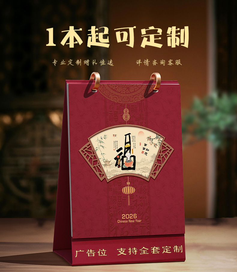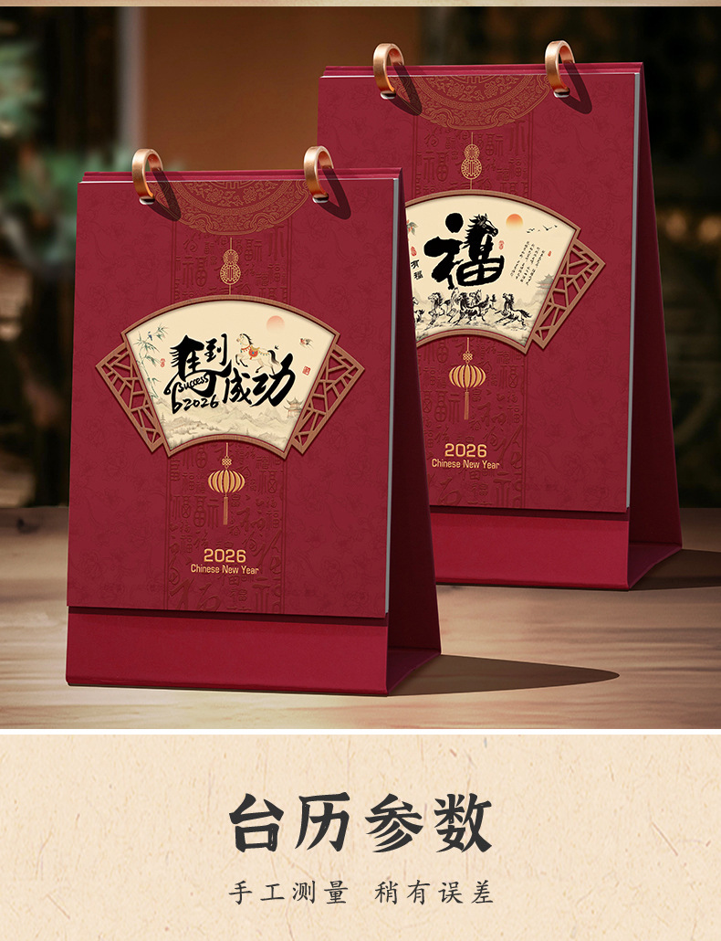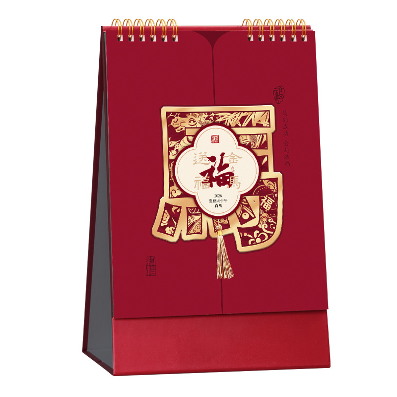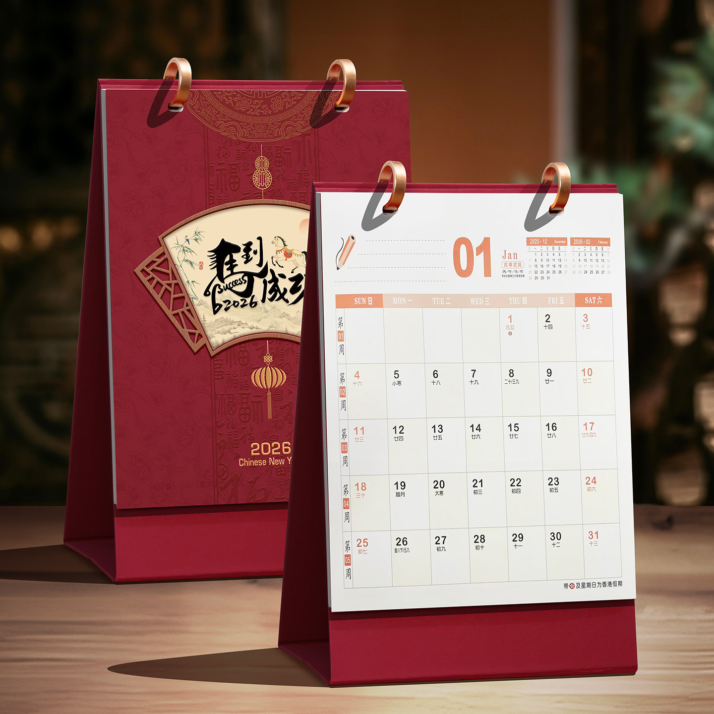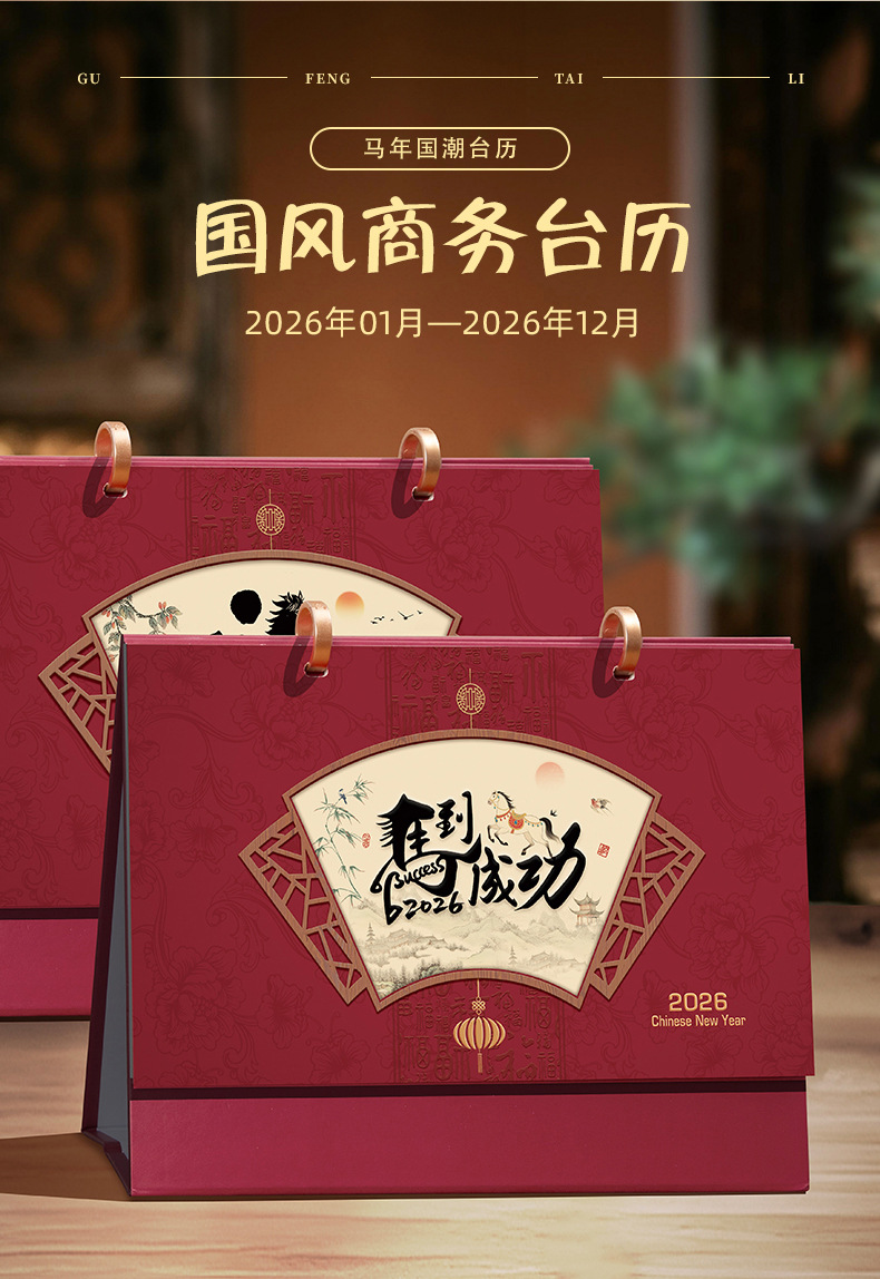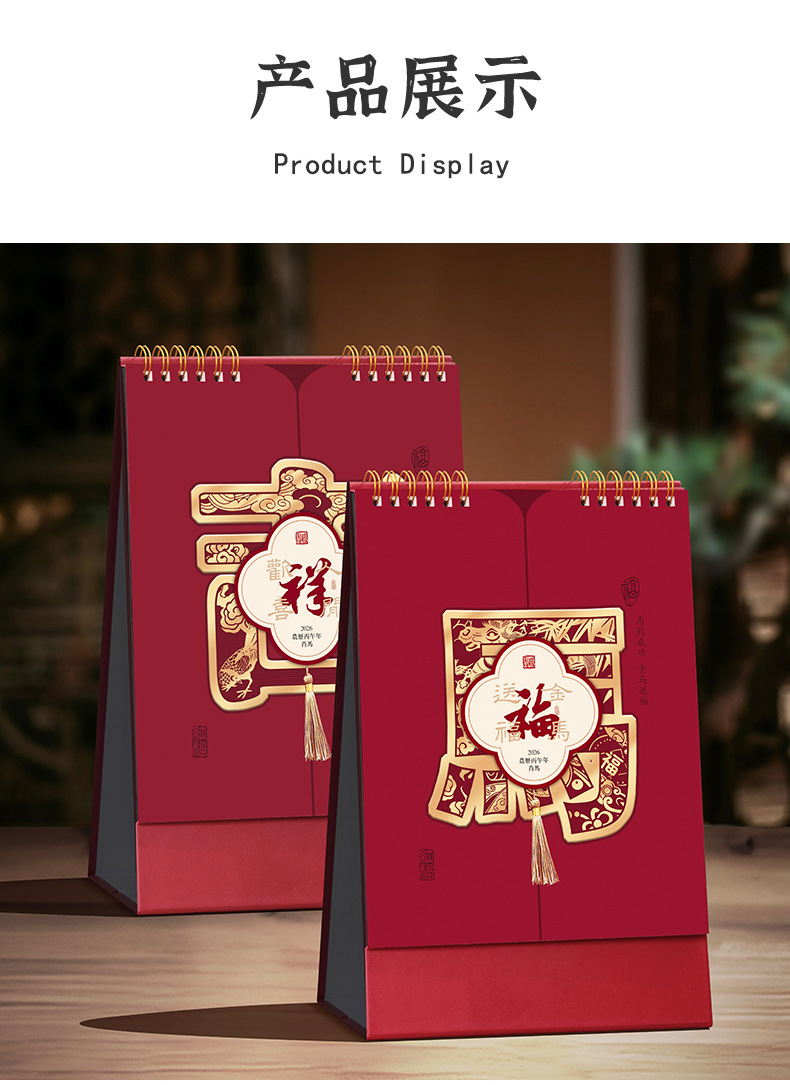 台历2026年新款中国风桌面摆件马年日历礼盒企业广告红色月历定制