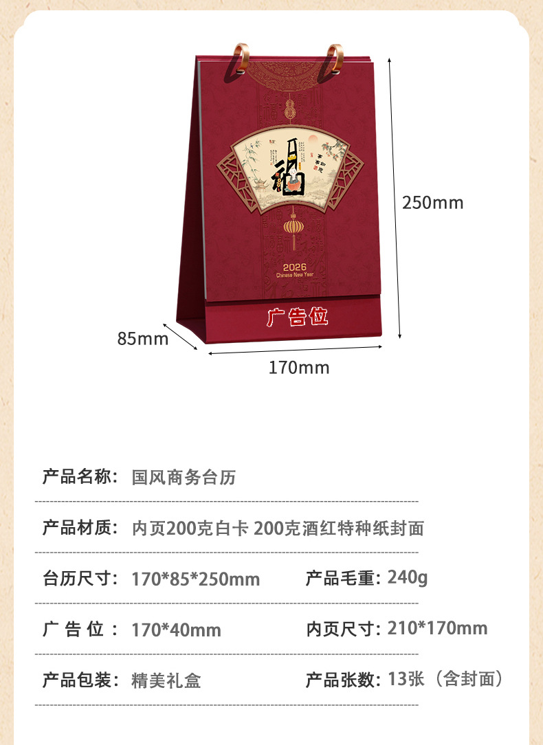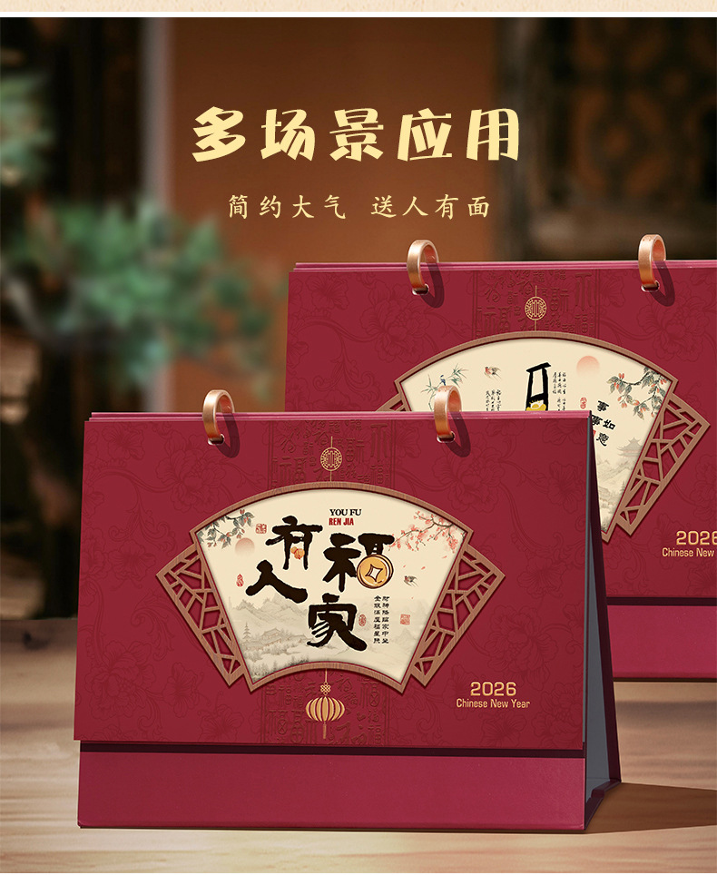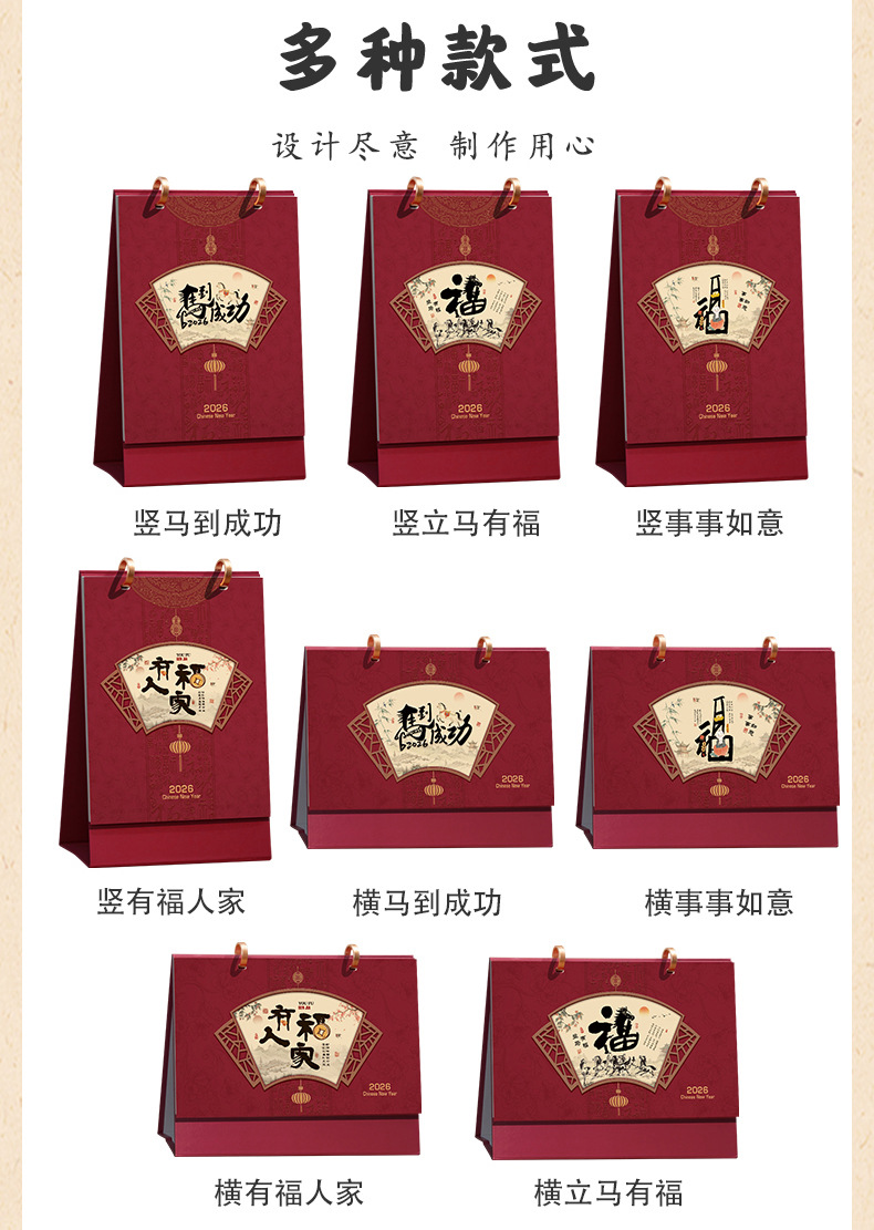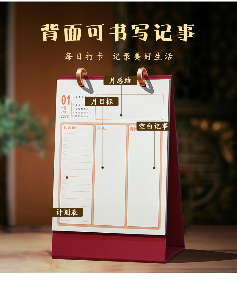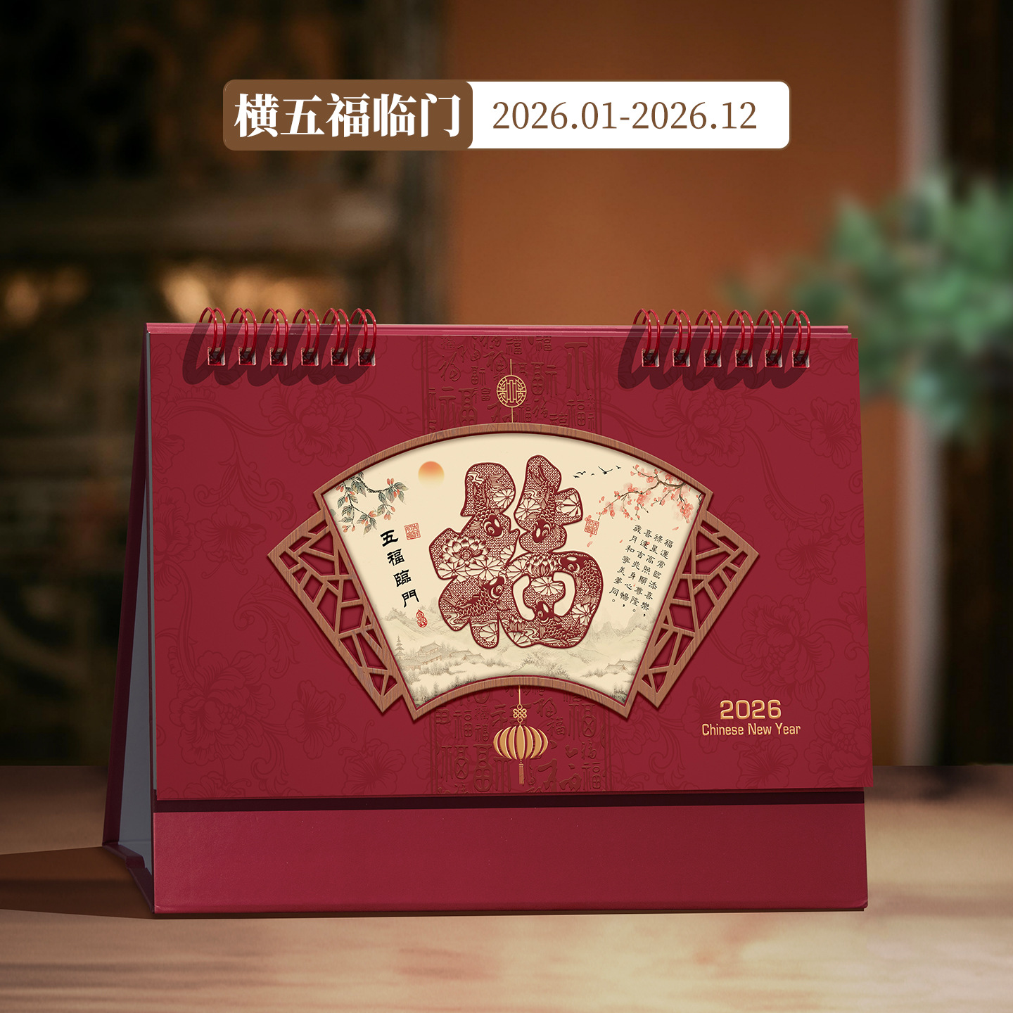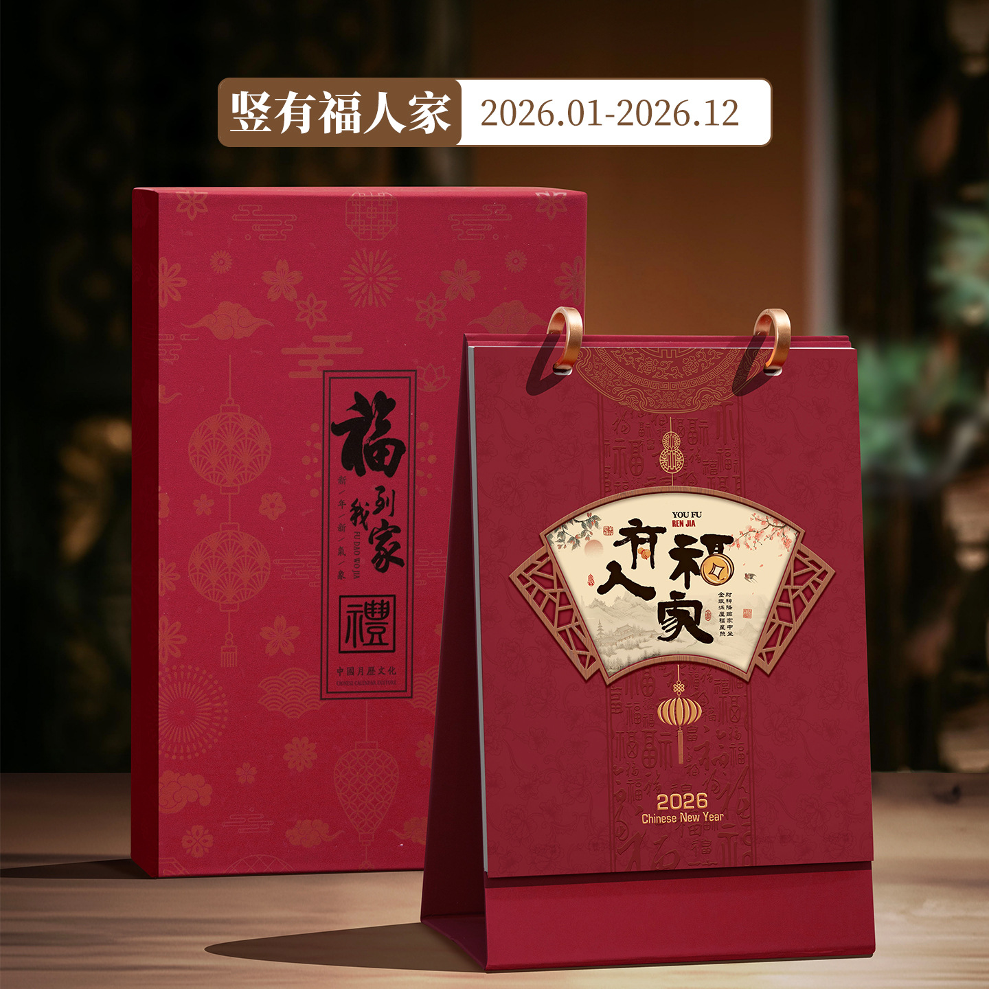 台历2026年新款中国风桌面摆件马年日历礼盒企业广告红色月历定制