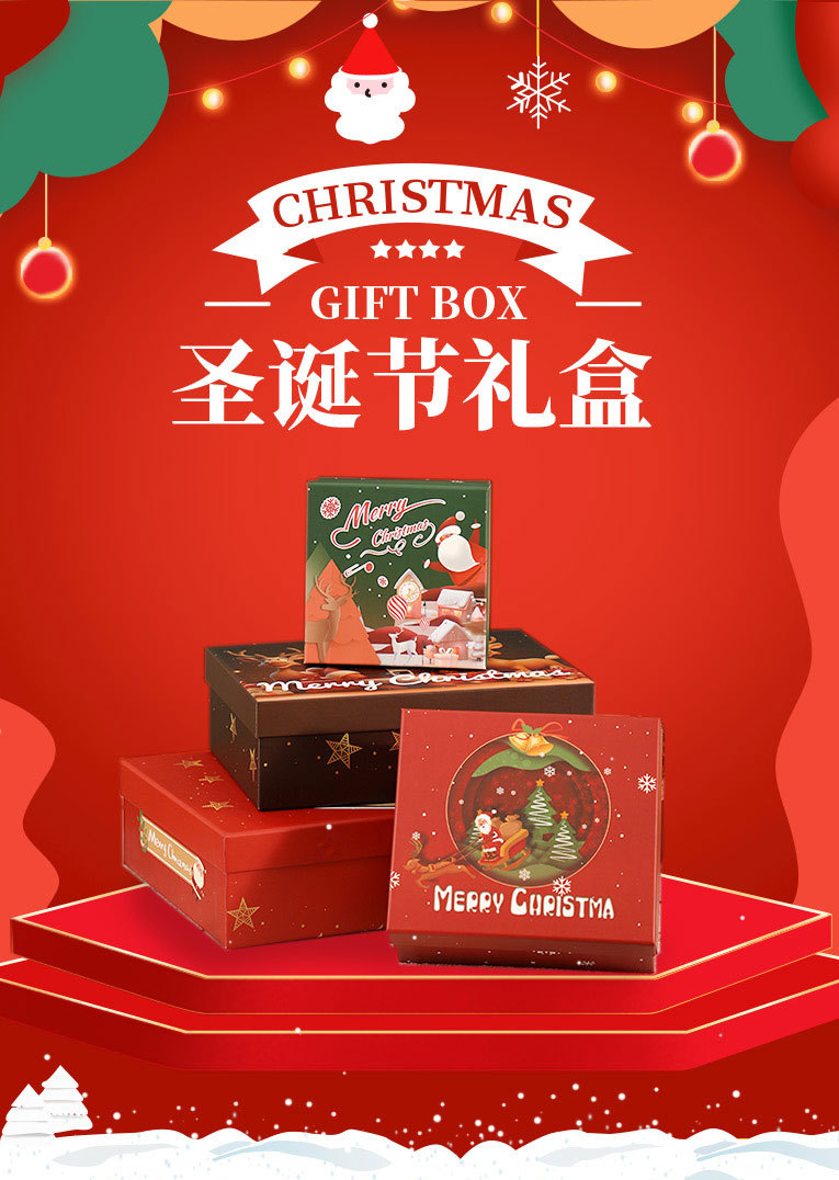 新款圣诞节礼盒天地盖大号围巾保温杯礼品盒平安夜苹果包装盒现货