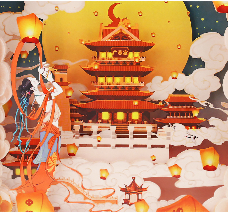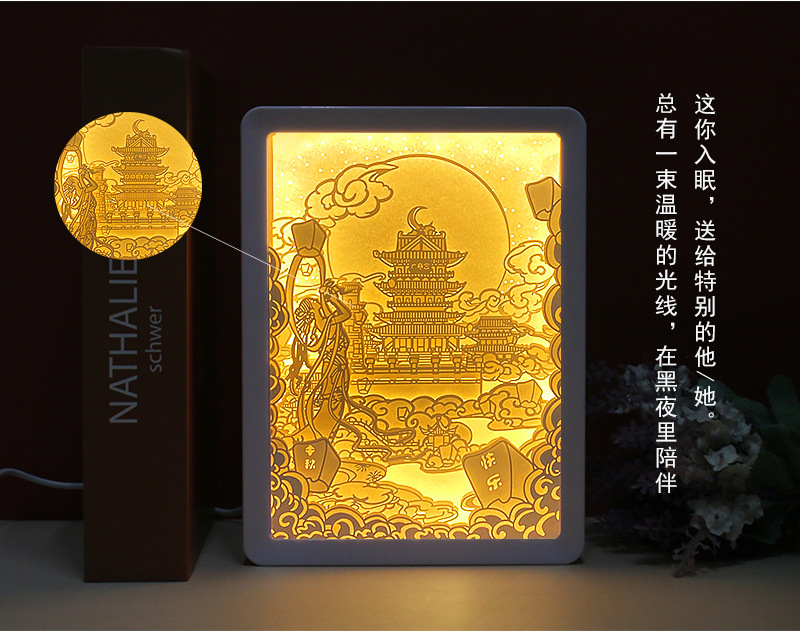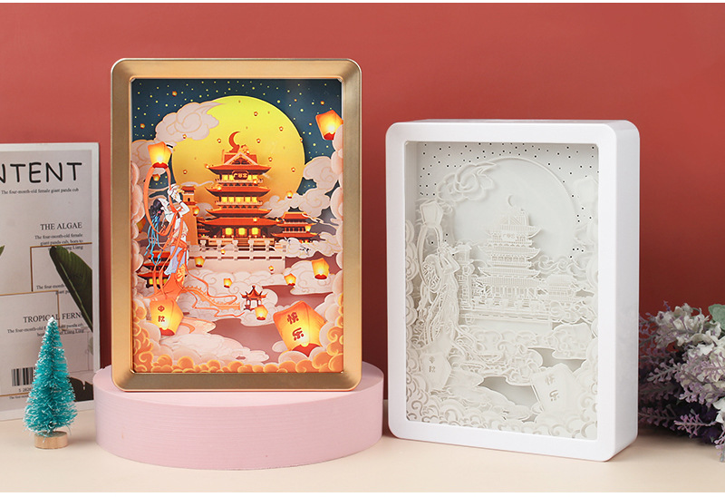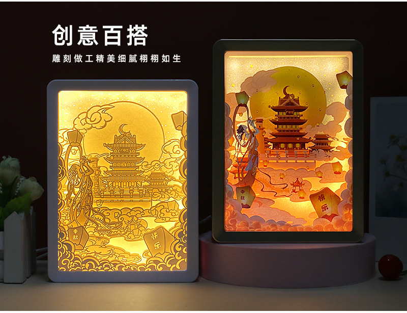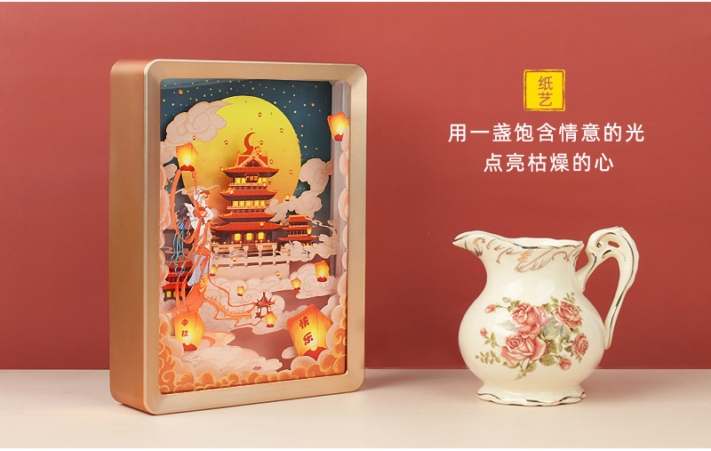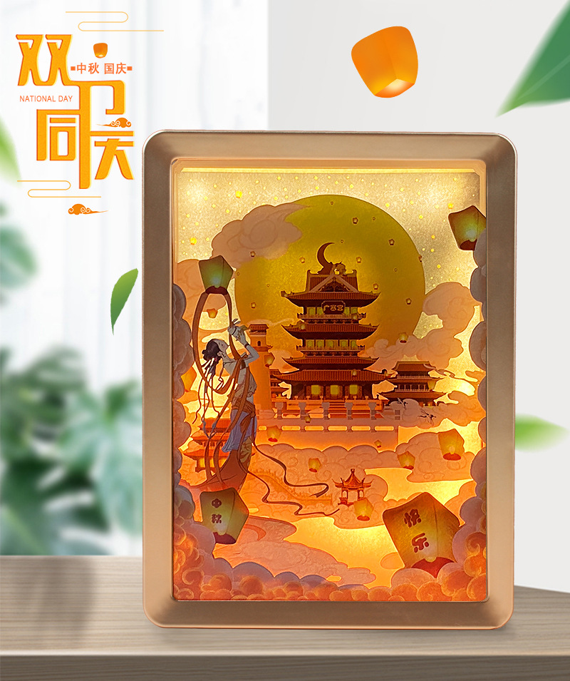 国庆中秋节日礼品创意礼物家居装饰3d光影纸雕夜灯纸质工艺品摆件