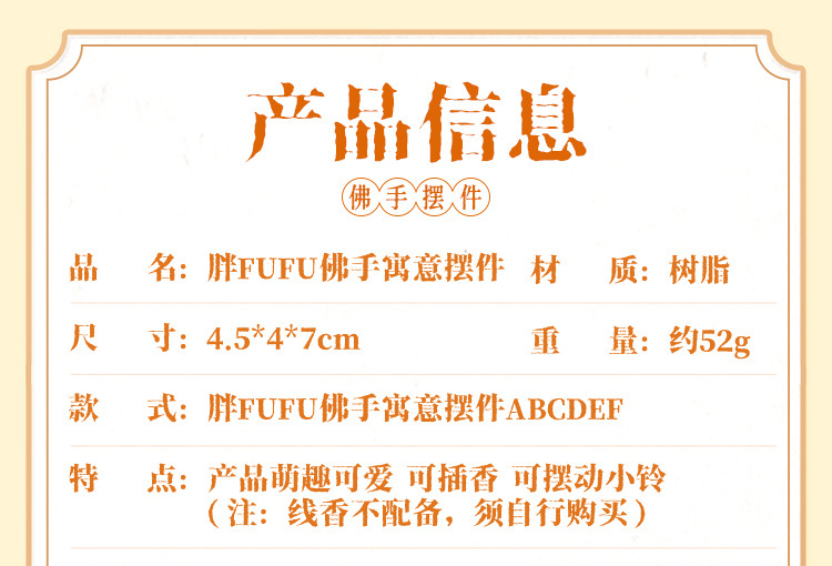 创意国潮胖fufu佛手小摆件可爱树脂工艺品禅意办公室工位桌面装饰