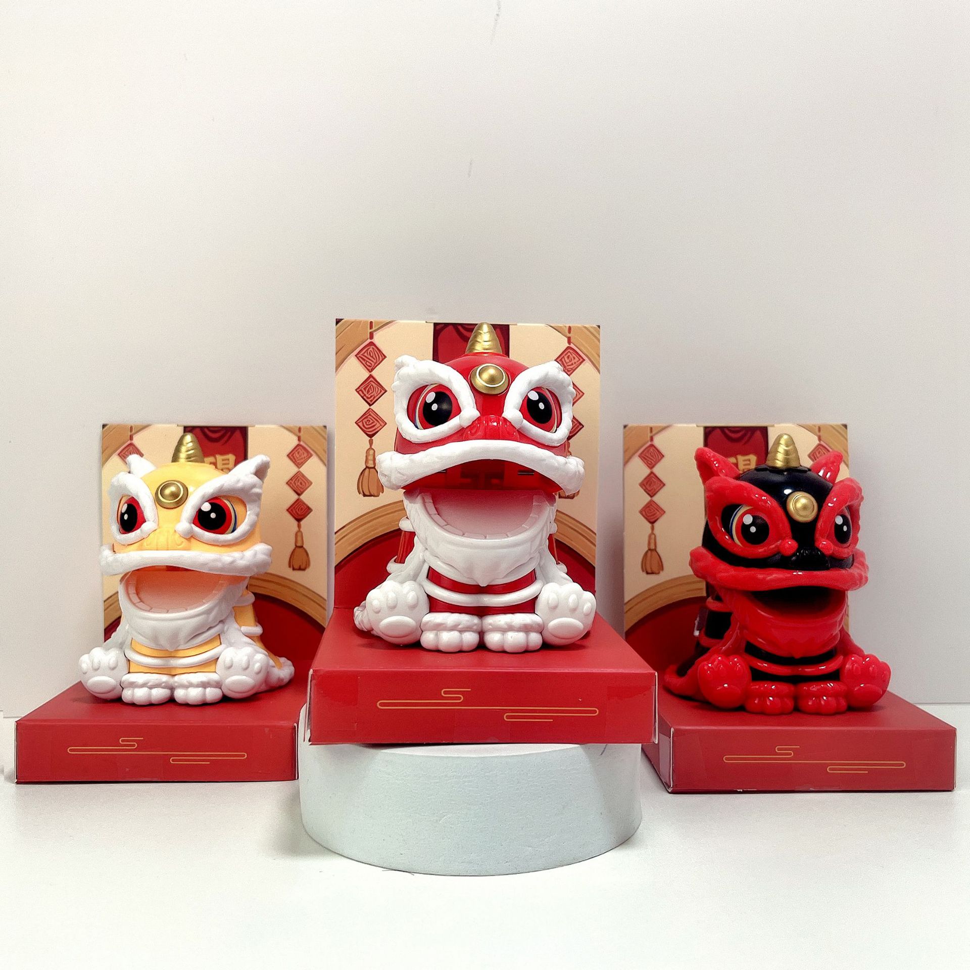太阳能醒狮中式狮子中国风吉祥舞狮国潮家居汽车摆件可爱年会礼品