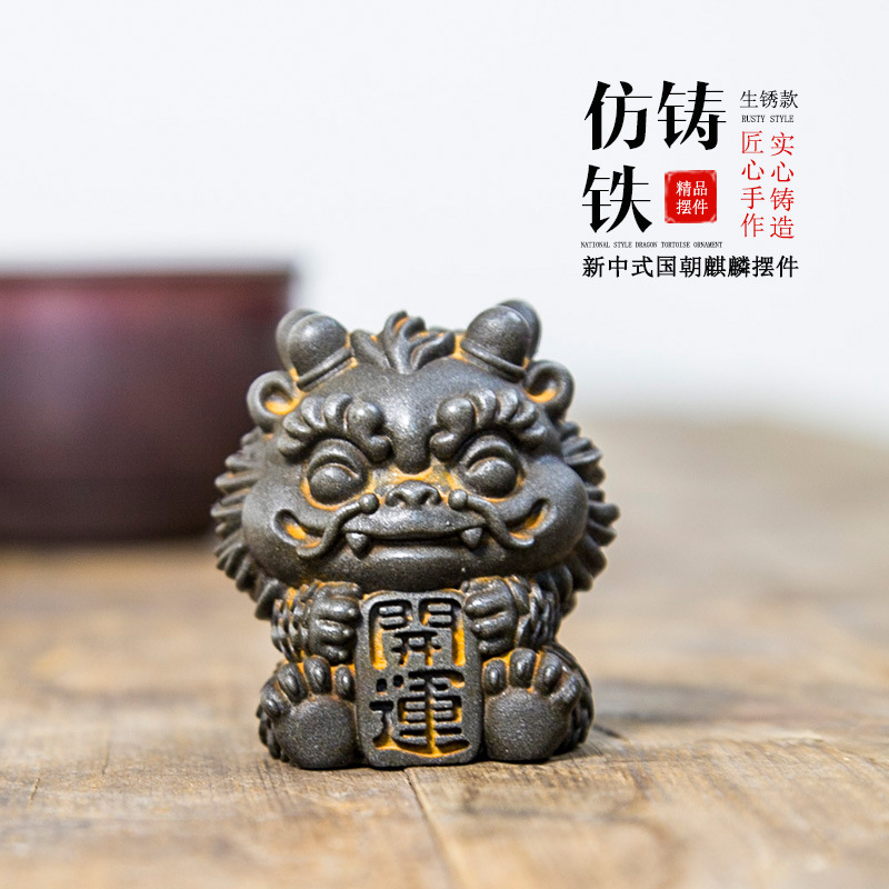 新中式国潮麒麟创意摆件高级感小众家居桌面古风装饰品树脂工艺品