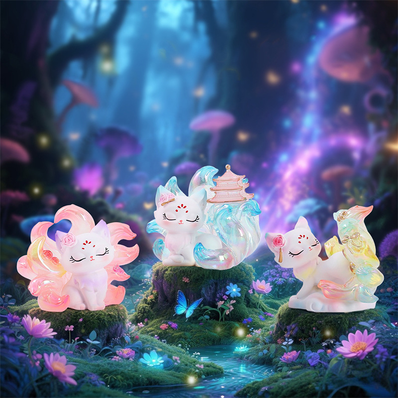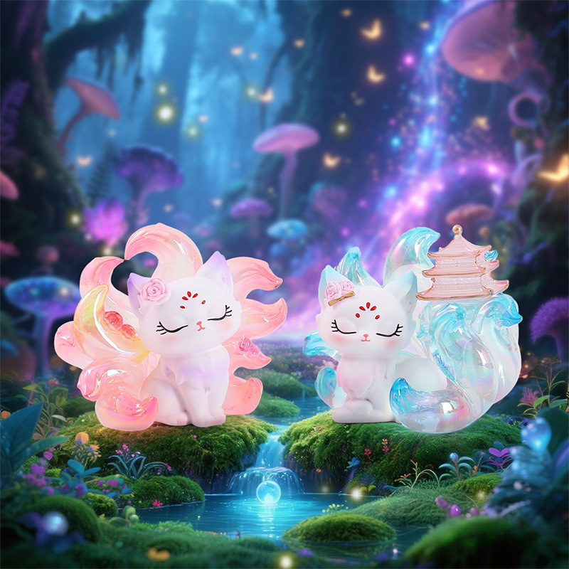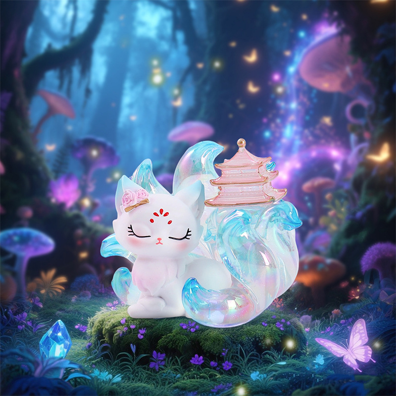 树脂九尾狐仙盲盒创意桌面国潮摆件车内卡通动漫周边节日礼物批发
