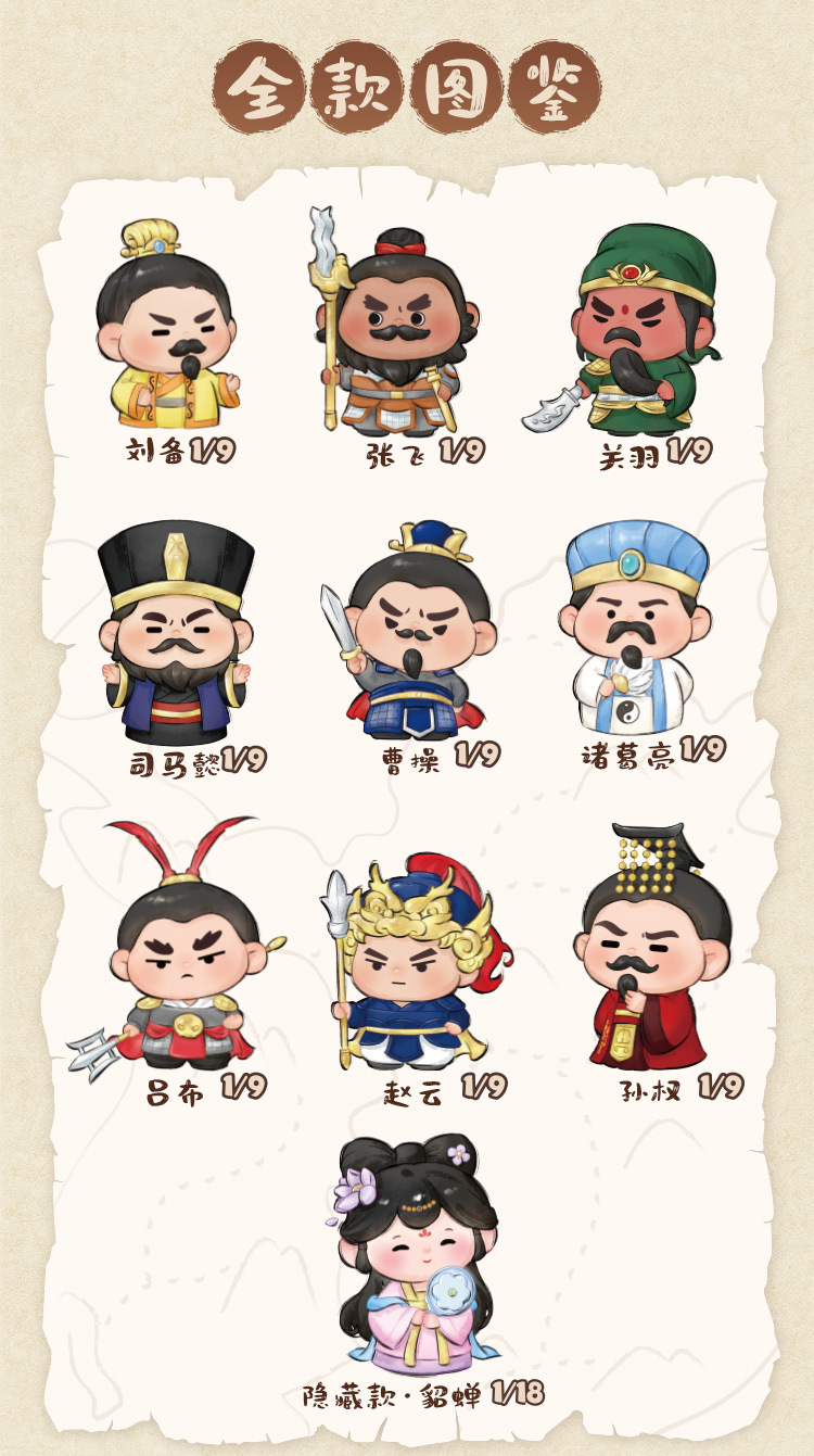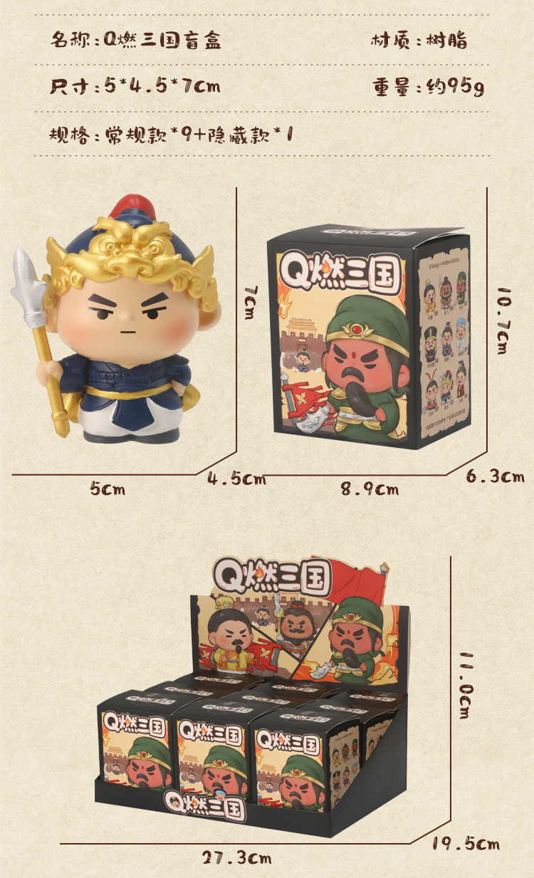 国潮Q燃三国盲盒潮玩手办送男孩生日礼物家居桌面装饰品摆件批发