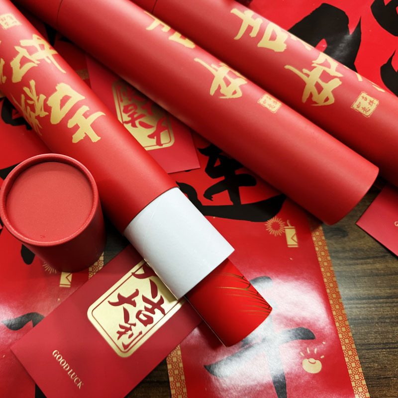 厂家现货新款马年对联纸筒春节新年礼盒 春联福字挂历包装纸罐