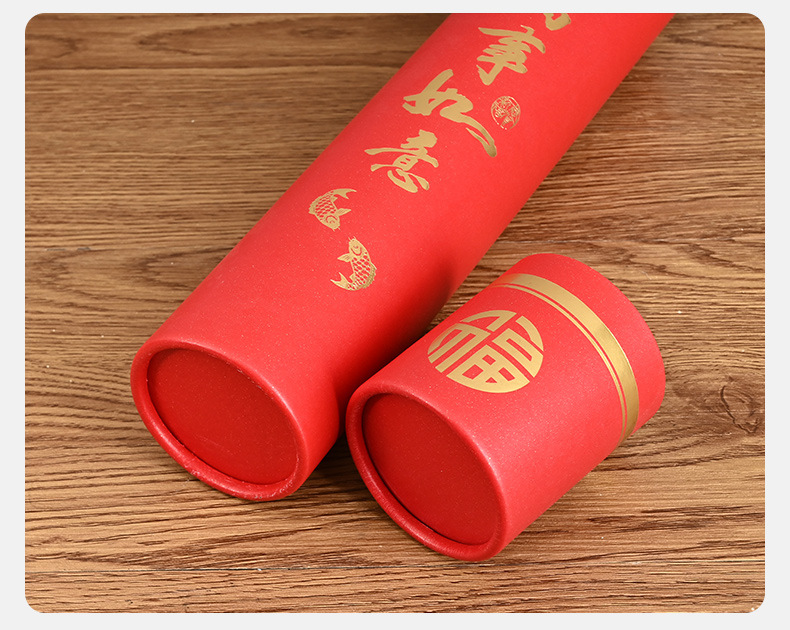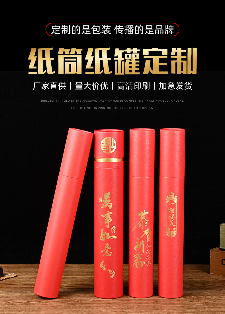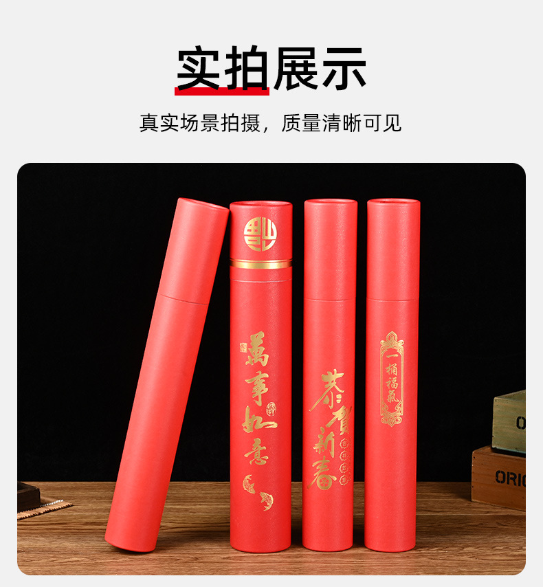 现货对联圆筒包装盒新年春联红色纸筒海报牛皮纸长筒礼品纸罐定制