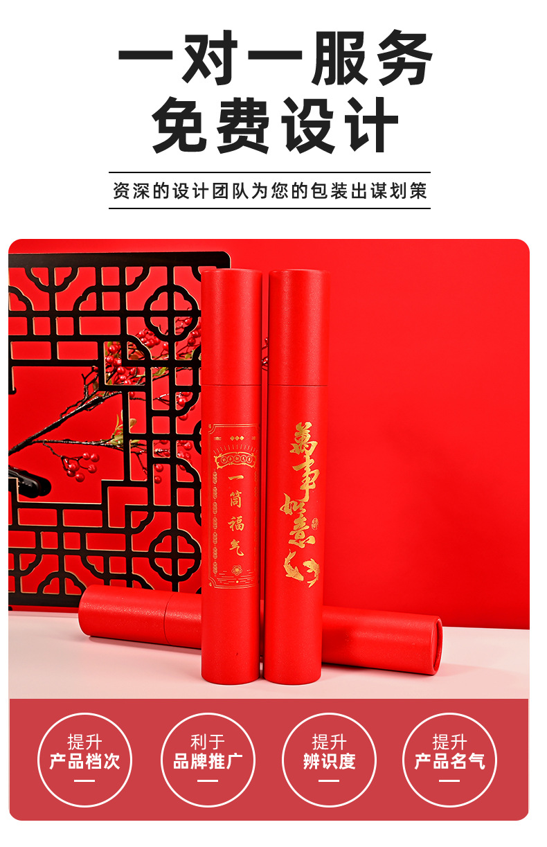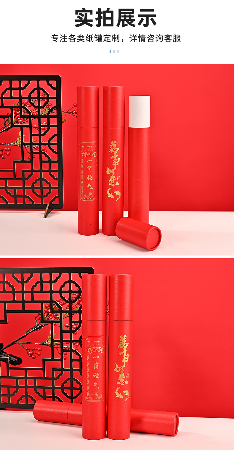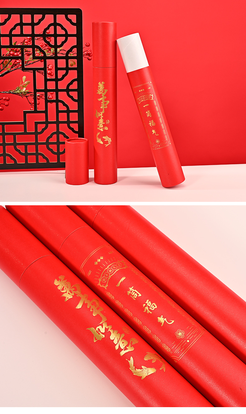 2026新款现货对联纸罐烫金一筒福气新春圆筒红色春联纸筒定 制