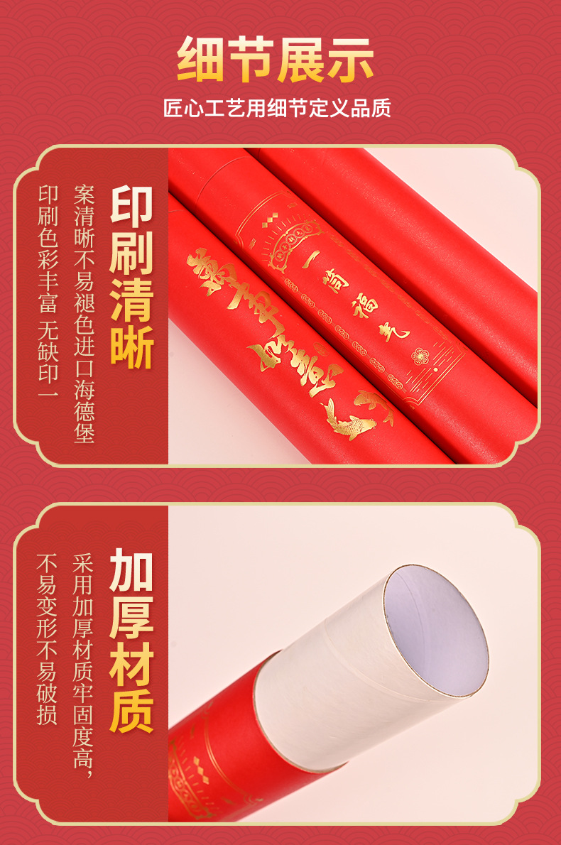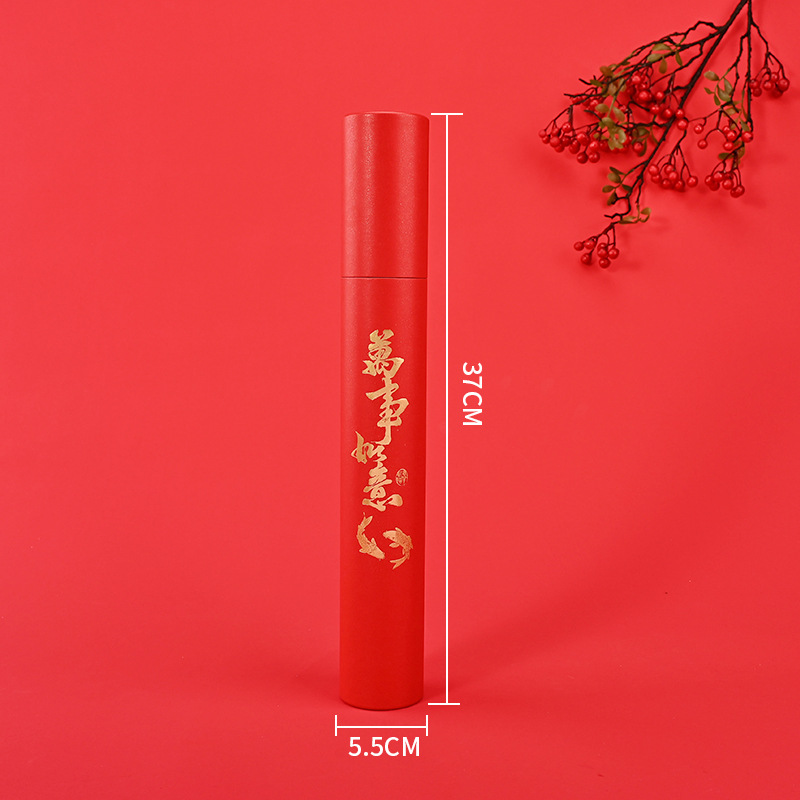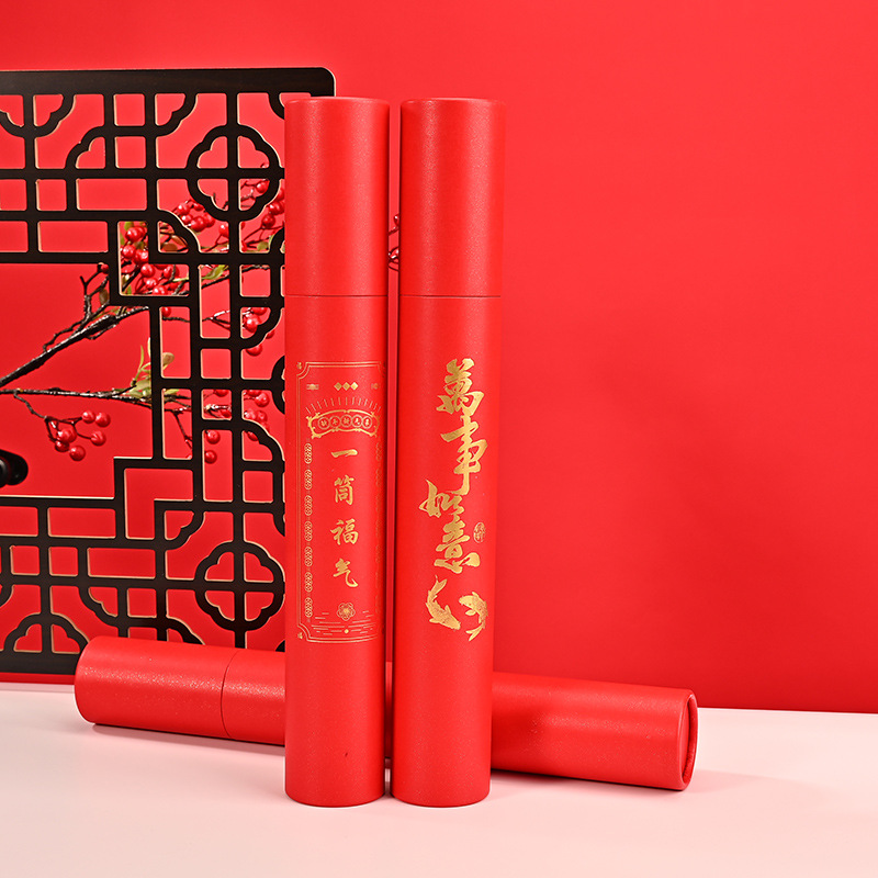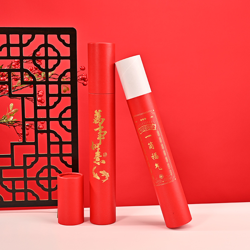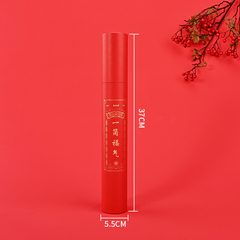 2026新款现货对联纸罐烫金一筒福气新春圆筒红色春联纸筒定 制