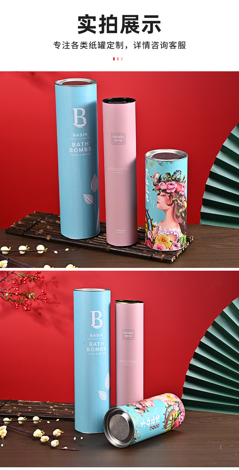 彩印马口铁盖圆形纸筒对联字帖包装牛皮纸罐端午礼品茶叶防潮纸罐