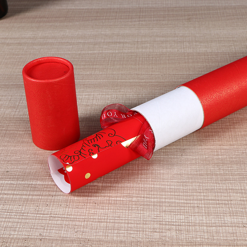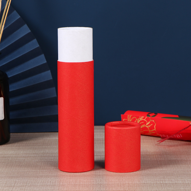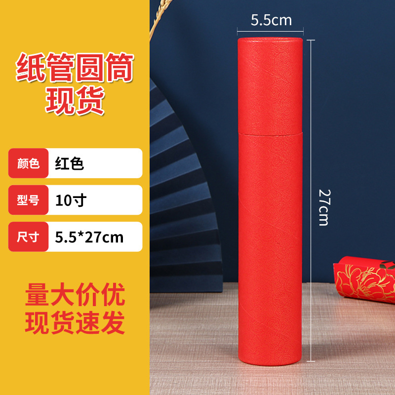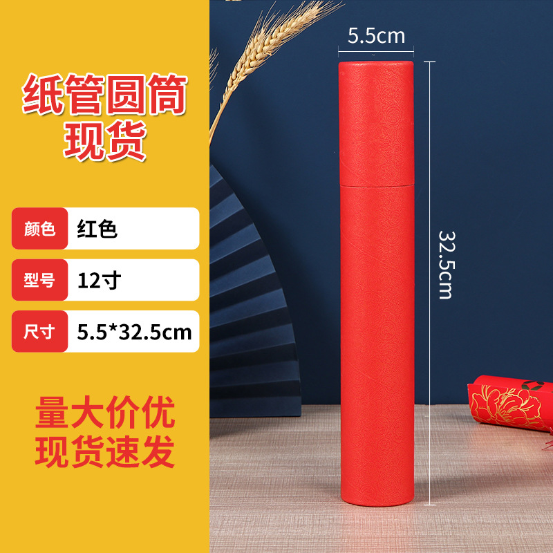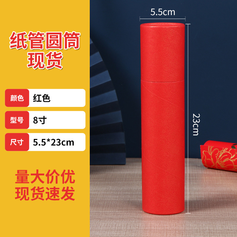 对联礼品盒子春联包装纸筒带盖年画红色圆形包装盒挥春纸罐现货