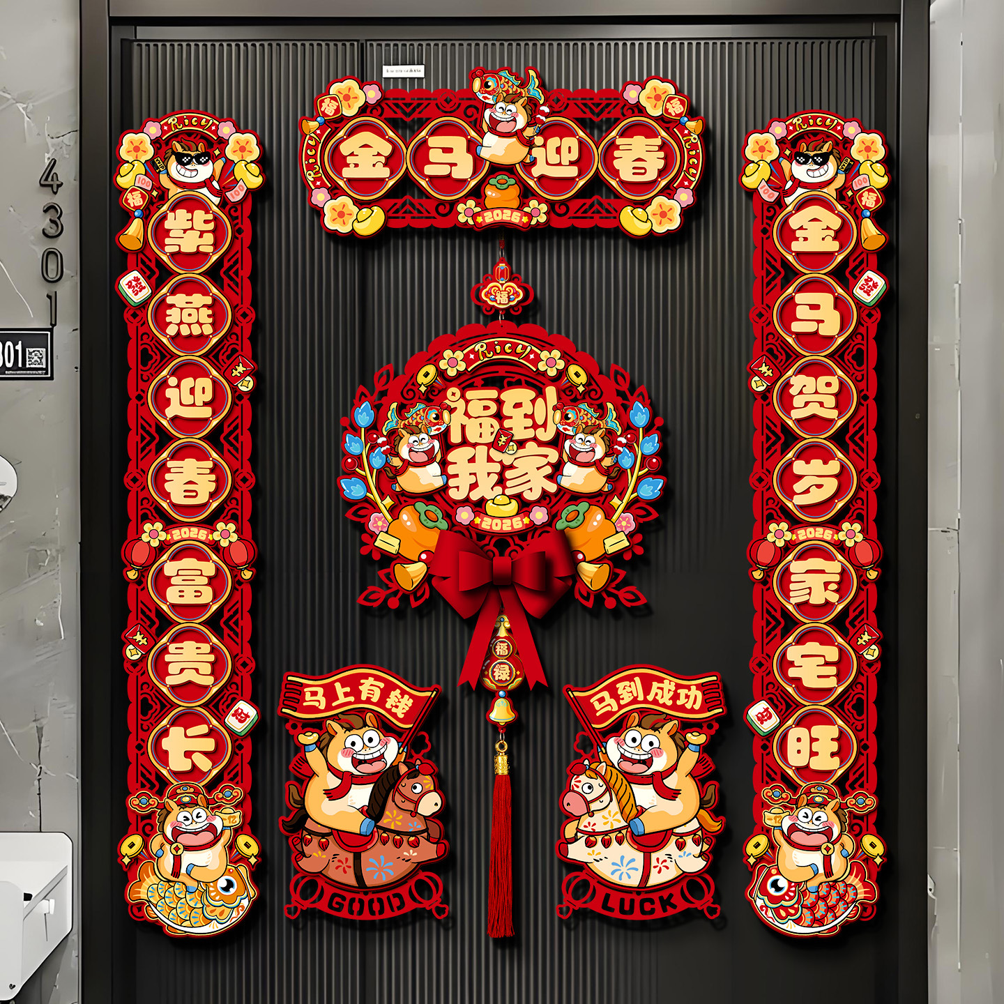 马年新年磁吸对联春联批发2026年新款福字大门贴过年春节布置装饰