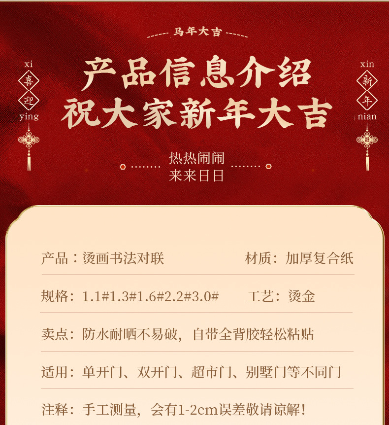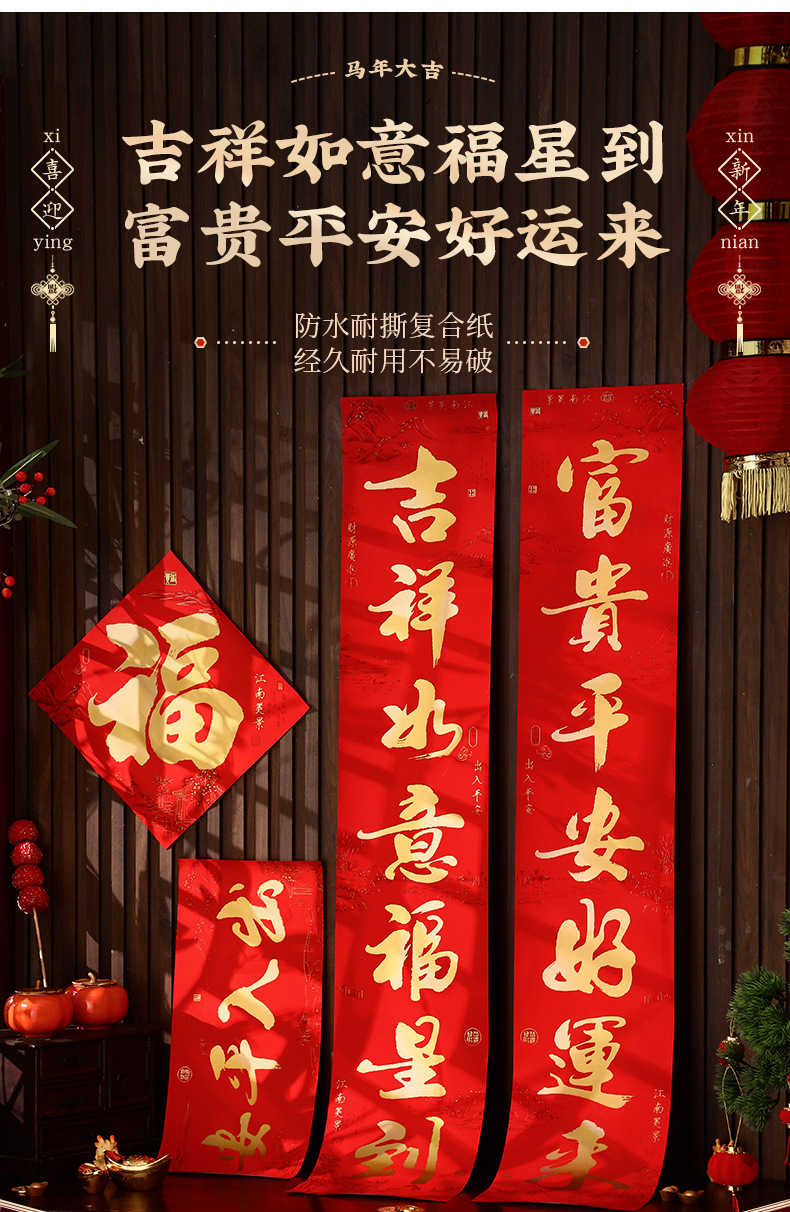对联春联2026年新款马年创意福字大门贴纸书法过挥春节高级感背胶