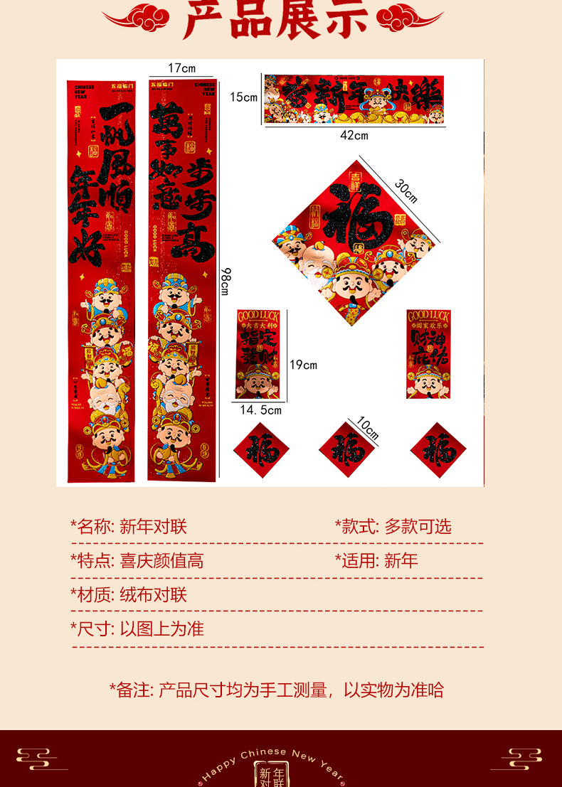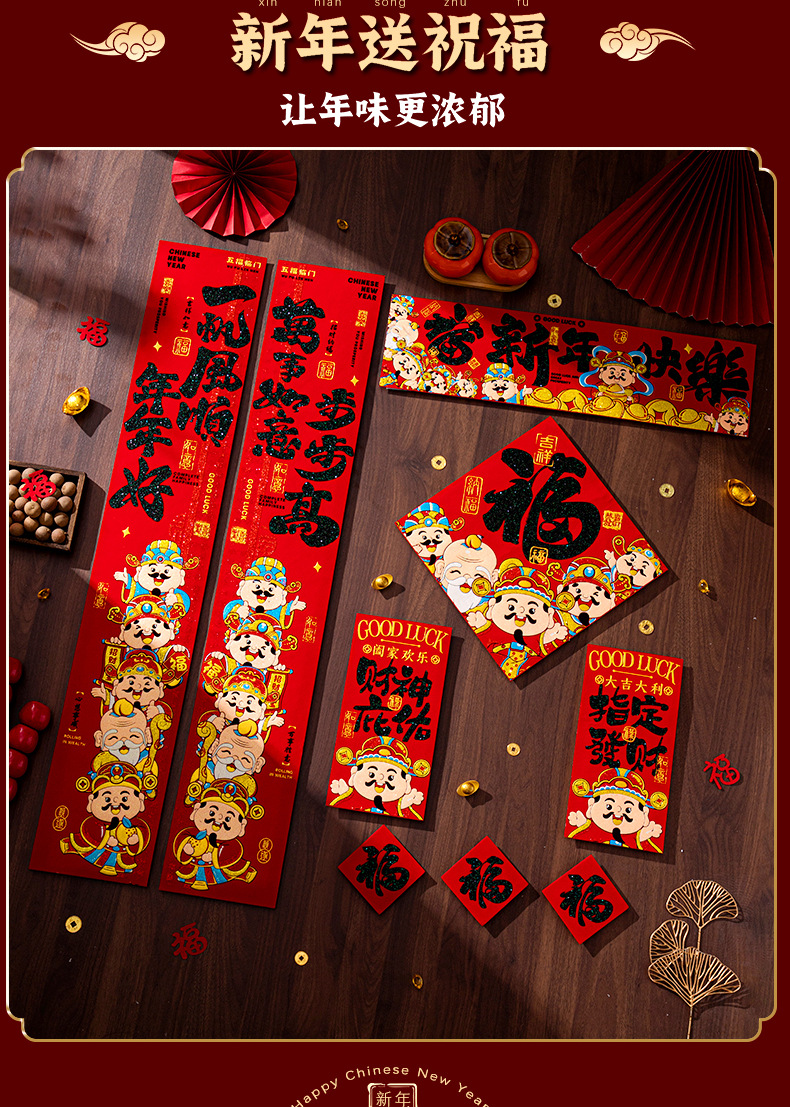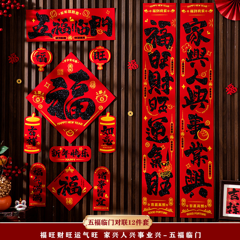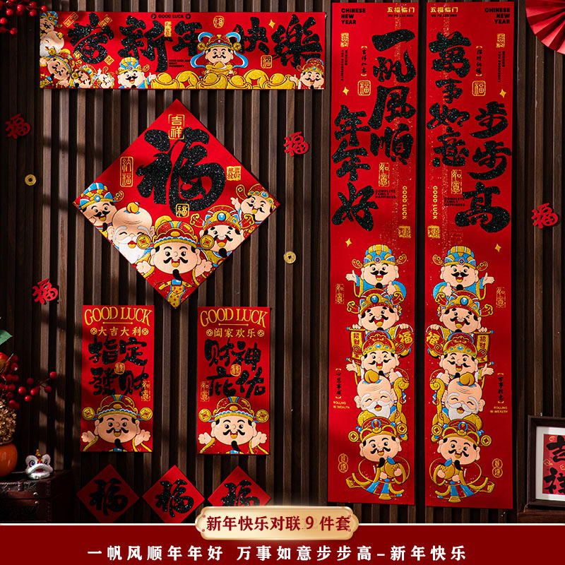 2026新款马年对联财神绒布自带背胶高档烫金春节装饰布置过年用品