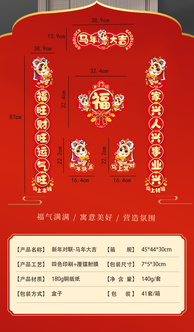厂家现货2026年广告对联新年春联门贴门联马年福字印刷LOGO批发