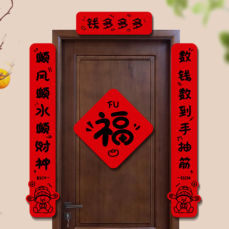 新年对联贴纸2026新款春节福字门贴创意家用黑字春联入户门联定制