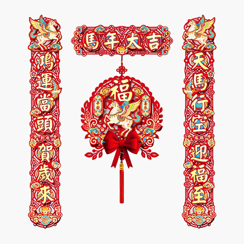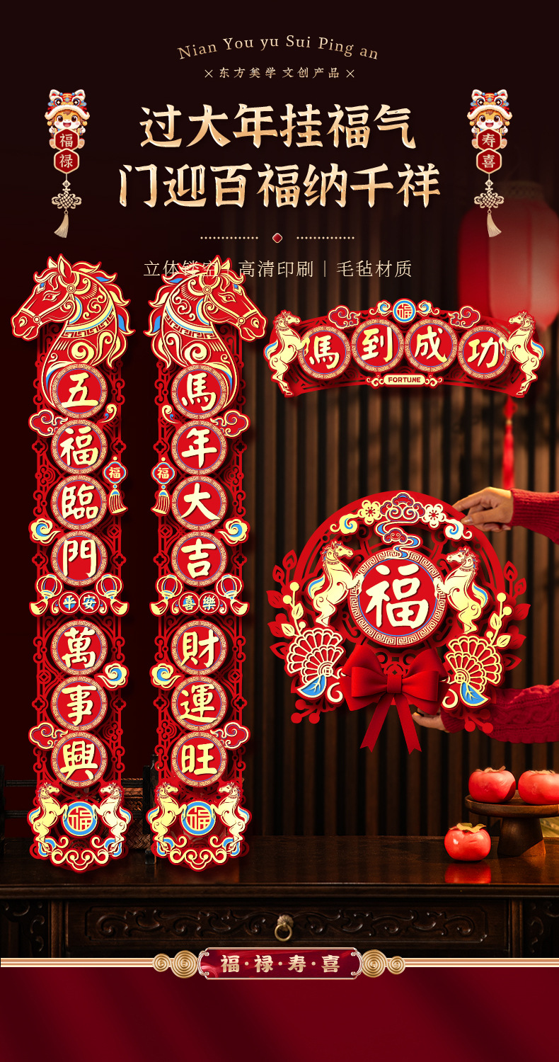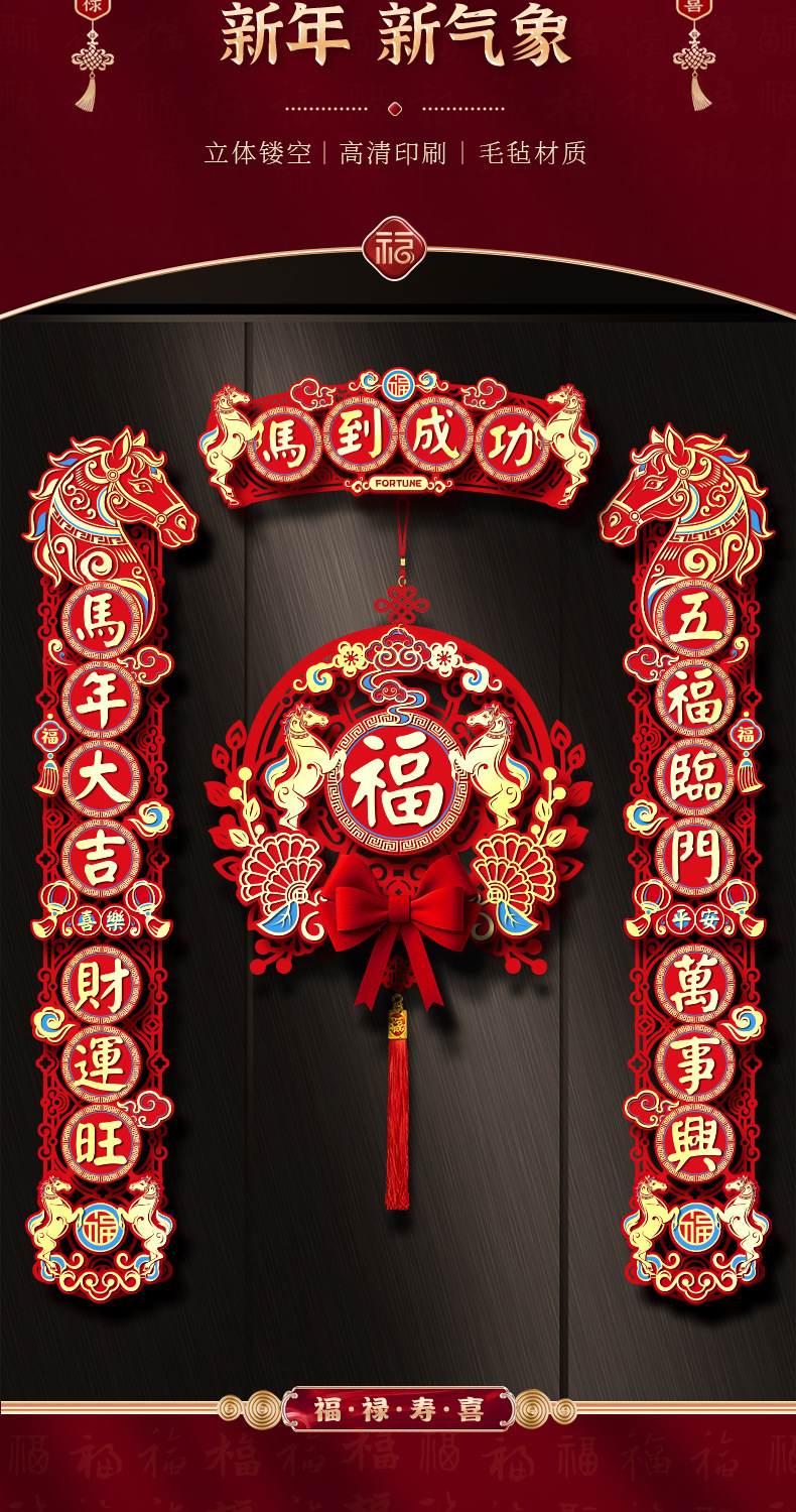 2026马年新款对联春节家用立体毛毡布烫金春联新年过年大门贴装饰