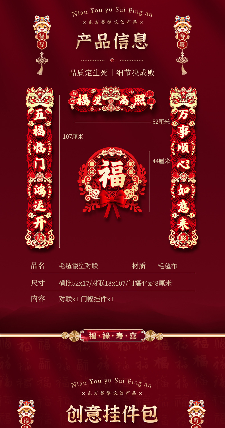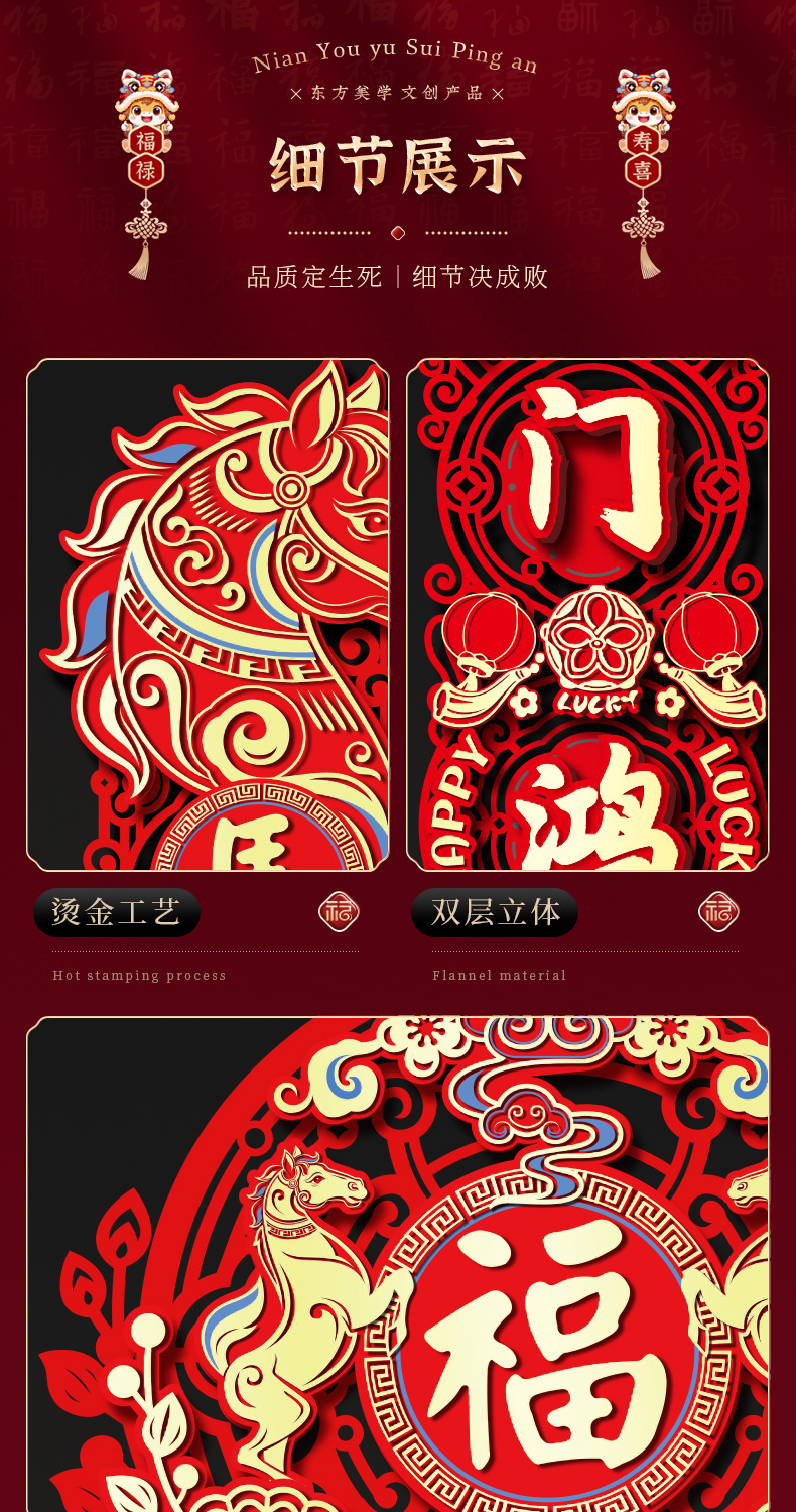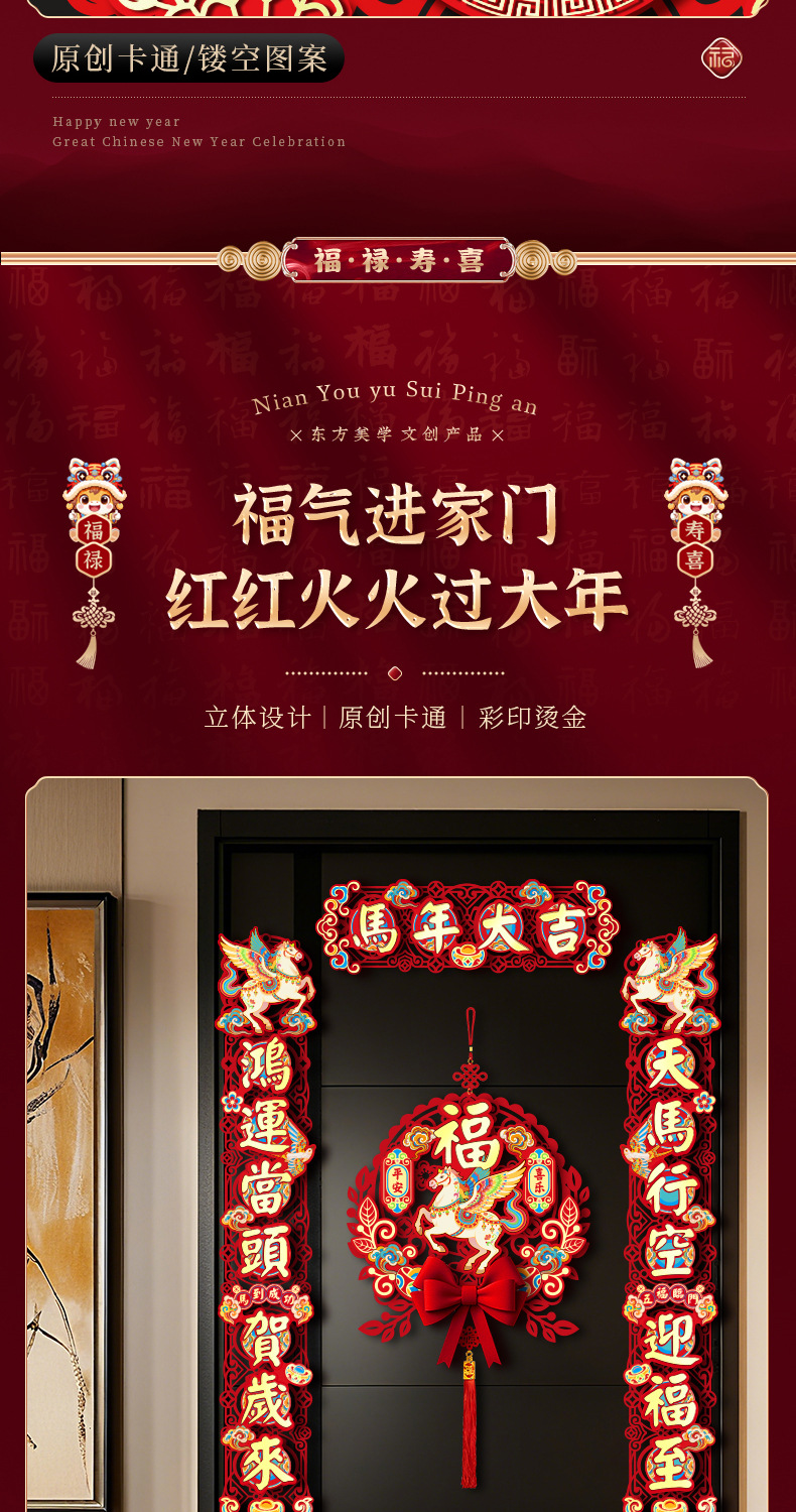 2026马年新款对联春节家用立体毛毡布烫金春联新年过年大门贴装饰