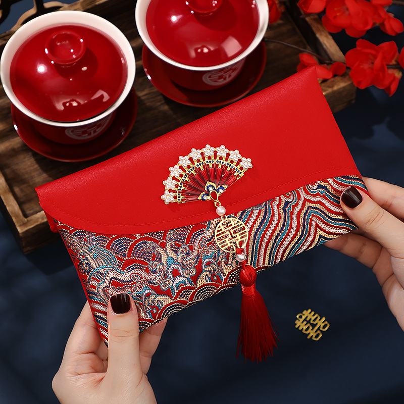 红包2025新款高档万元订婚改口费大号一对布艺父母红包袋利是喜包