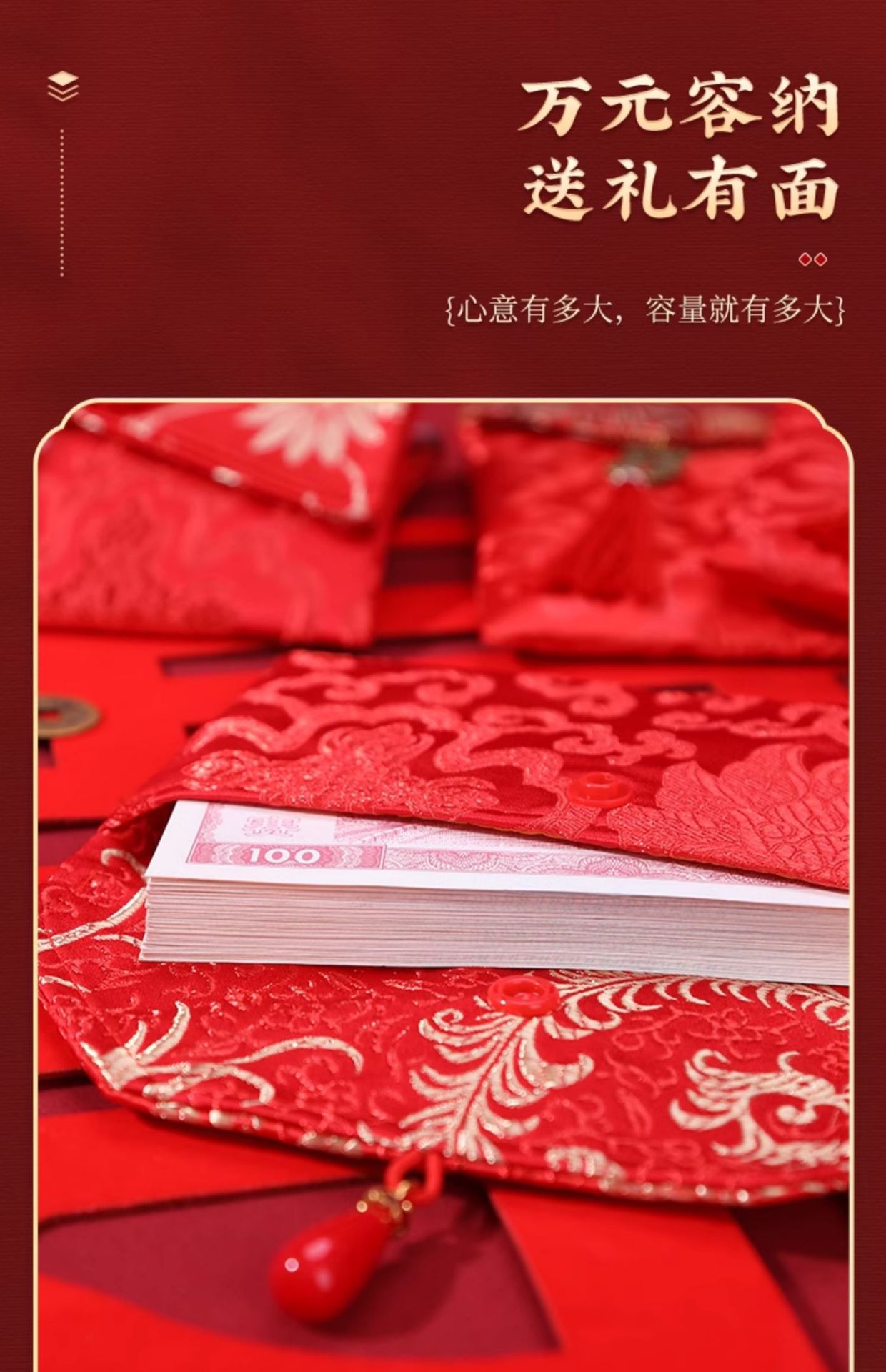 | ten thousand yuan modified fabric red envelope (1)(万元改口布艺红包(1个)) | USD $1.33 | 105 piece available |