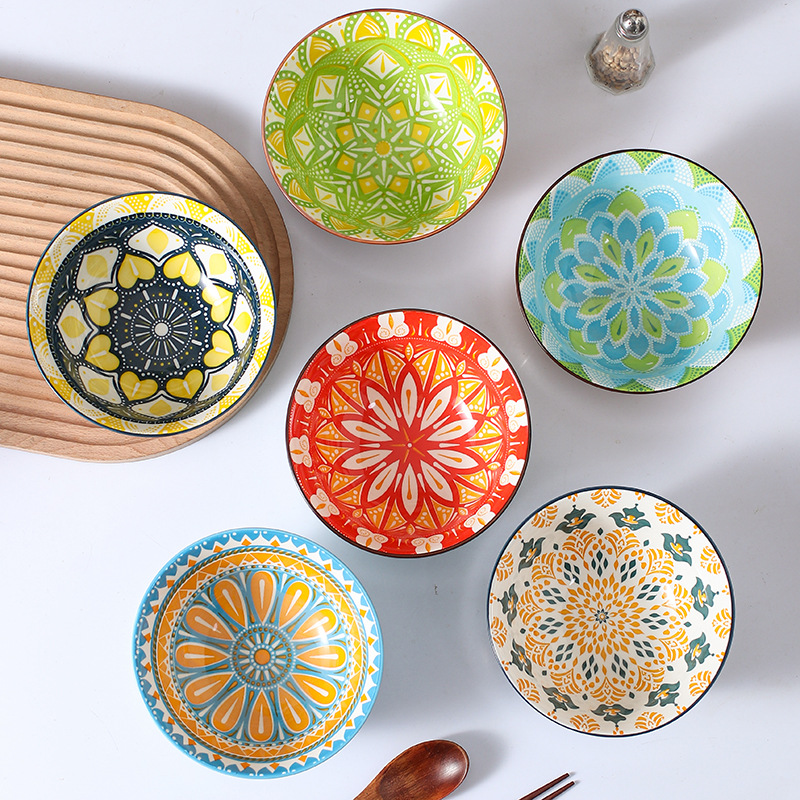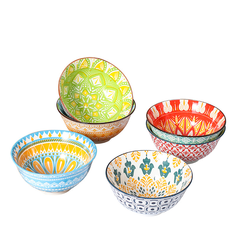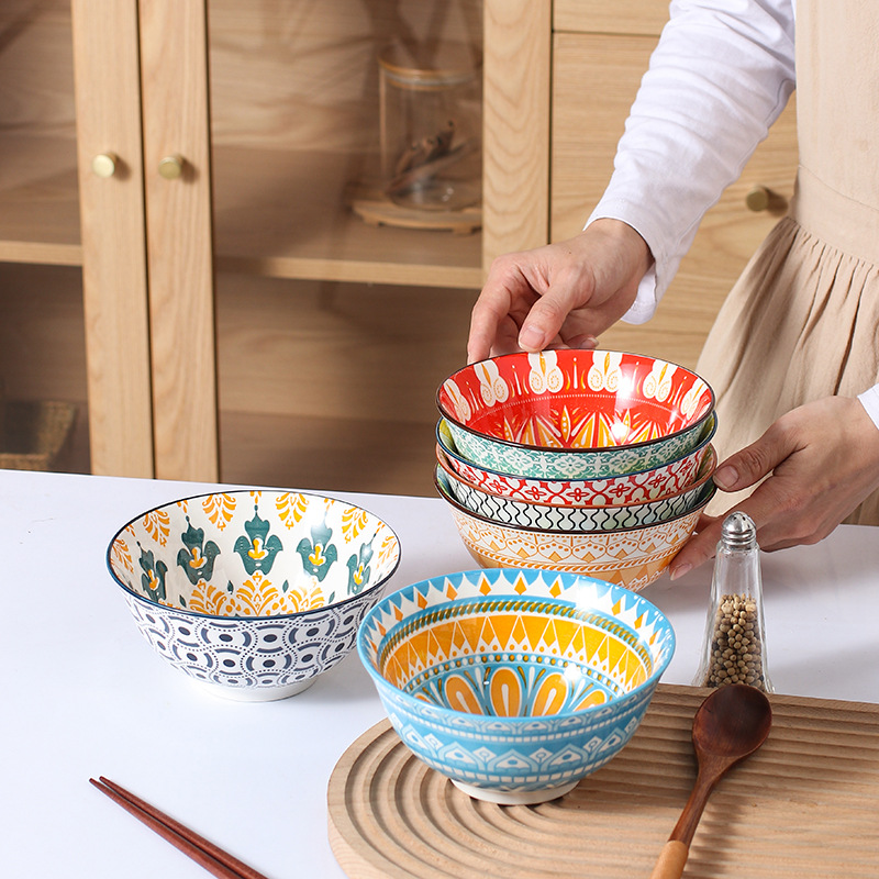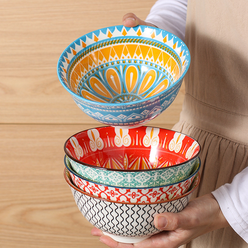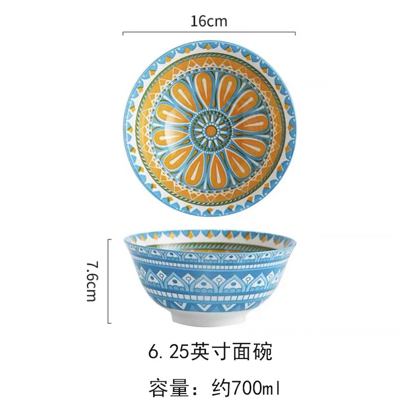 跨境外贸面碗米西亚反口碗创意陶瓷碗家用小汤碗沙拉碗釉下彩餐具