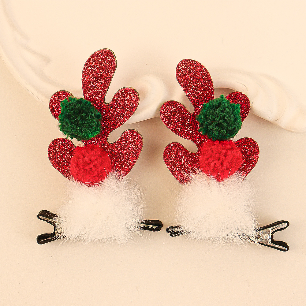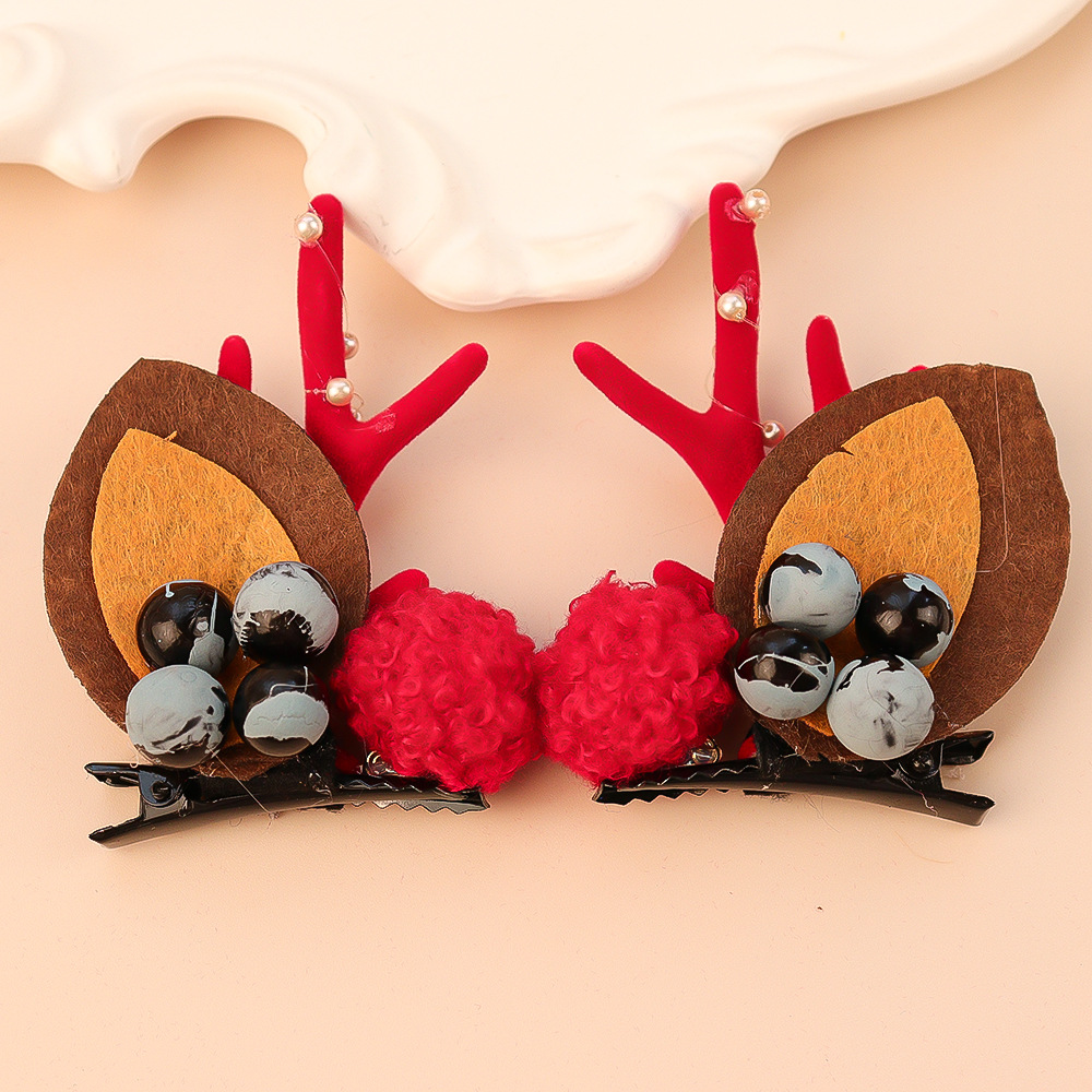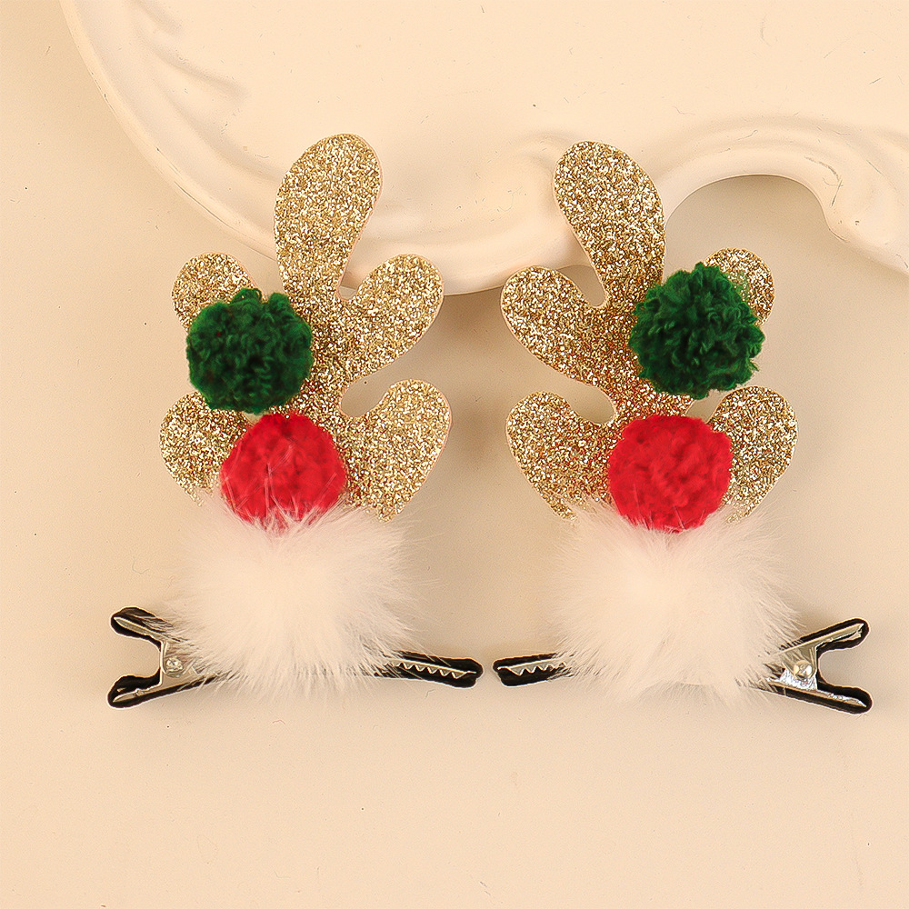 跨境新款热卖圣诞发夹卡通鹿角水貂毛发箍夹子头饰圣诞节装饰礼品