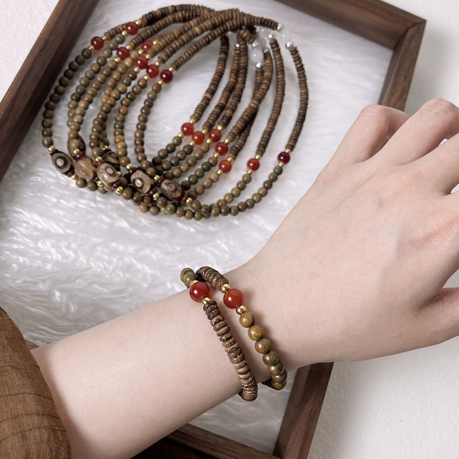 绿檀木手串鸡翅木文玩佛珠天然中式木质多层缠绕小众双圈手链串珠