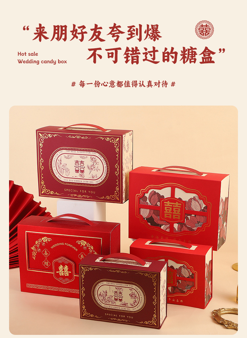 手提精美加厚喜糖盒时尚喜结良缘伴手礼盒空盒创意中国风喜糖盒