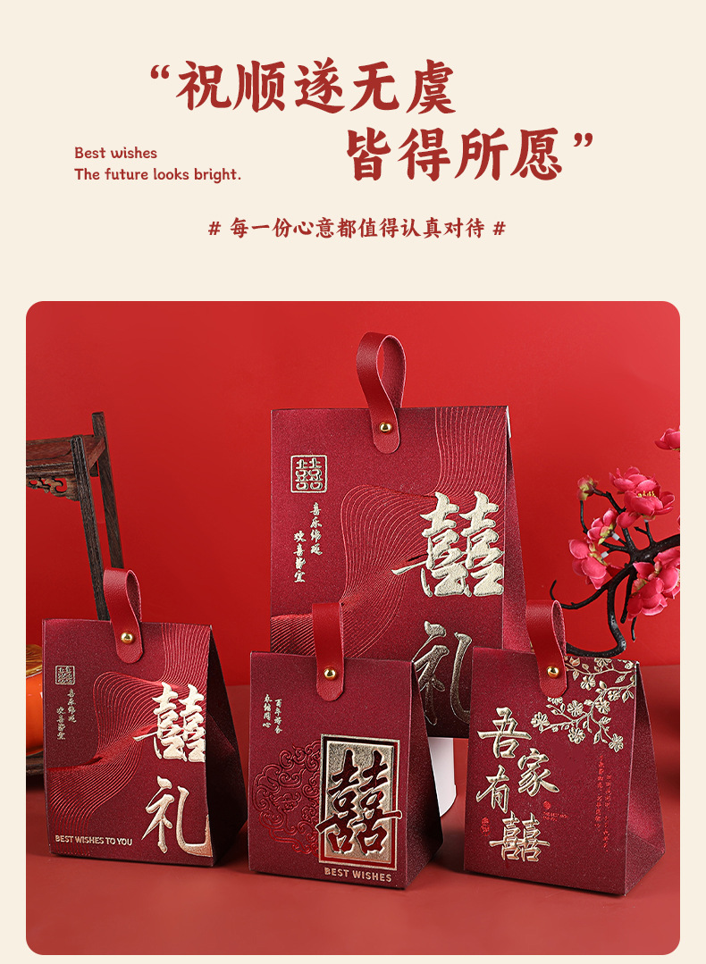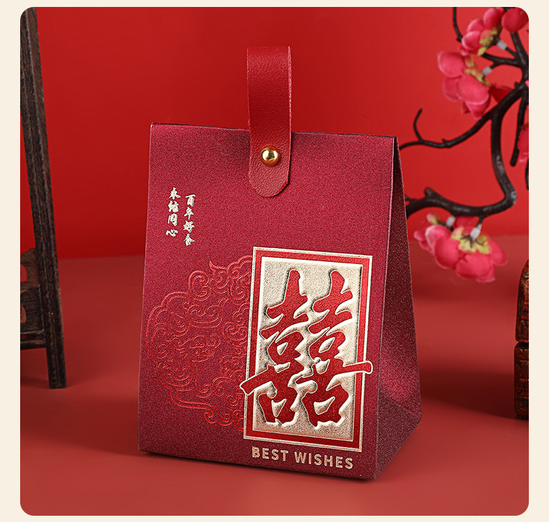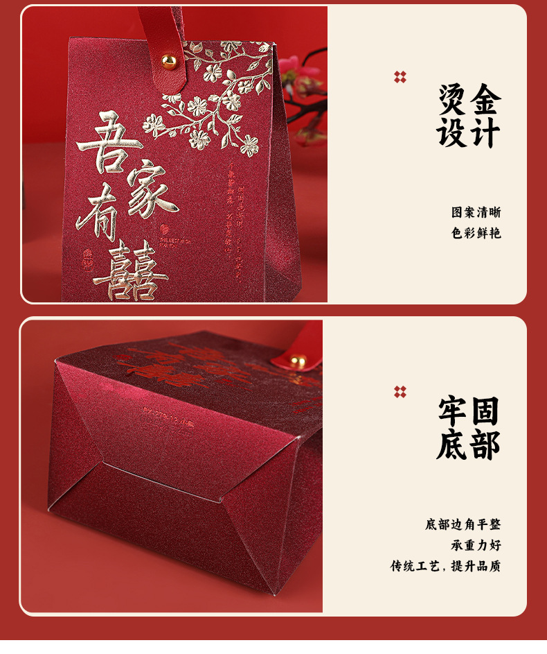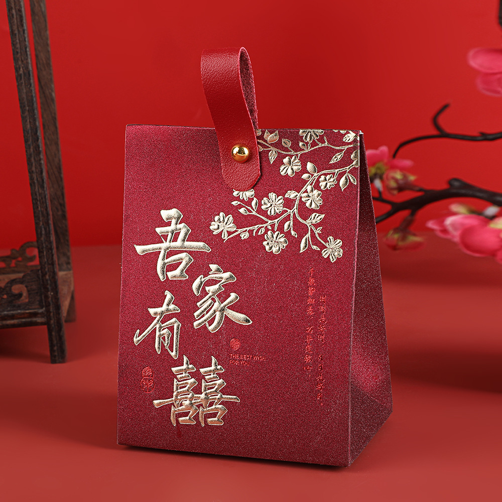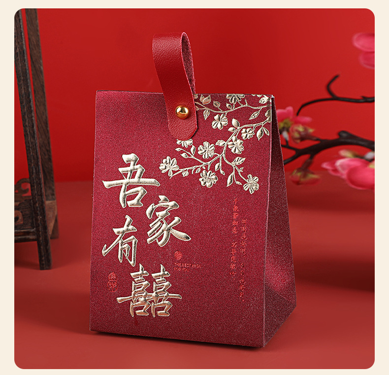 中式喜糖盒结婚伴手礼空盒立体喜糖盒红色吾家有喜烫金喜糖包装盒